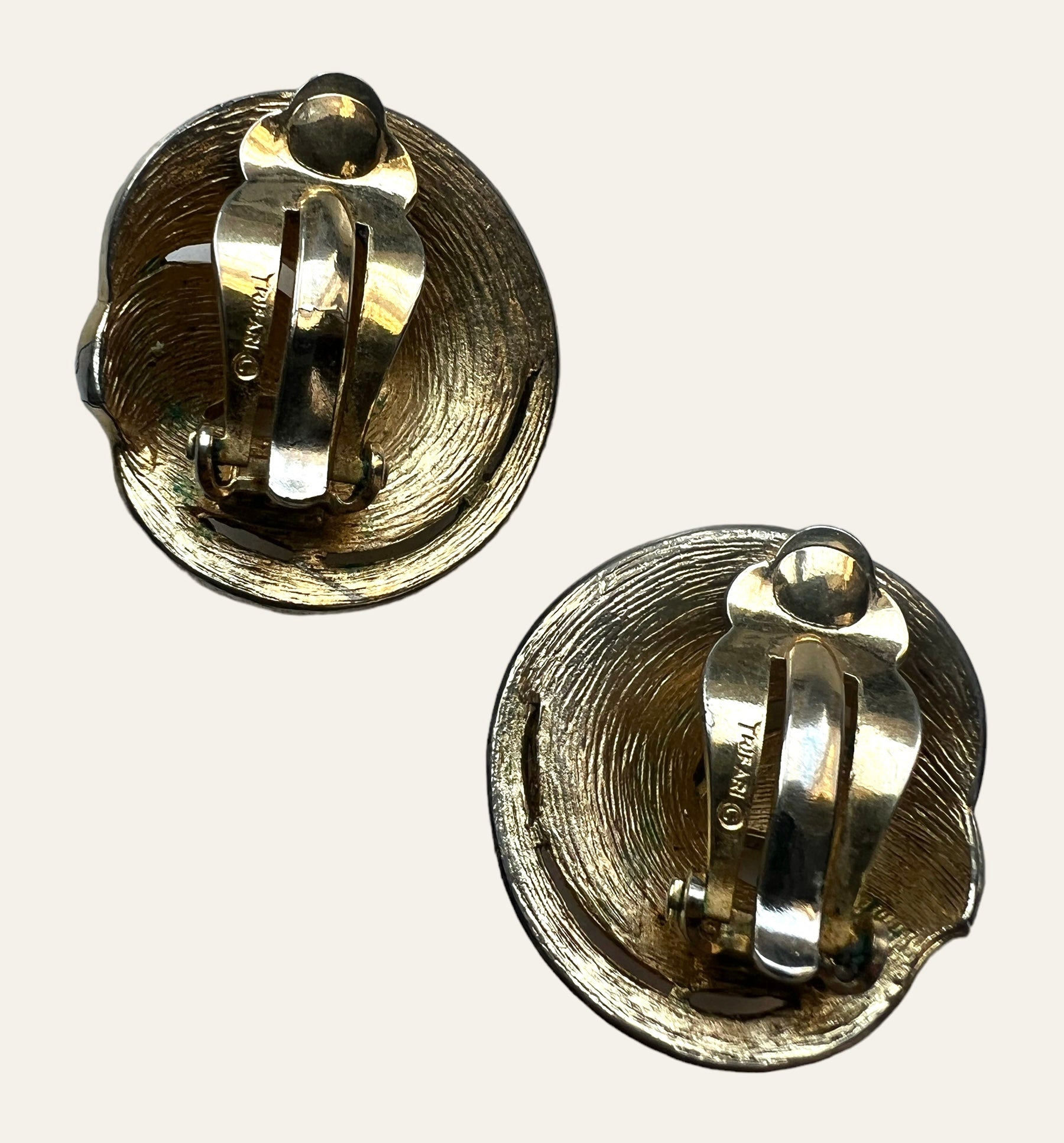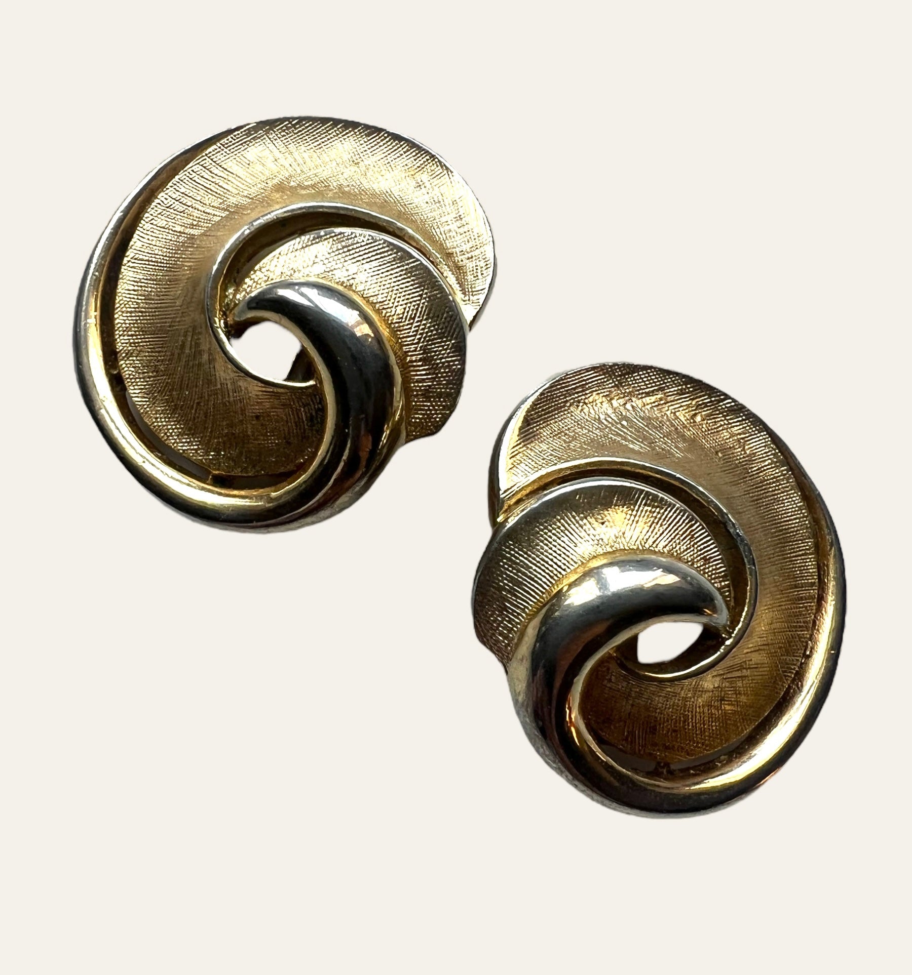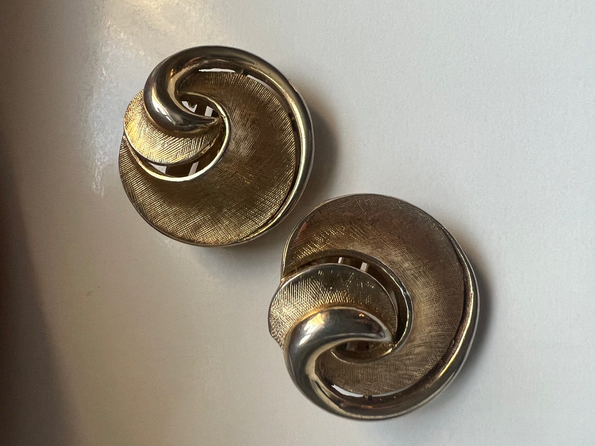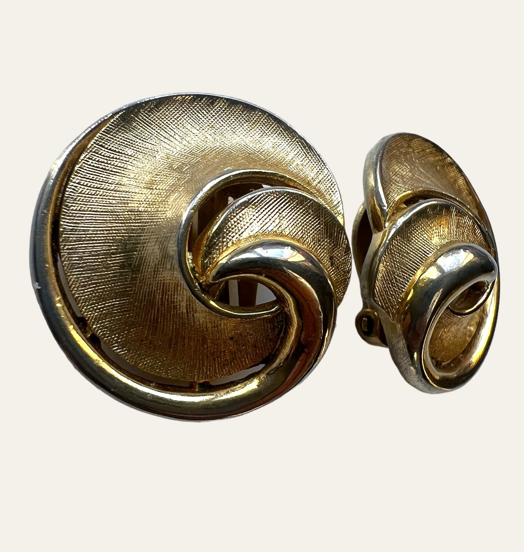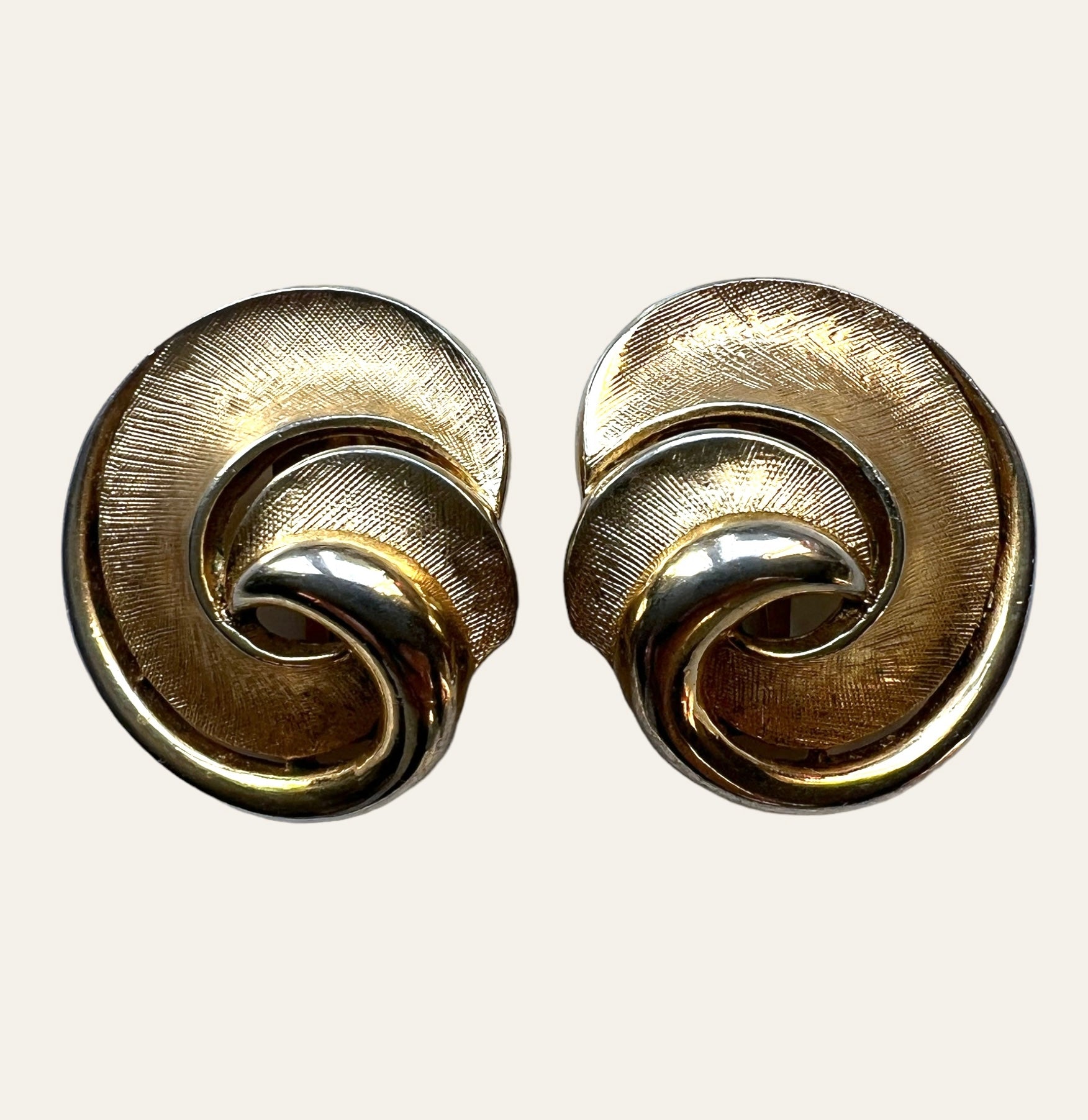 1950's Crown Trifari Swirl Design Clip On Earrings