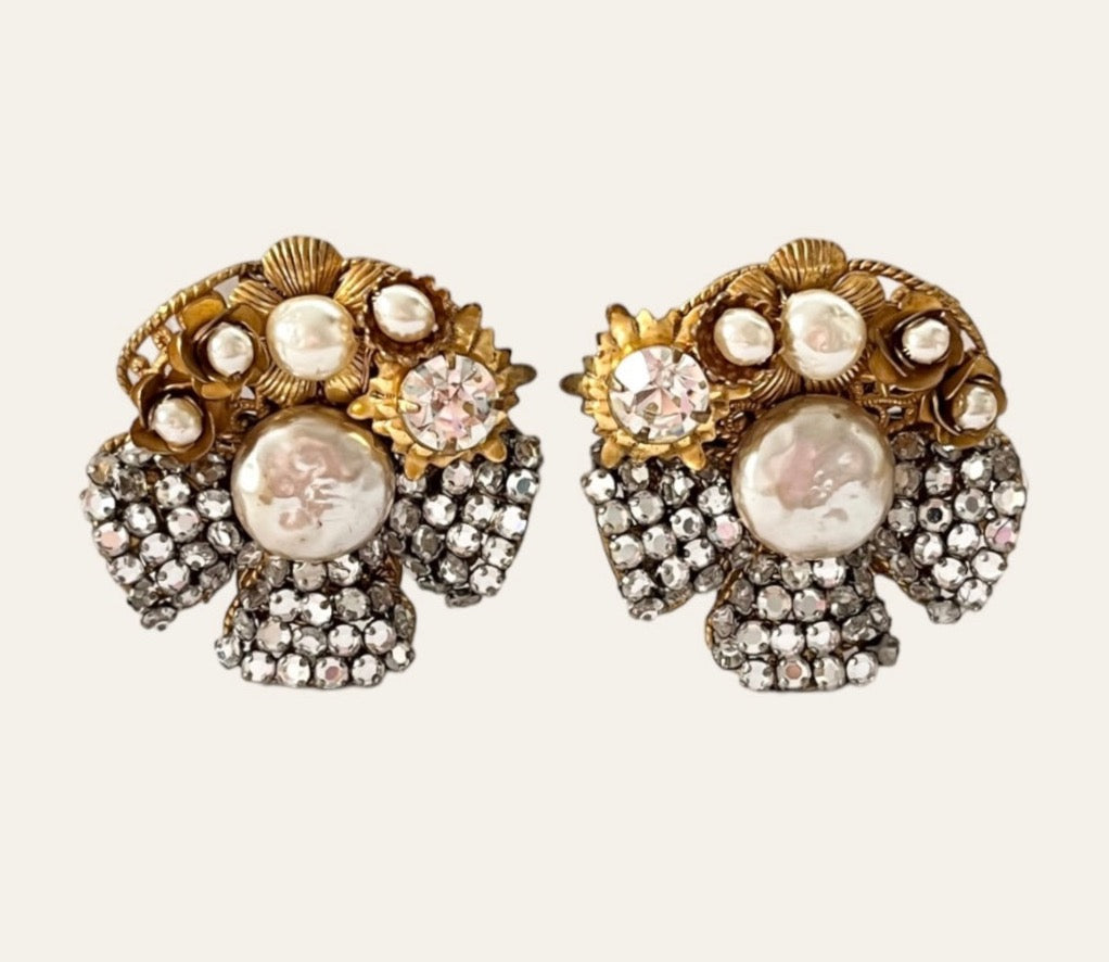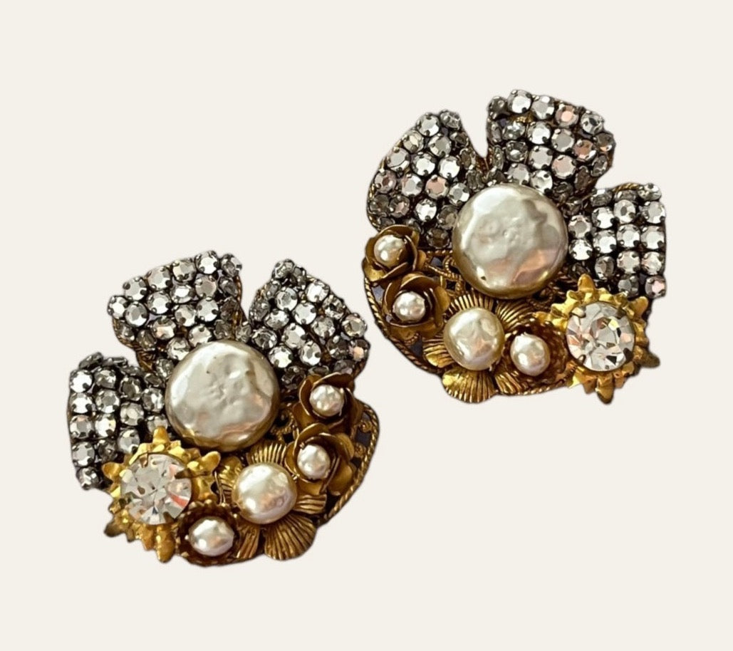 1950's Miriam Haskell Flower Earrings