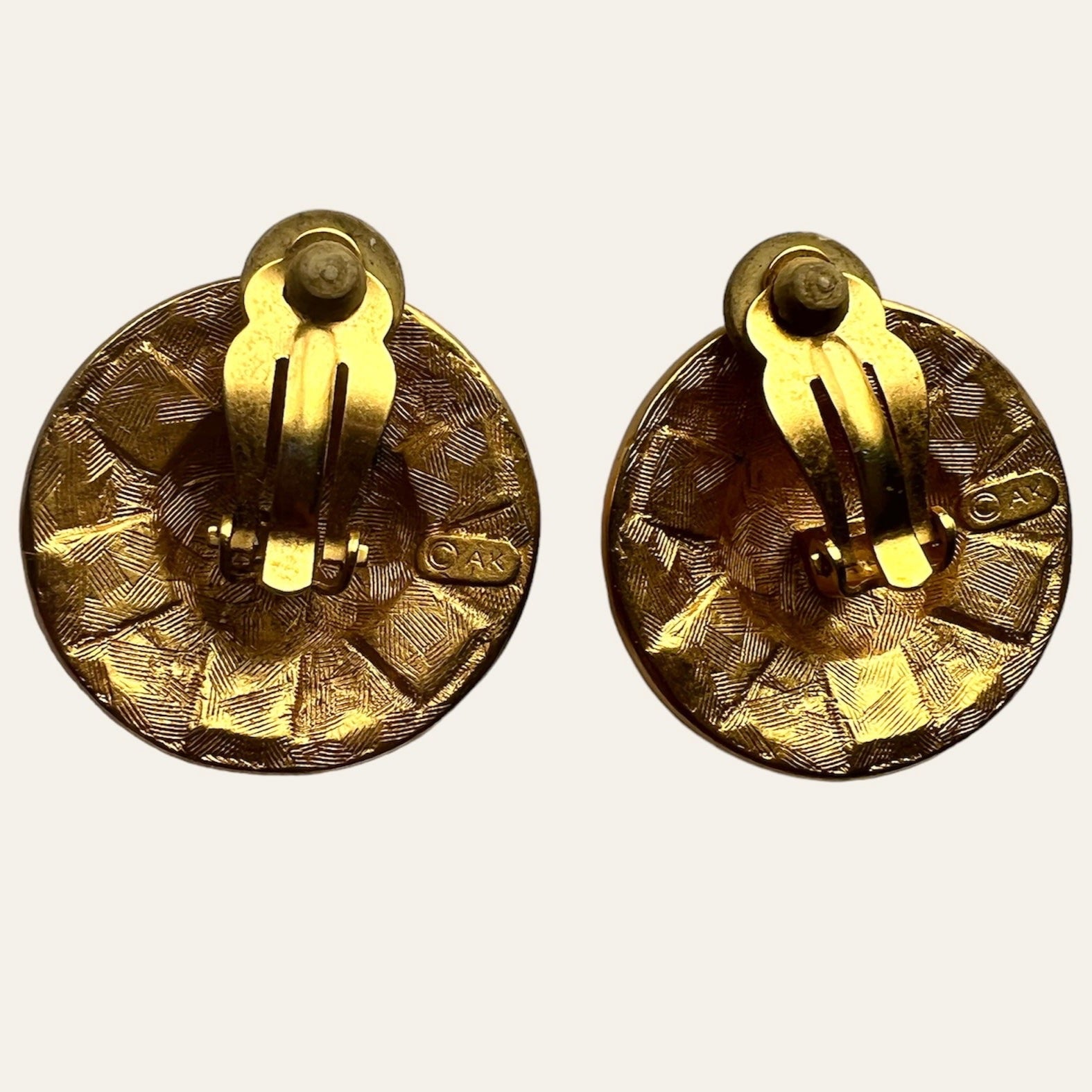 Vintage round figural statement earrings in Matte gold tone. They are great addition for any mid century collection.