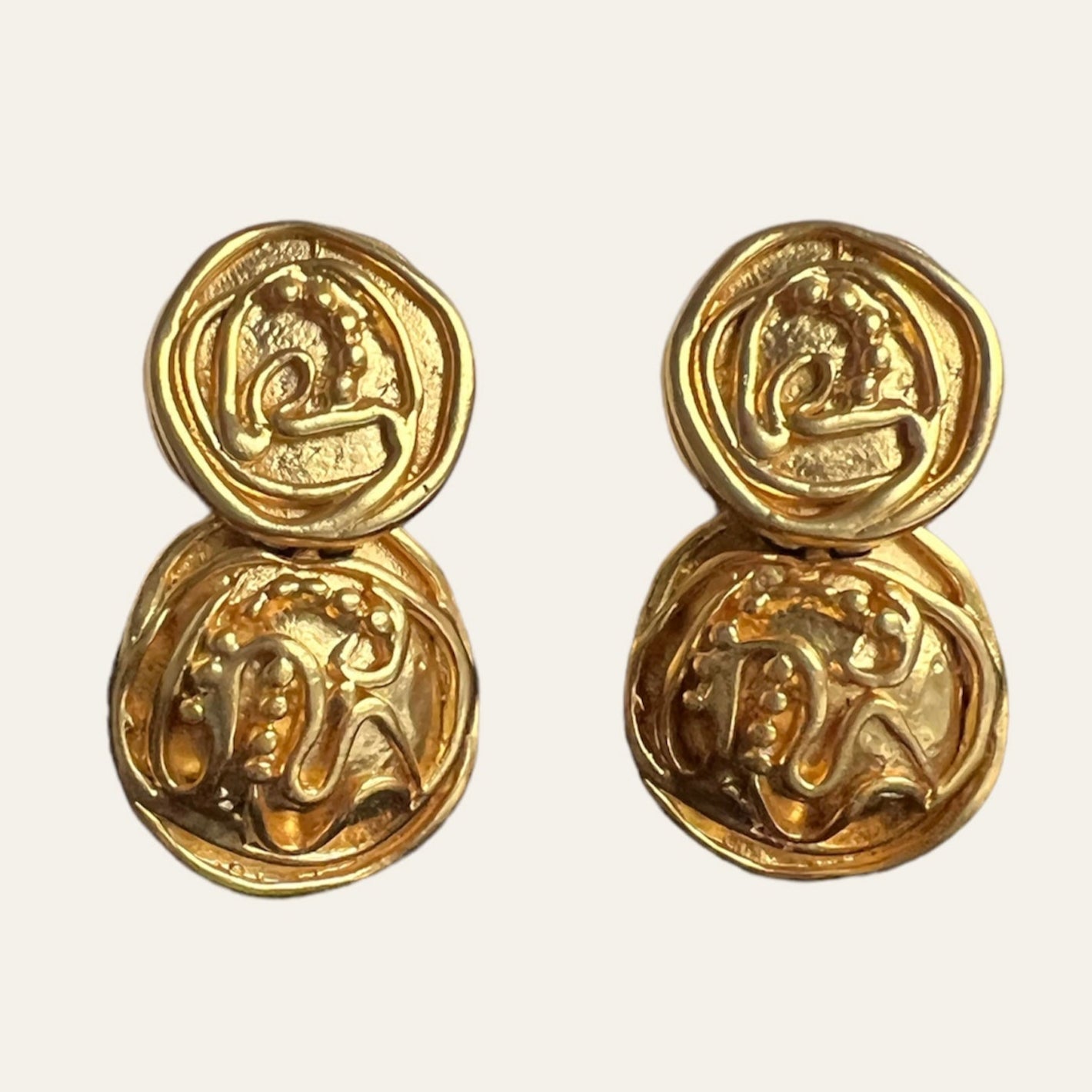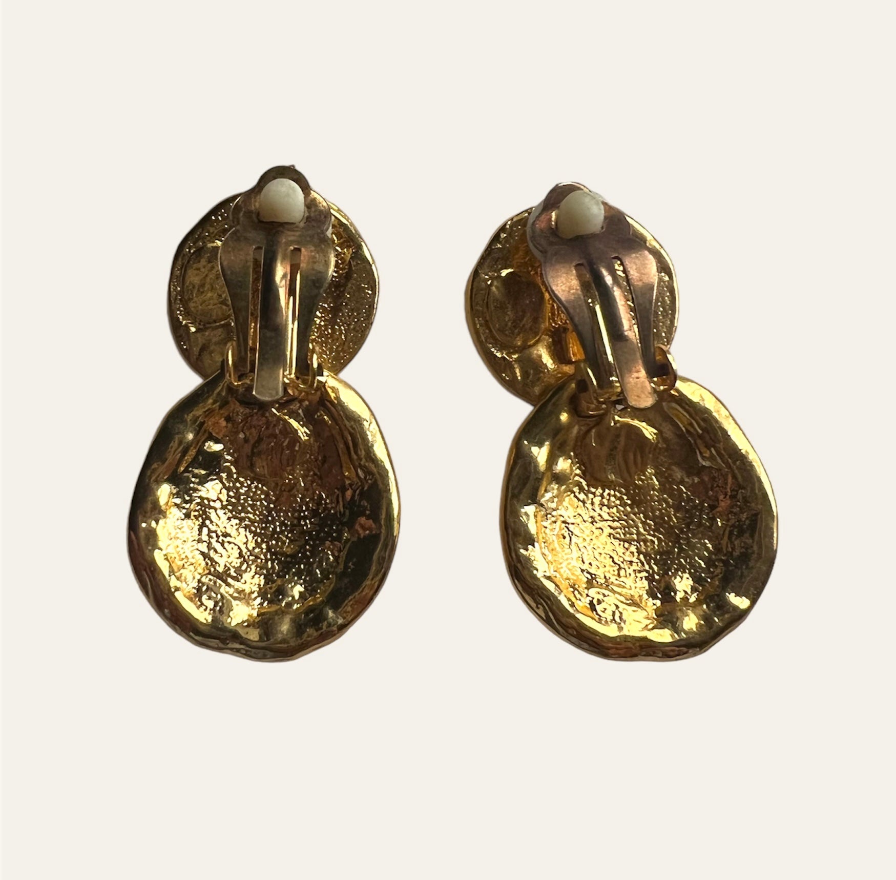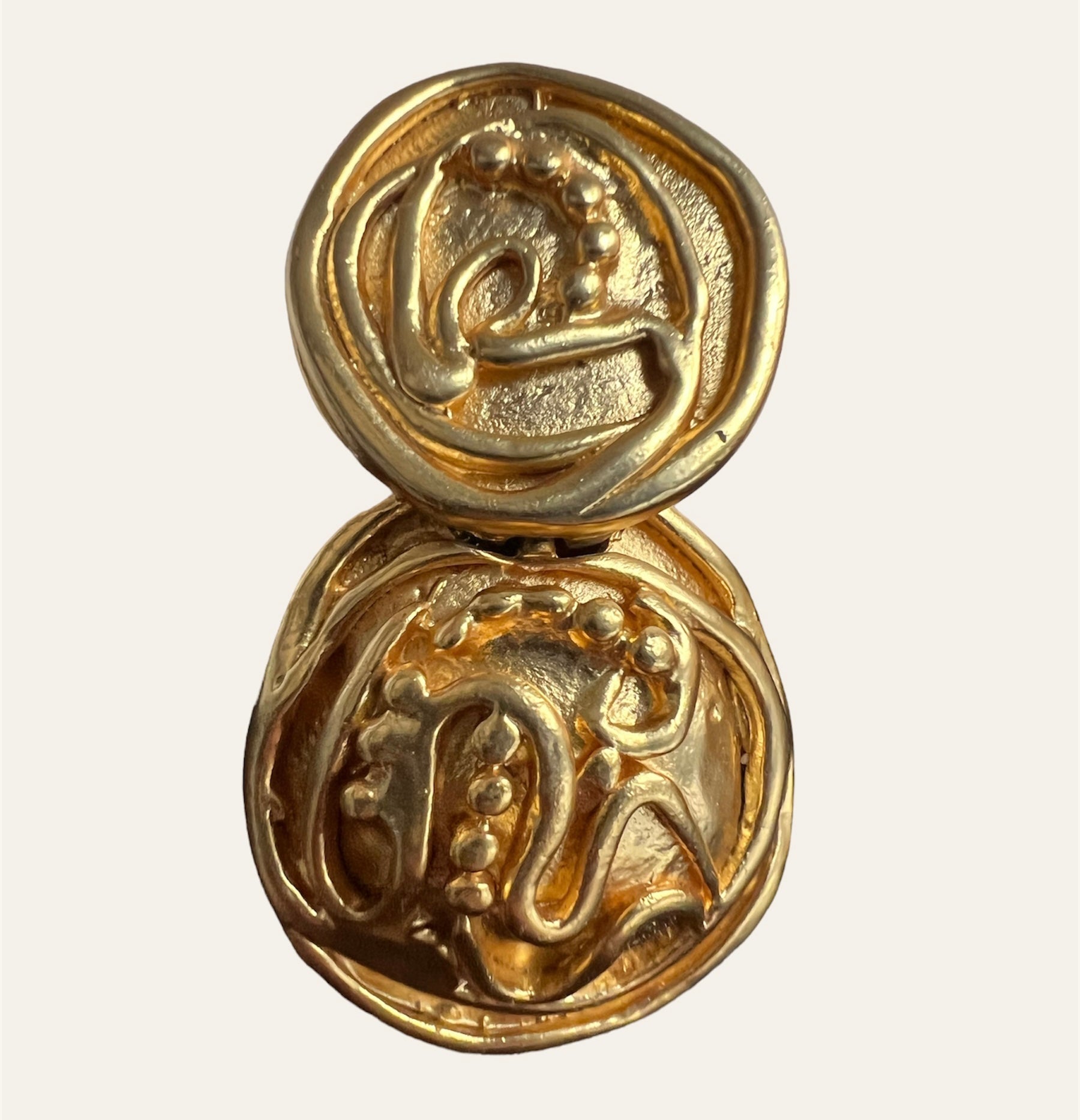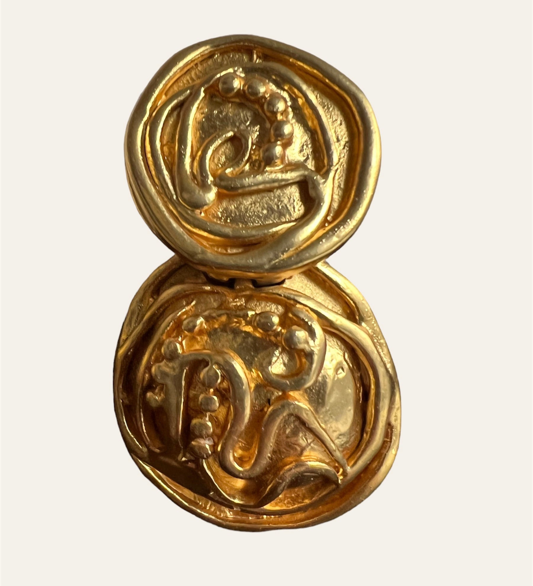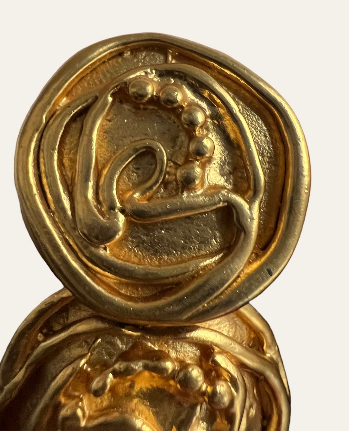 Unsigned Clip on brutalist textured earrings in a rich matte gold tone. They are so bold and just gorgeous. They look expensive.