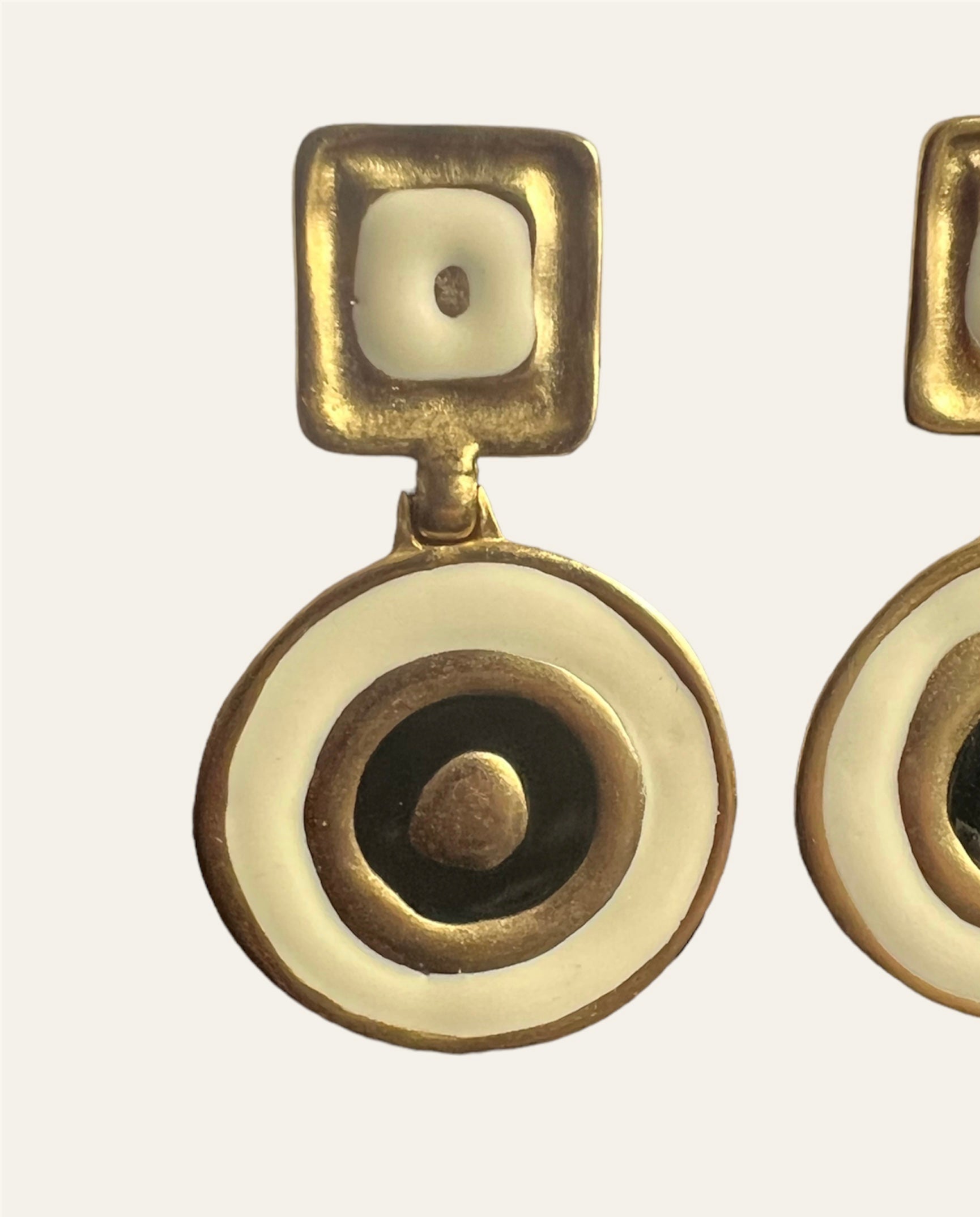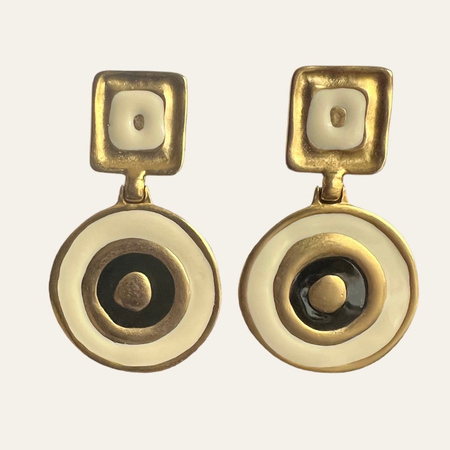 These are so fun! Off white and black enamels with a touch of matte gold tone clip ons.