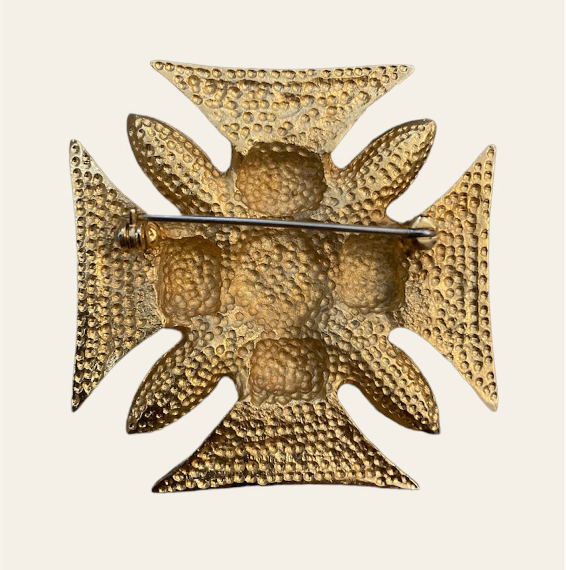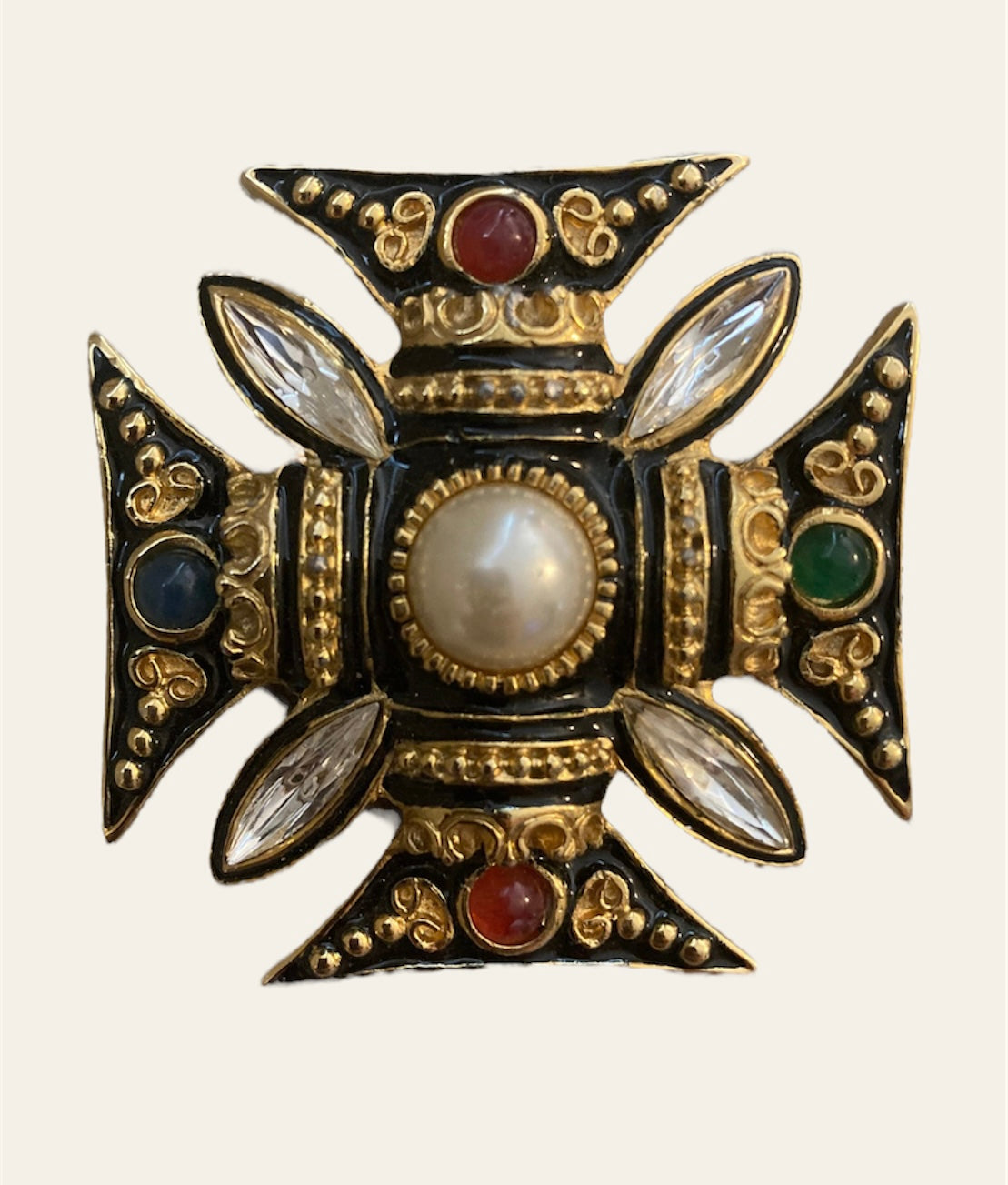 1980'S Gold and Black Gripoix Style Maltese Cross Brooch