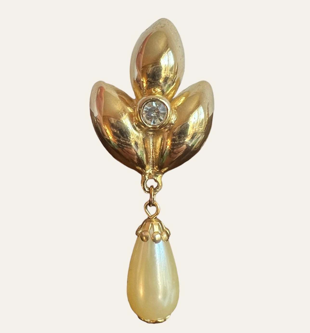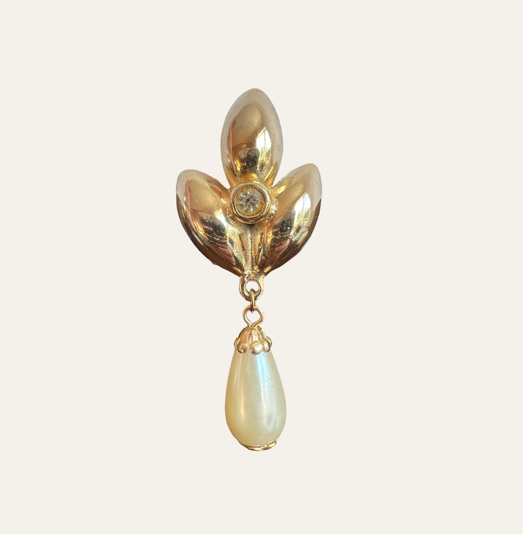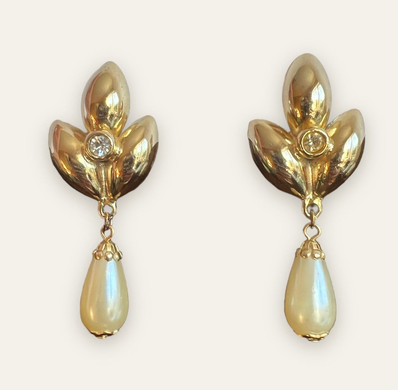 1980's Gold Tone Faux Pearls Dangle Earrings