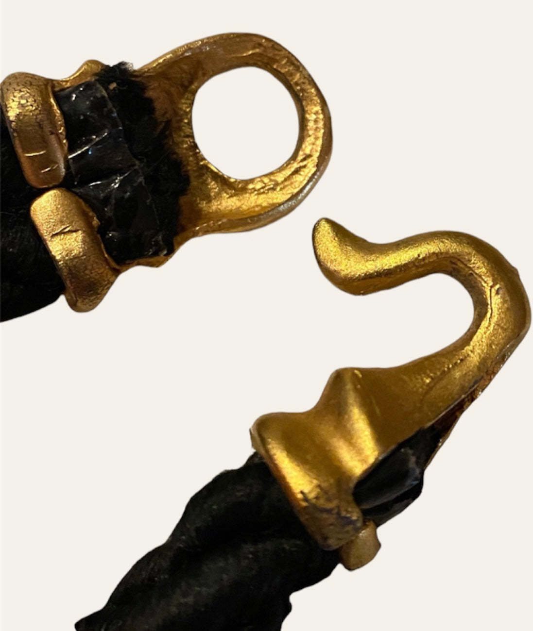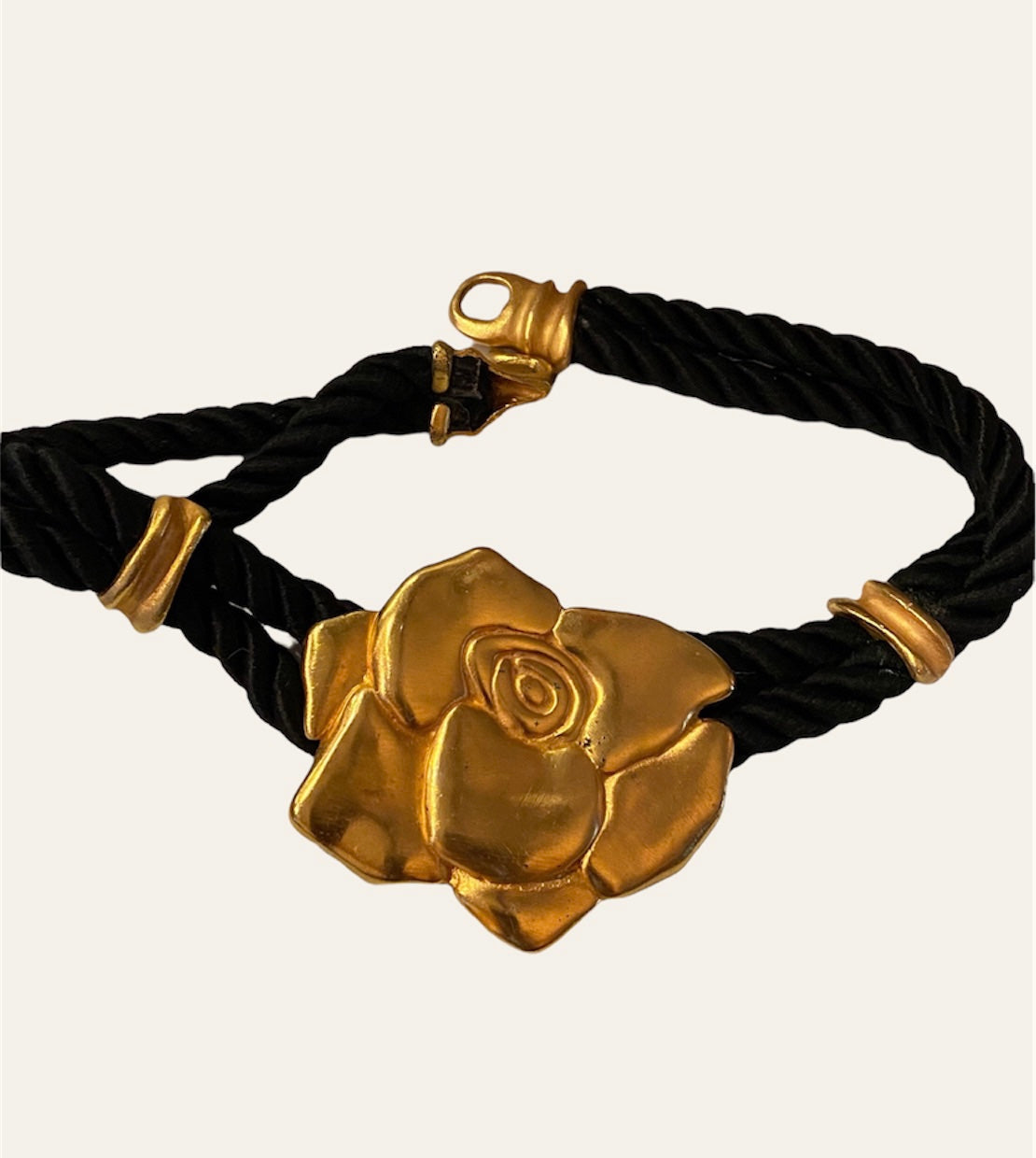1980's Gold Tone Flower Bloom on Black Choker Rope