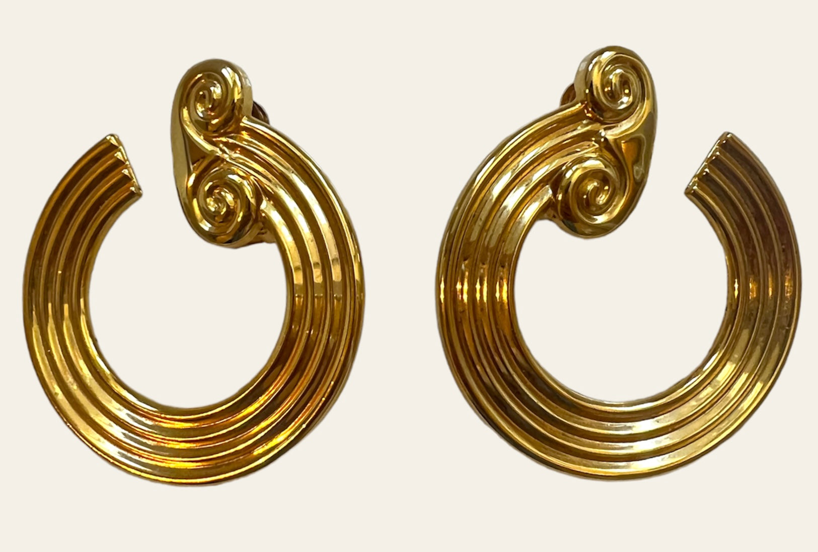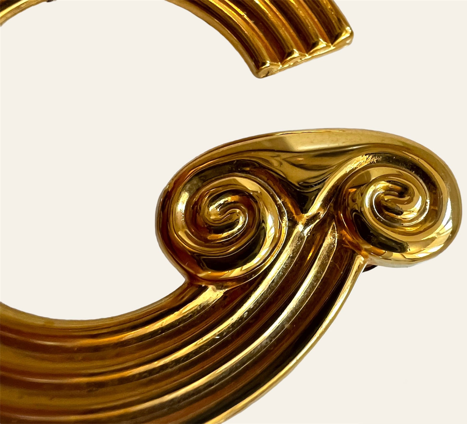 Alexis Kirk 1980's Greek Style Ionic Gold Tone Clip On Earrings