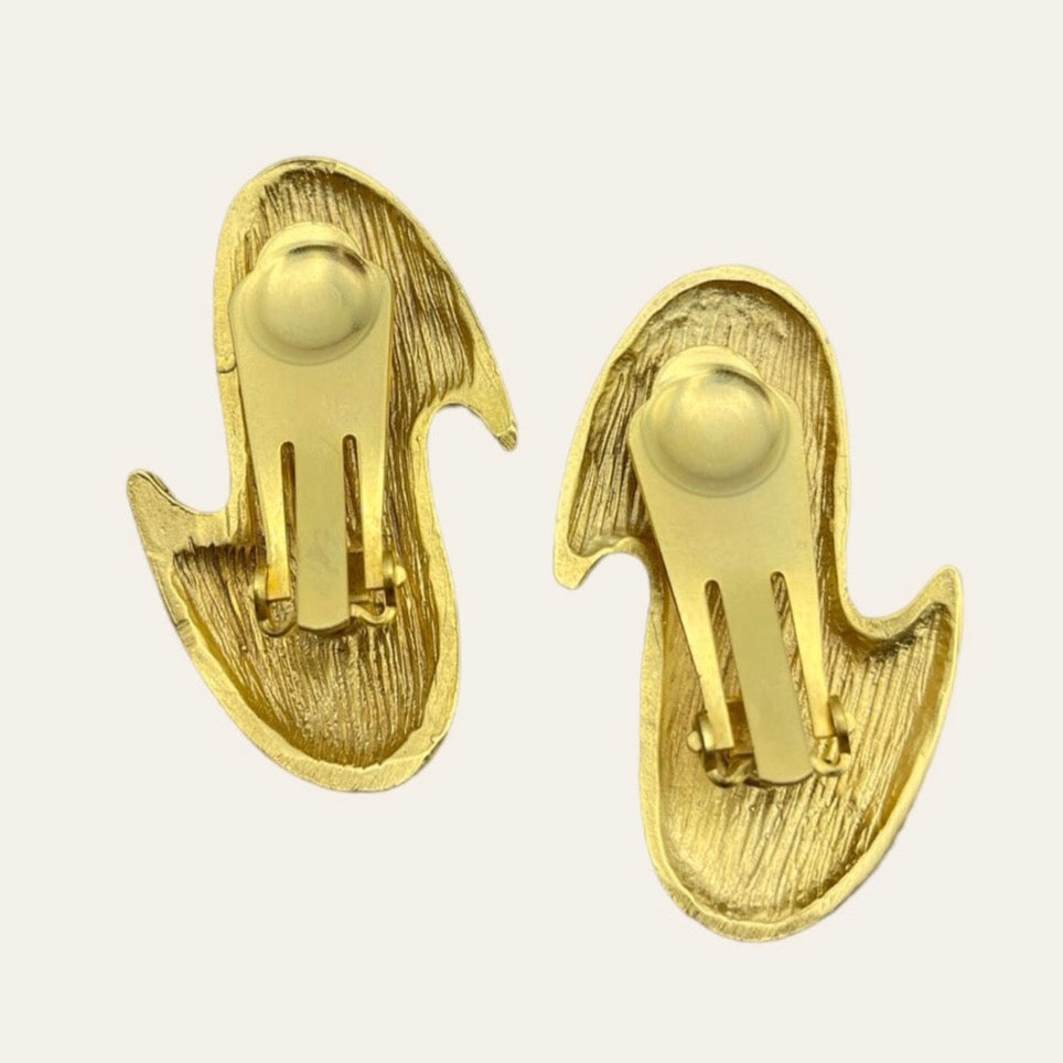 Marvellous and unique abstract matt gold tone clip on earrings! They are massive and do not go unnoticed! A Romy's fav!