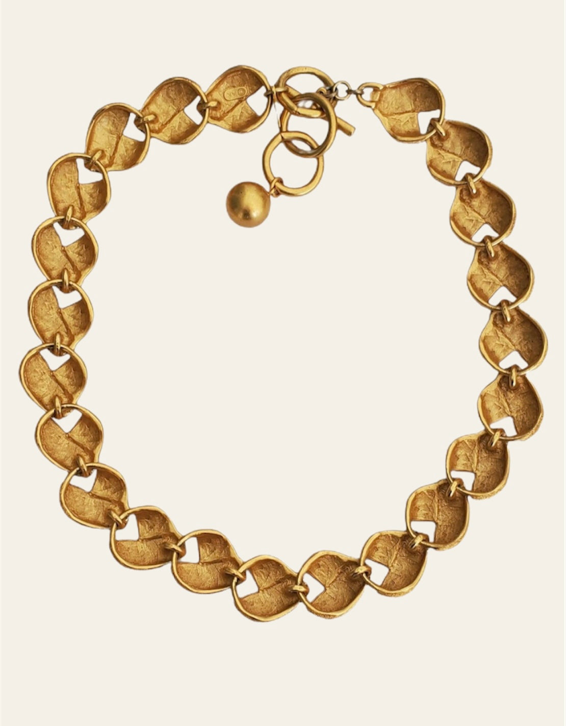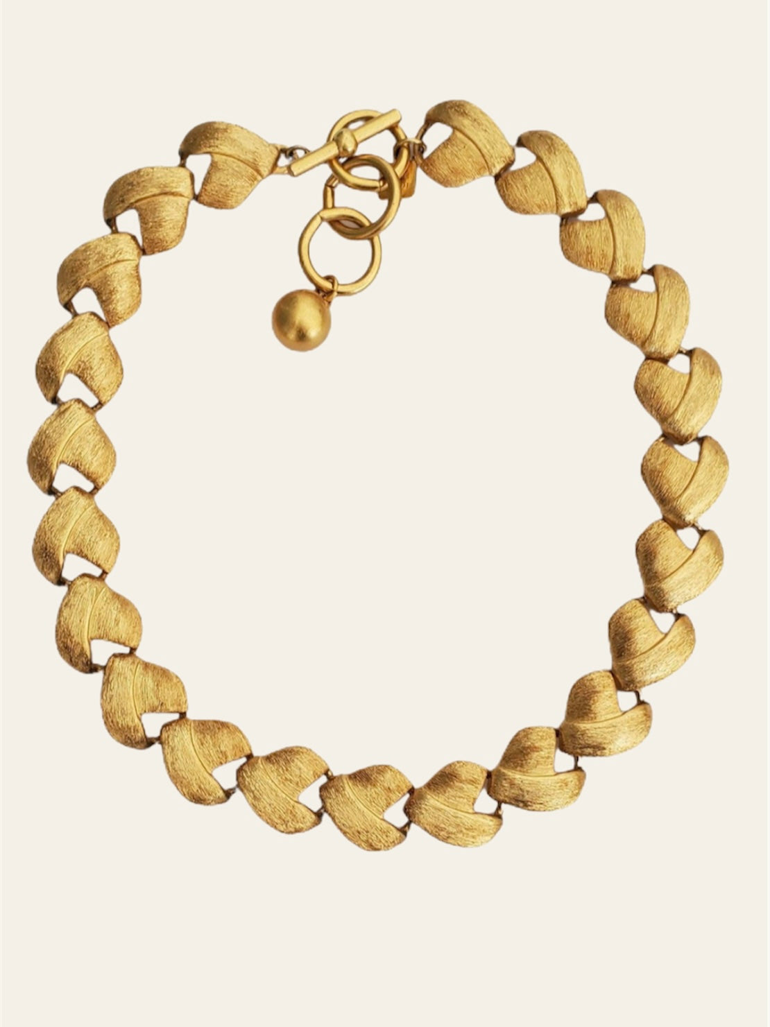 Signed on hang tag Anne Klein "AK" 1990's pre-owned lustrous brushed gold tone necklace. Can be worn at choker length or adjusted a bit longer.