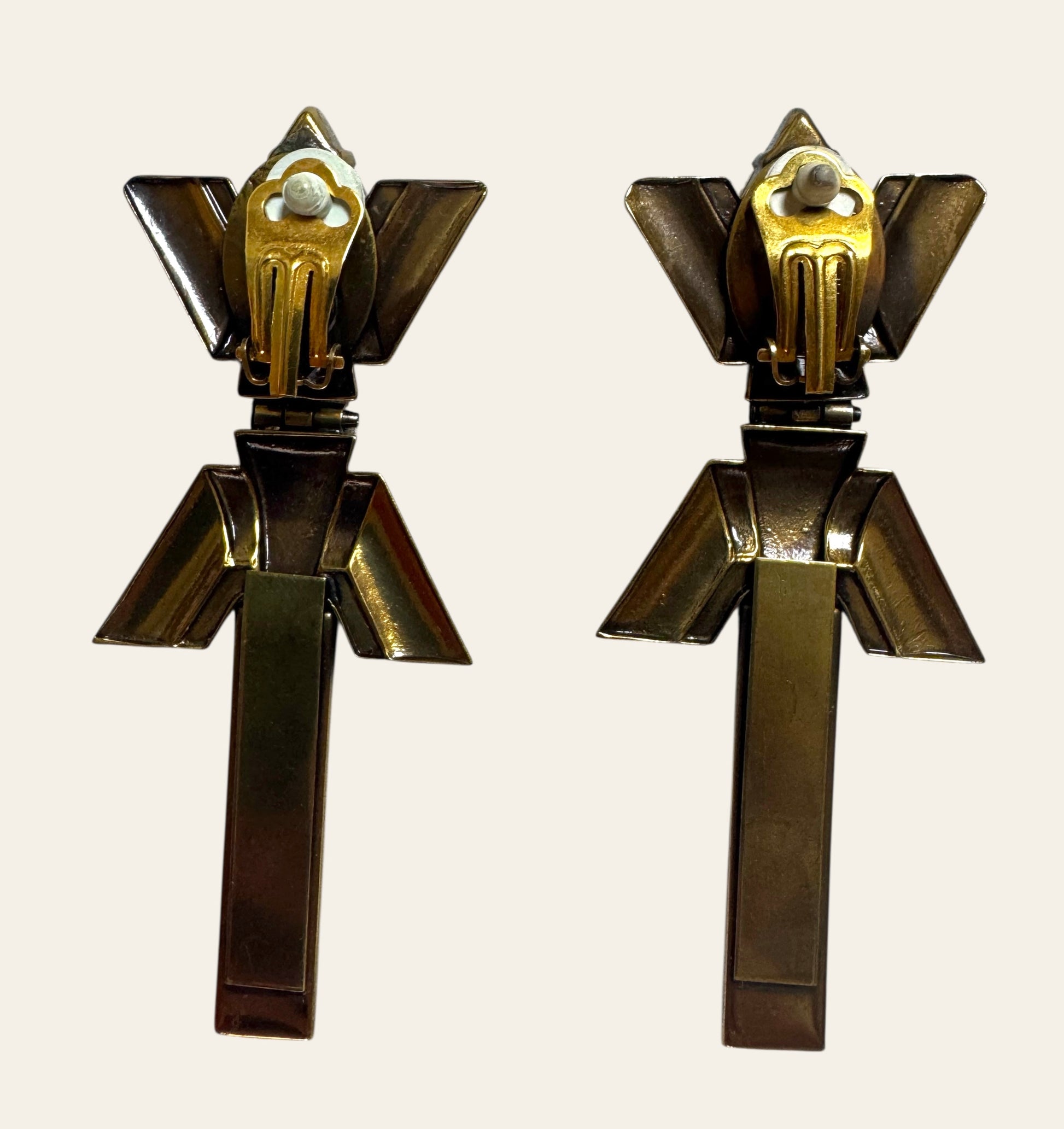 1990's Ermani Bulatti Art Deco Style Clip On Earrings