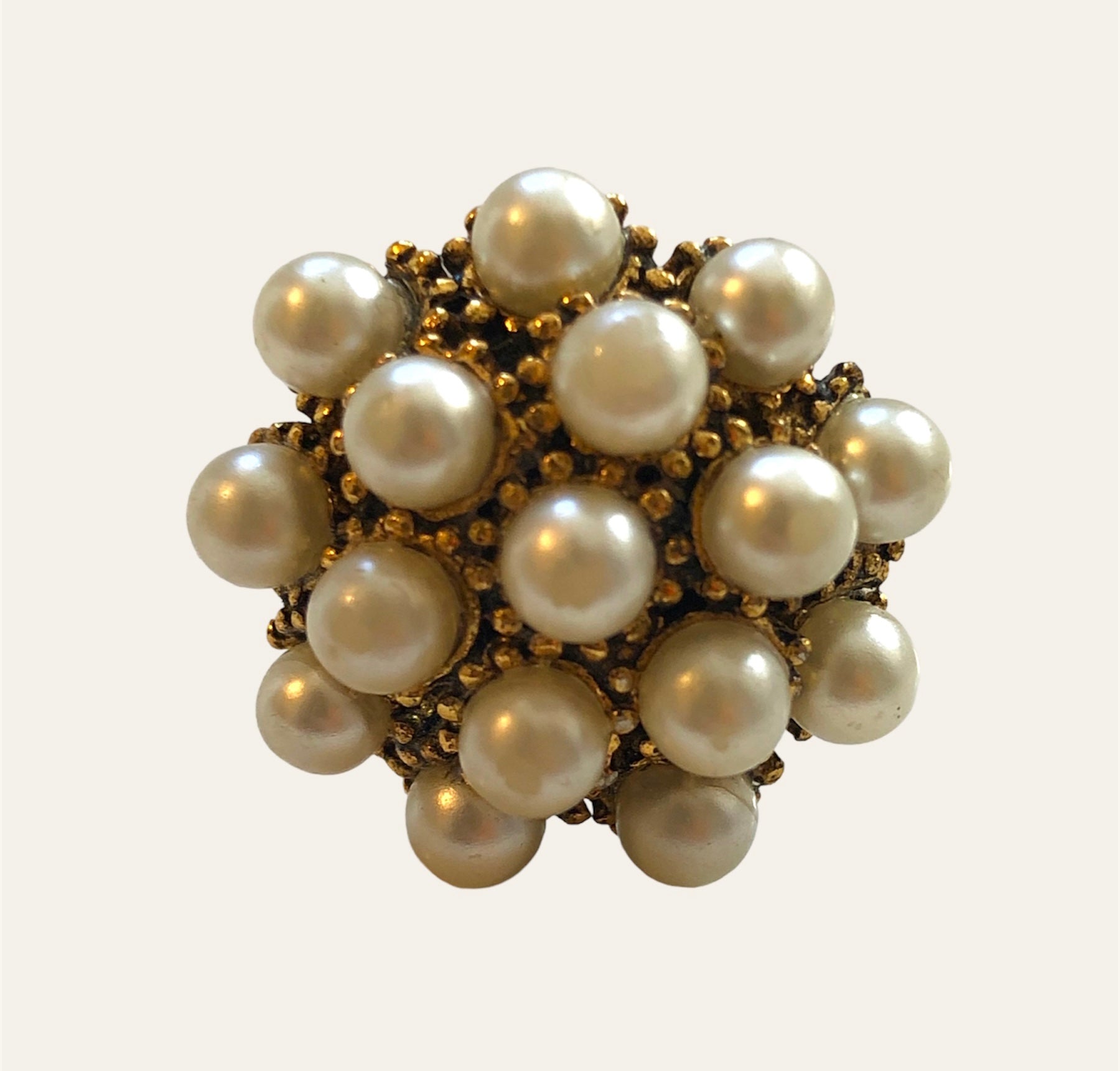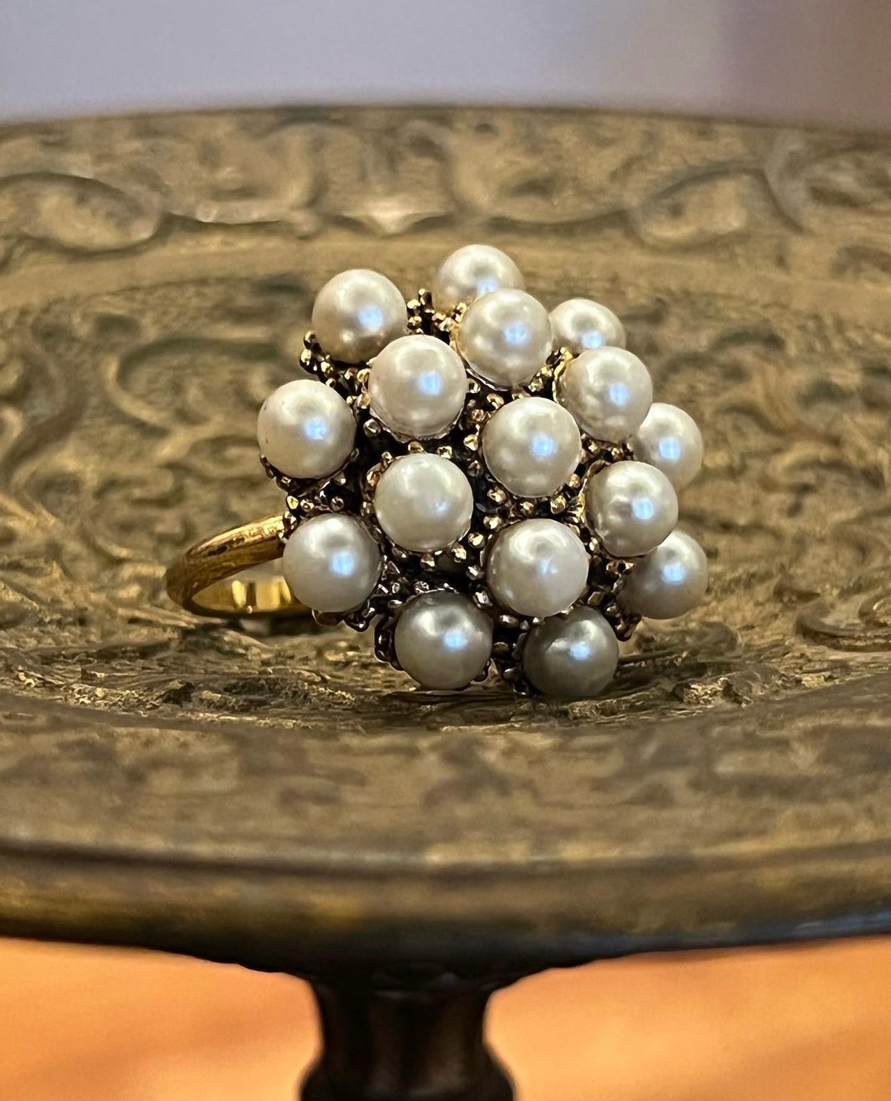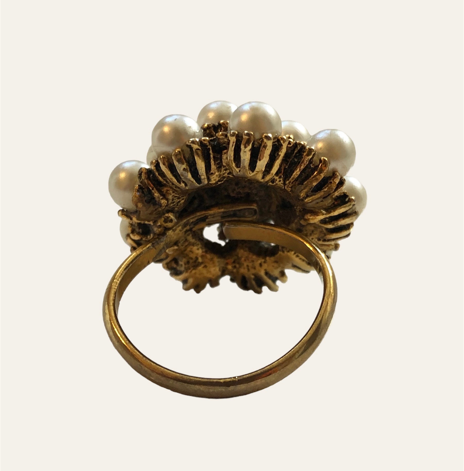 Adjustable Circular Gold Tone Ring With Faux Pearls