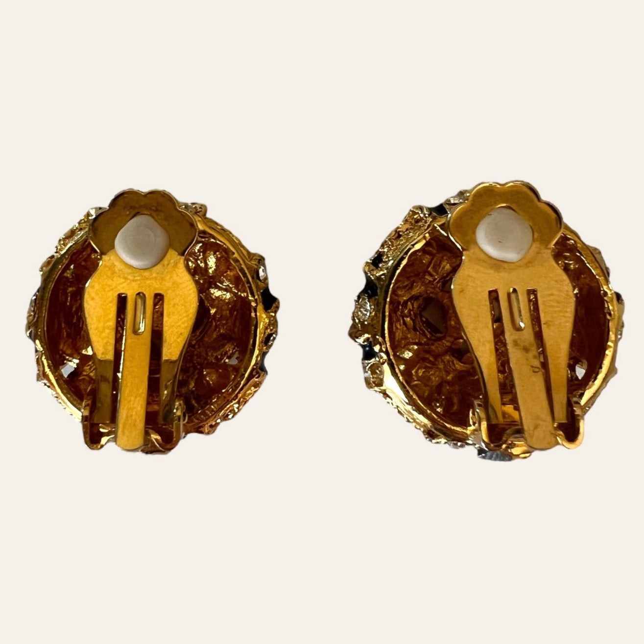 Black Enamel With Multicolour Rhinestones Clip On Earrings