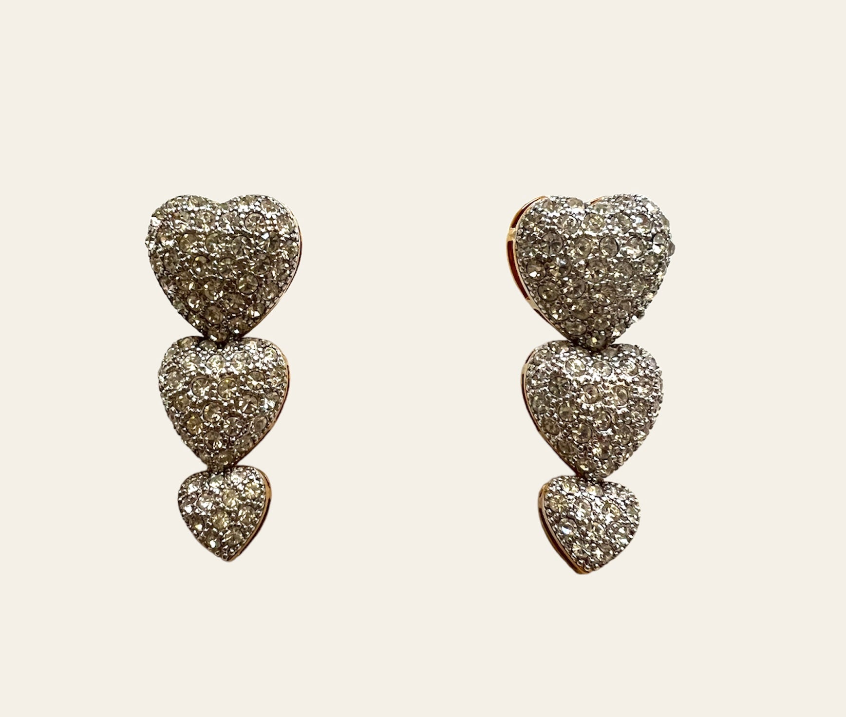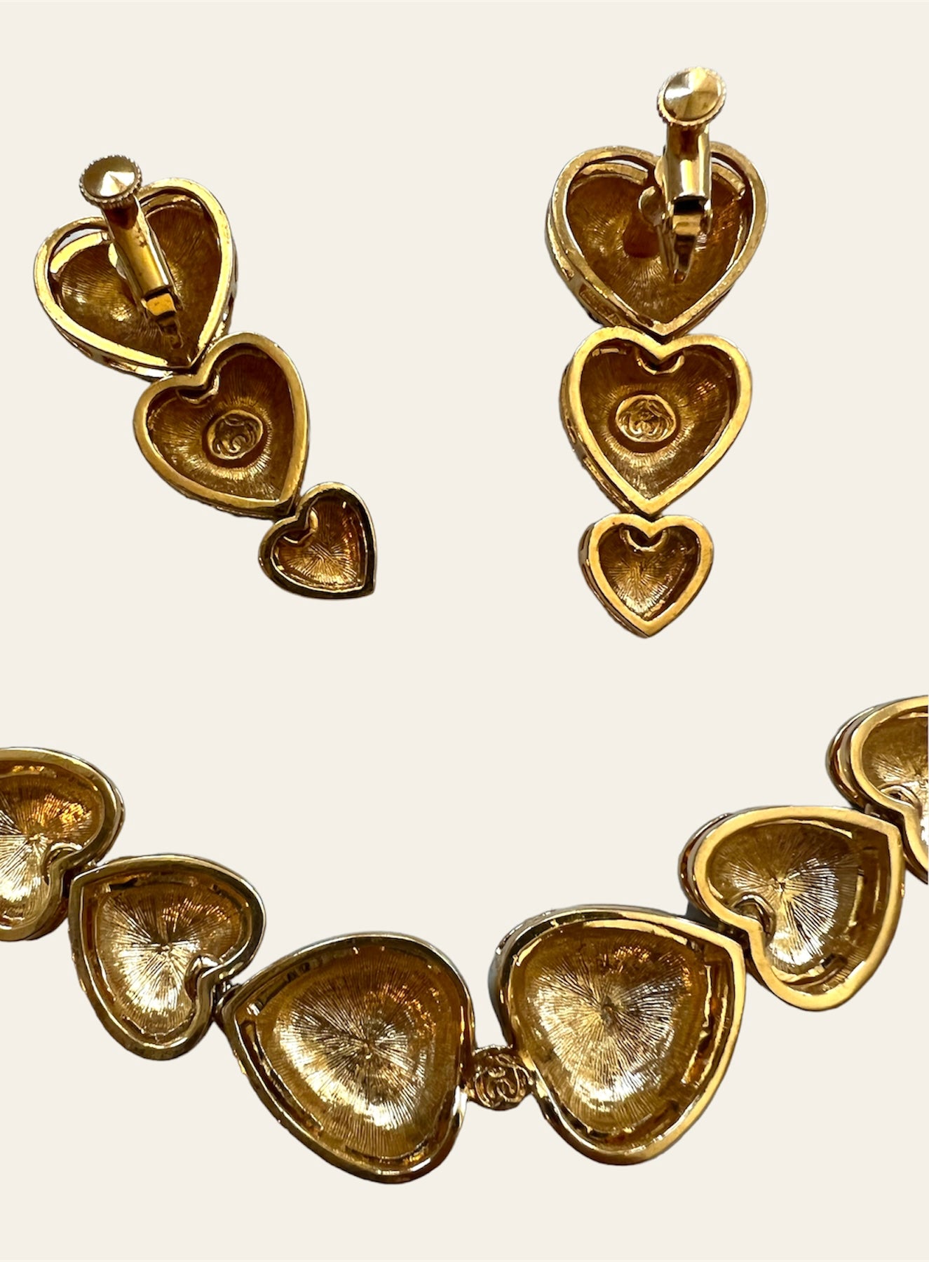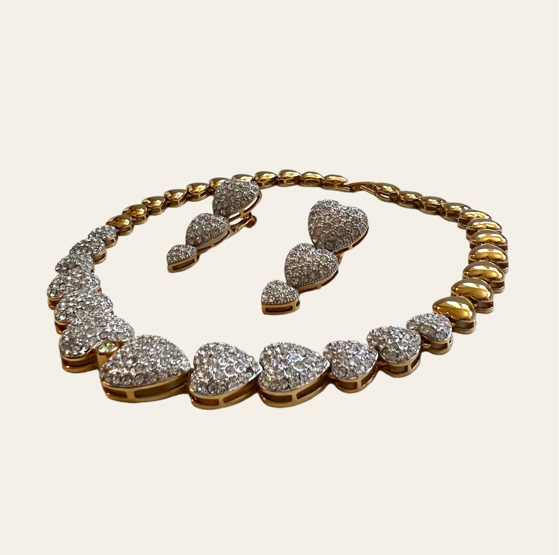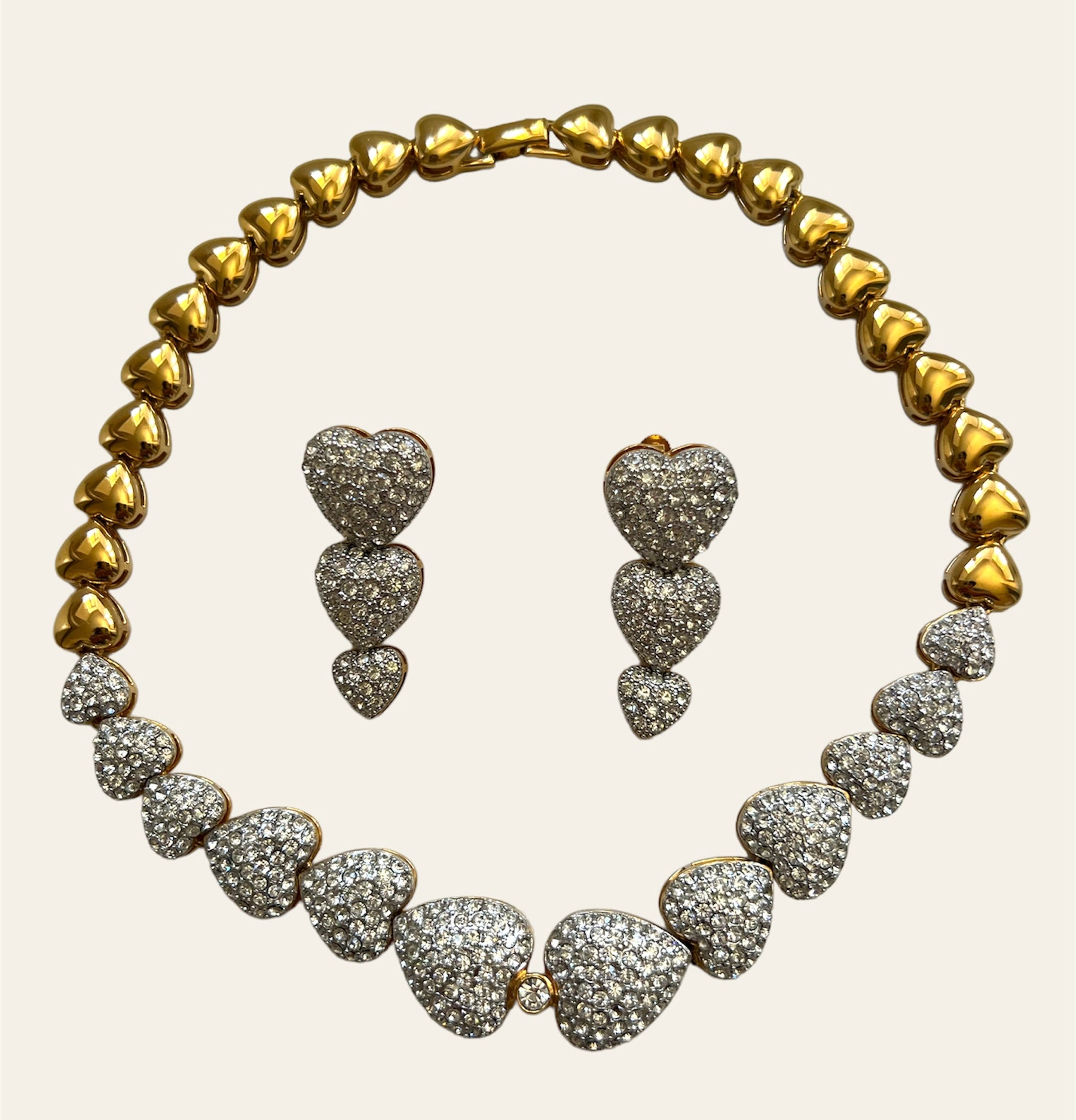 GORGEOUS NOS 1990's extremely shiny costume jewelry set with rhinestones hearts.