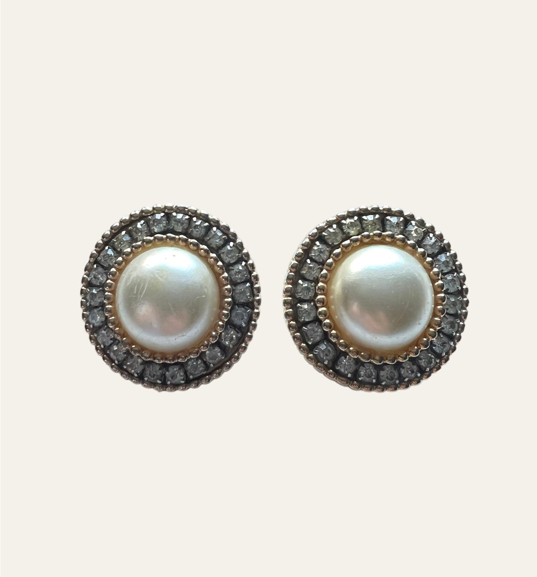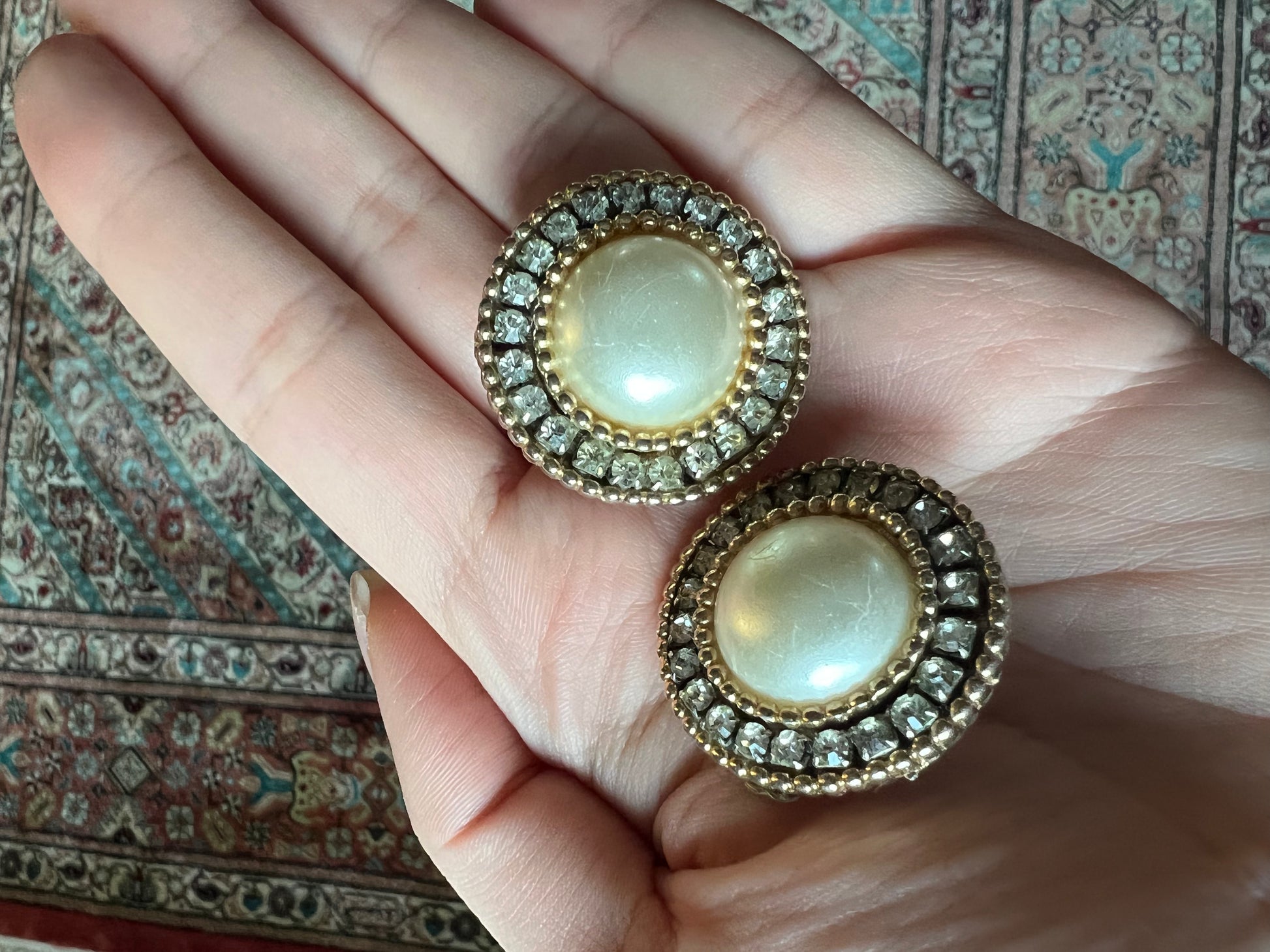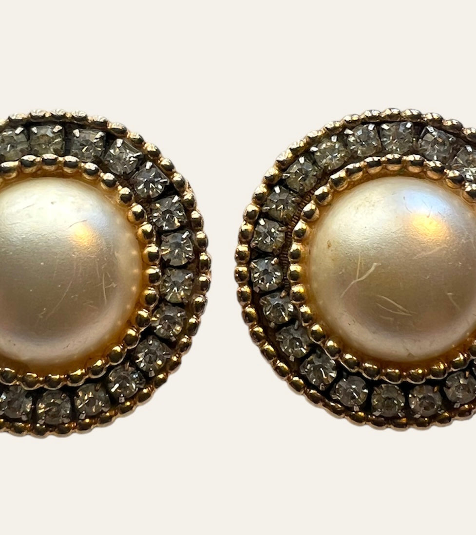 Faux pearls with Rhinestones Gold Tone Clip On Earrings