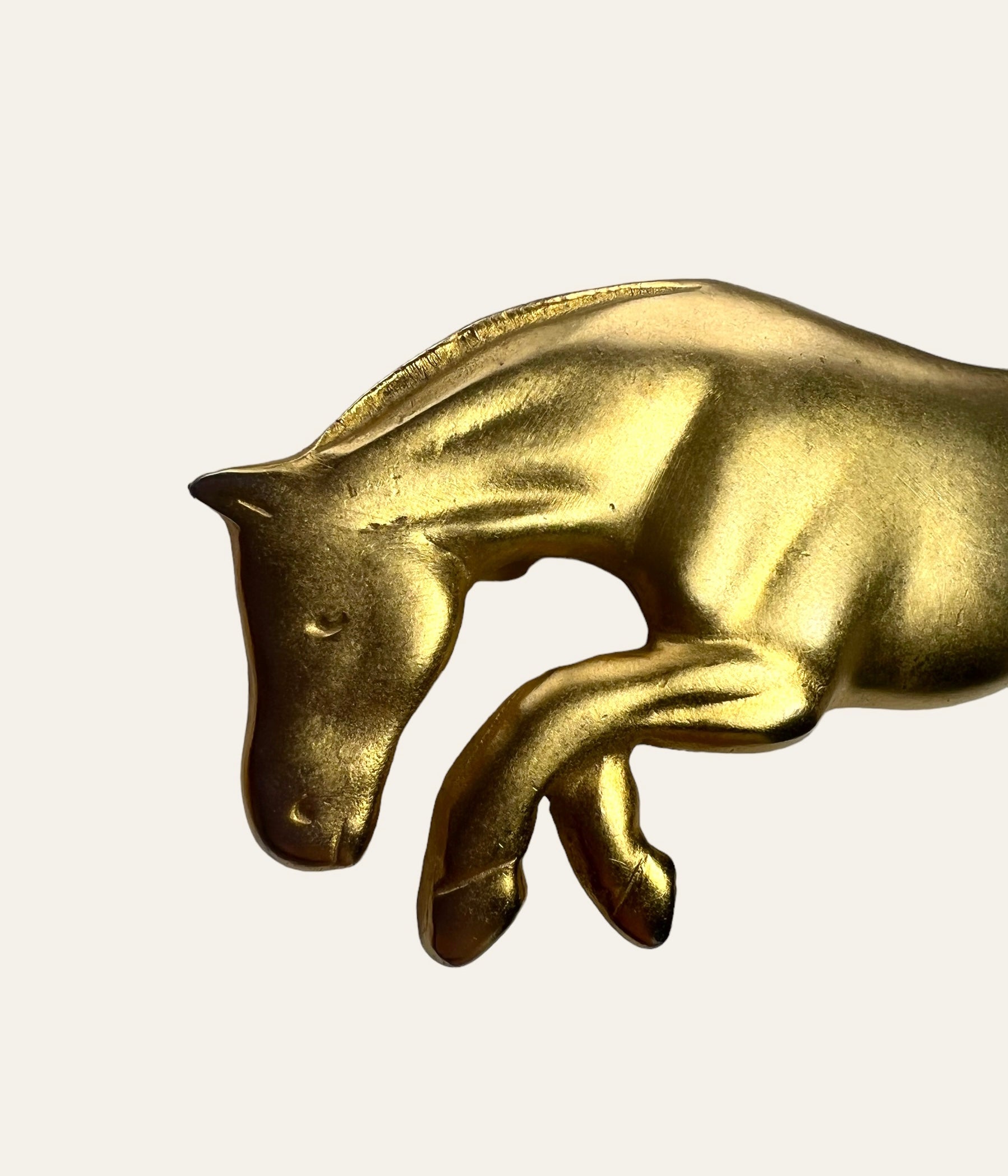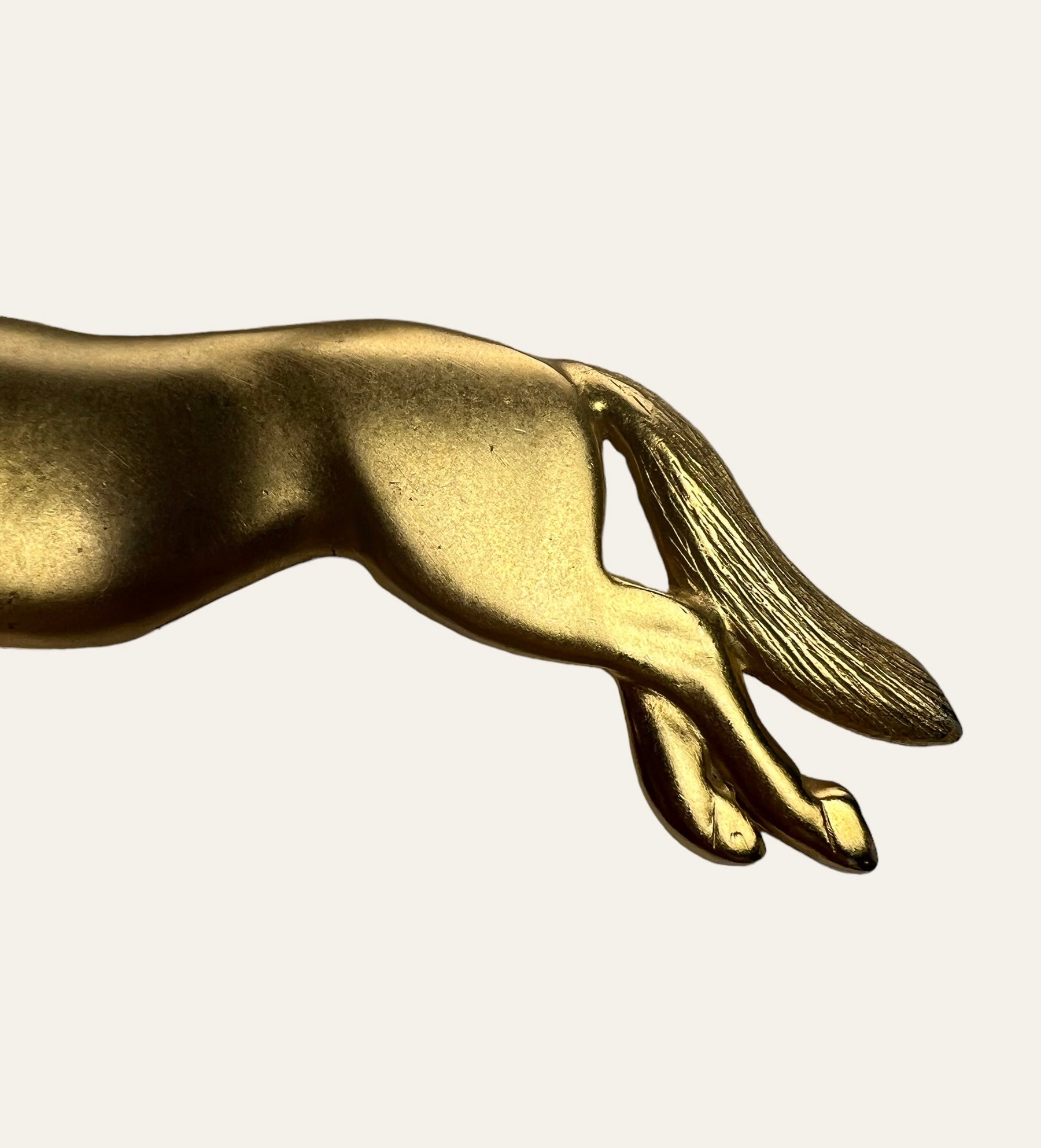 Stunning made in France matte gold tone horse shaped hair accessory.