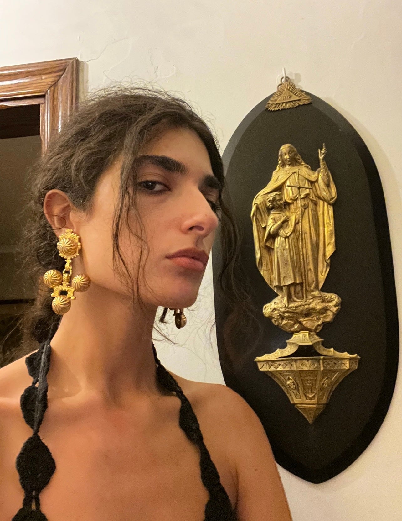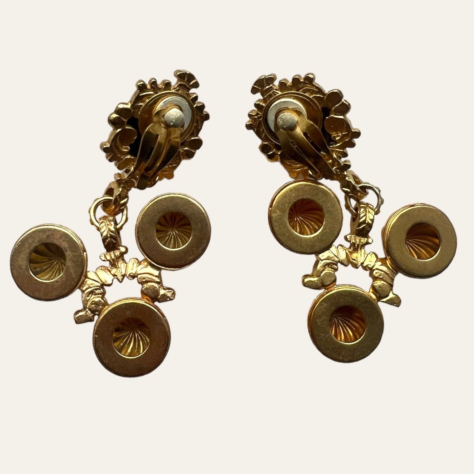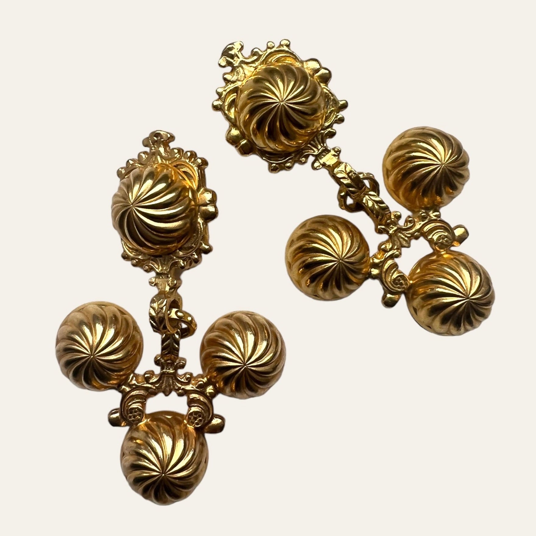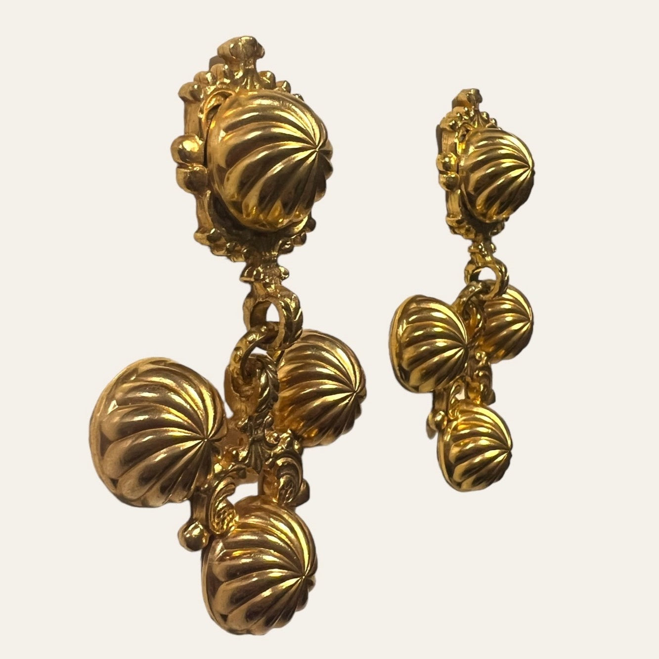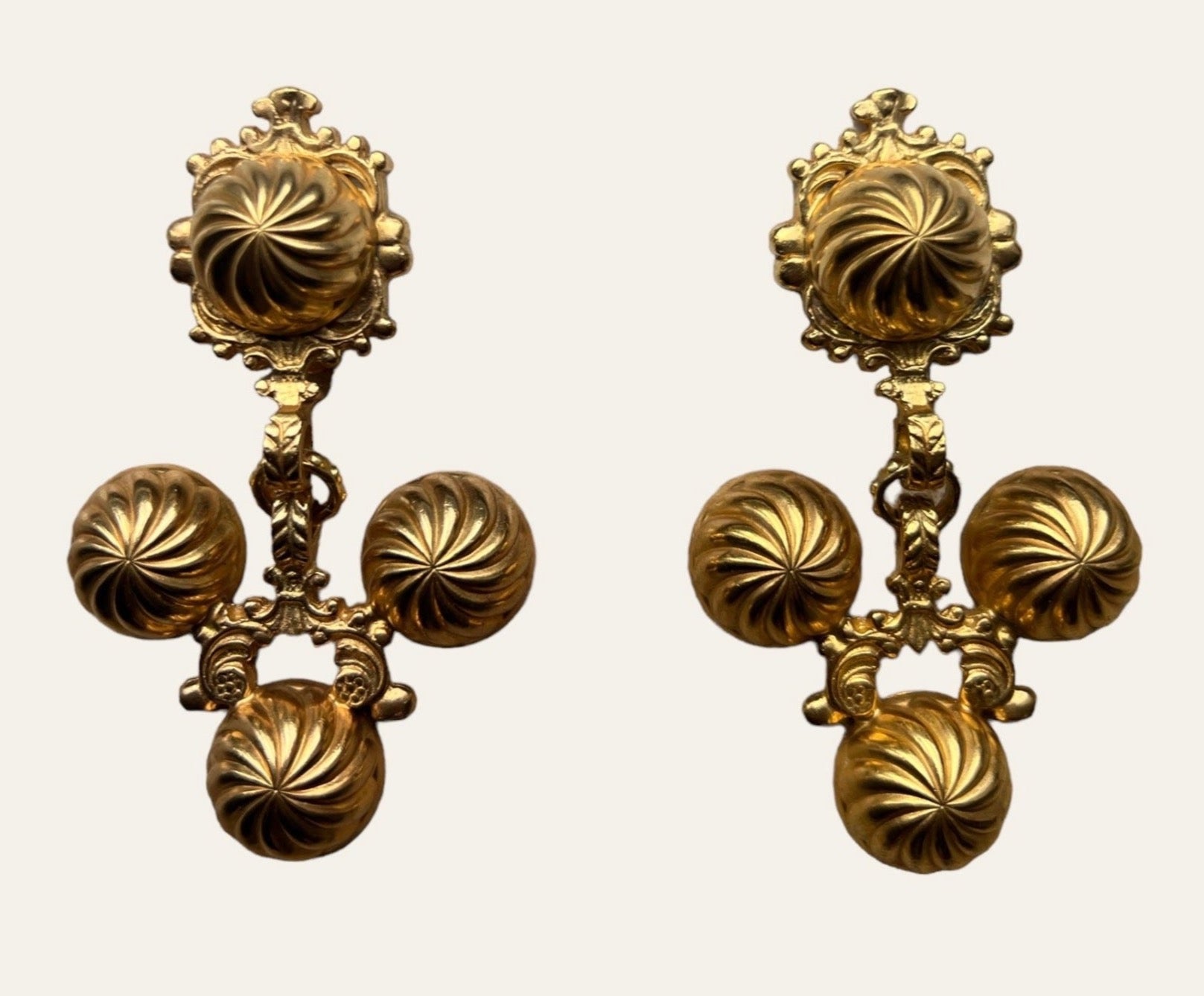 Exceptional and rare gold plated large clip on earrings. They embody this Greek Goddess energy. A Romy's favorite!