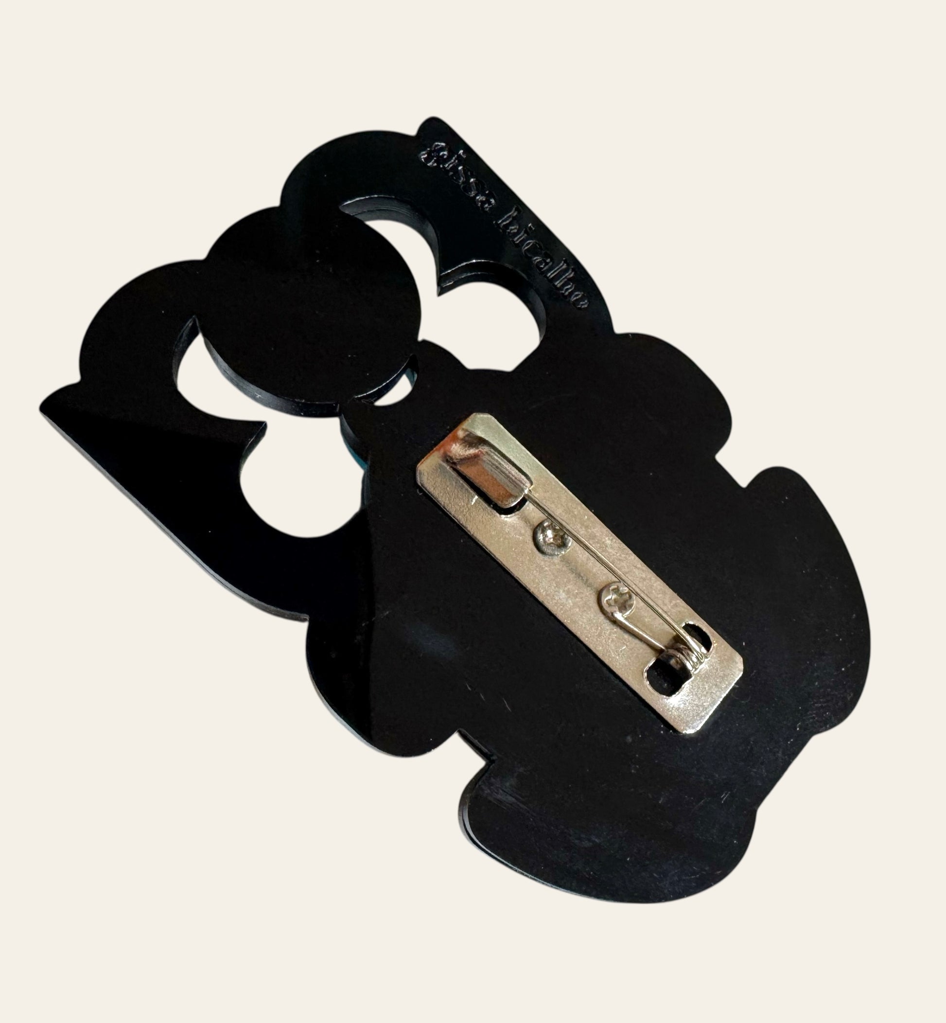 This brooch exemplifies Gissa Bicalho’s signature approach: mixing industrial materials with historical and symbolic references, transforming jewelry into wearable pop-architectural statements.