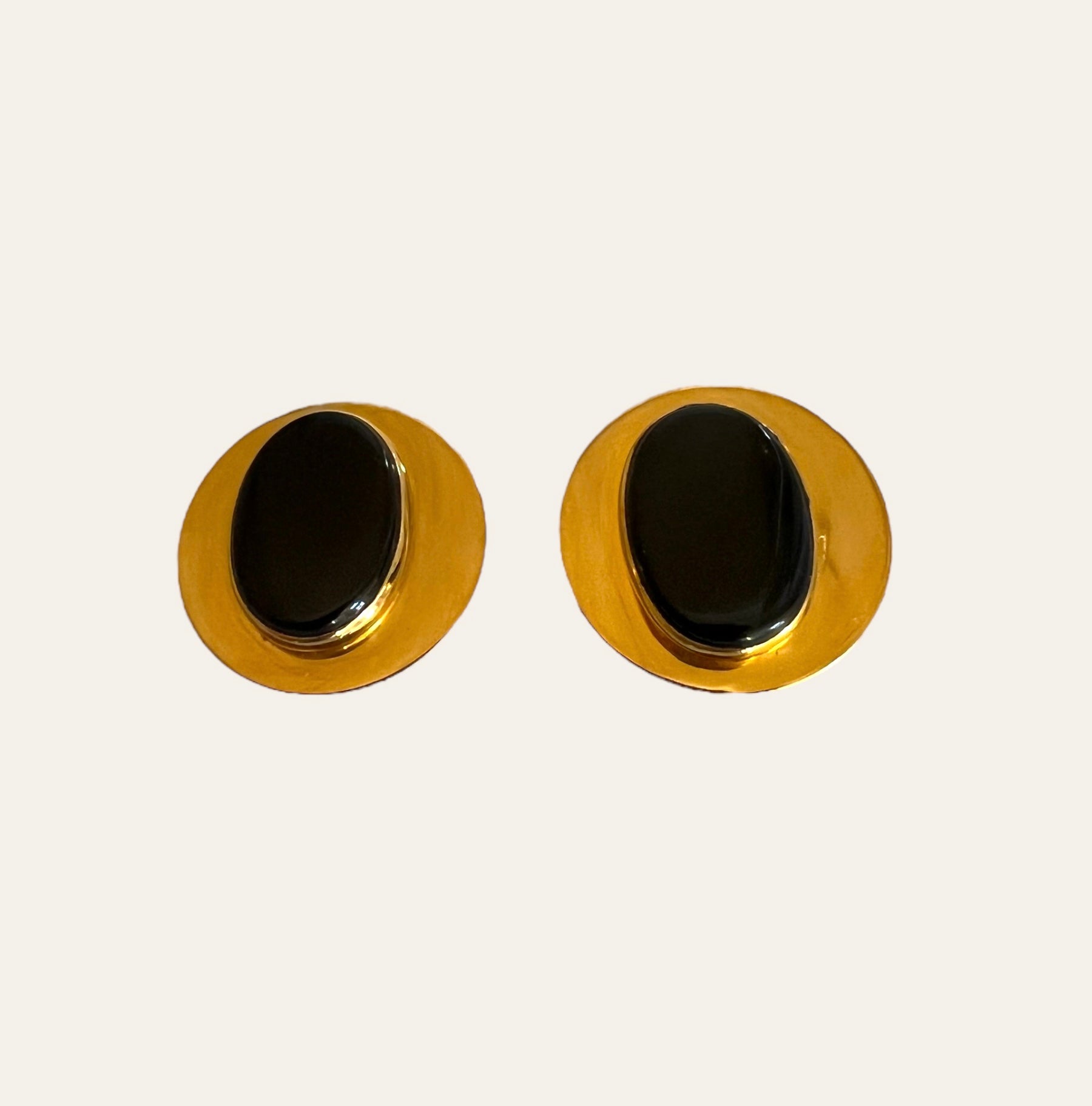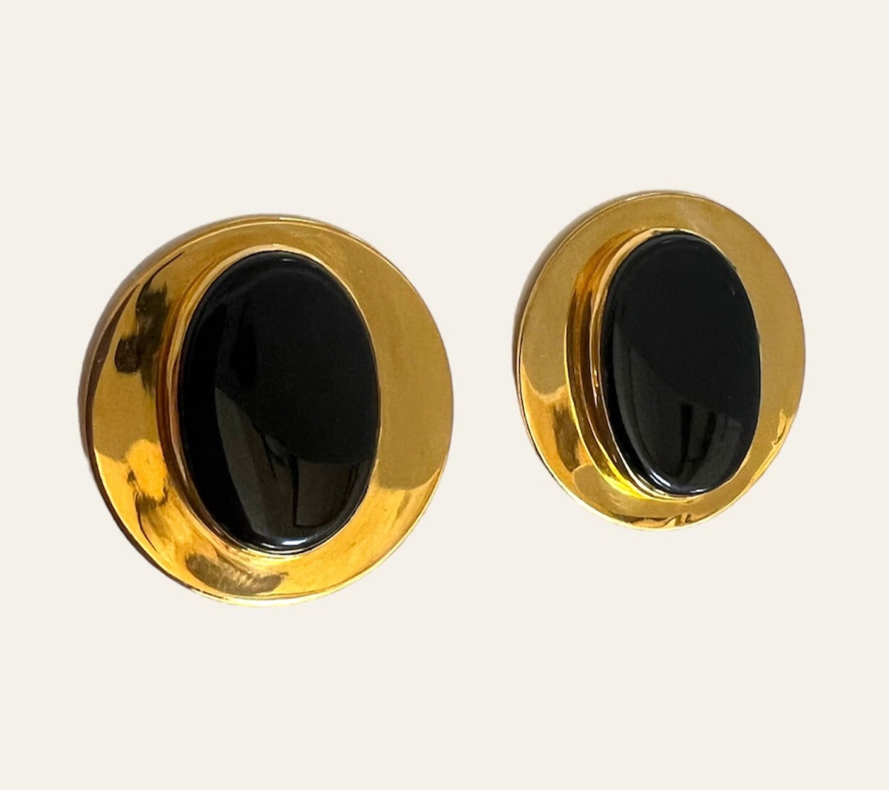 Gold Plate TULLA BOOTH With Black Onyx Clip On Earrings
