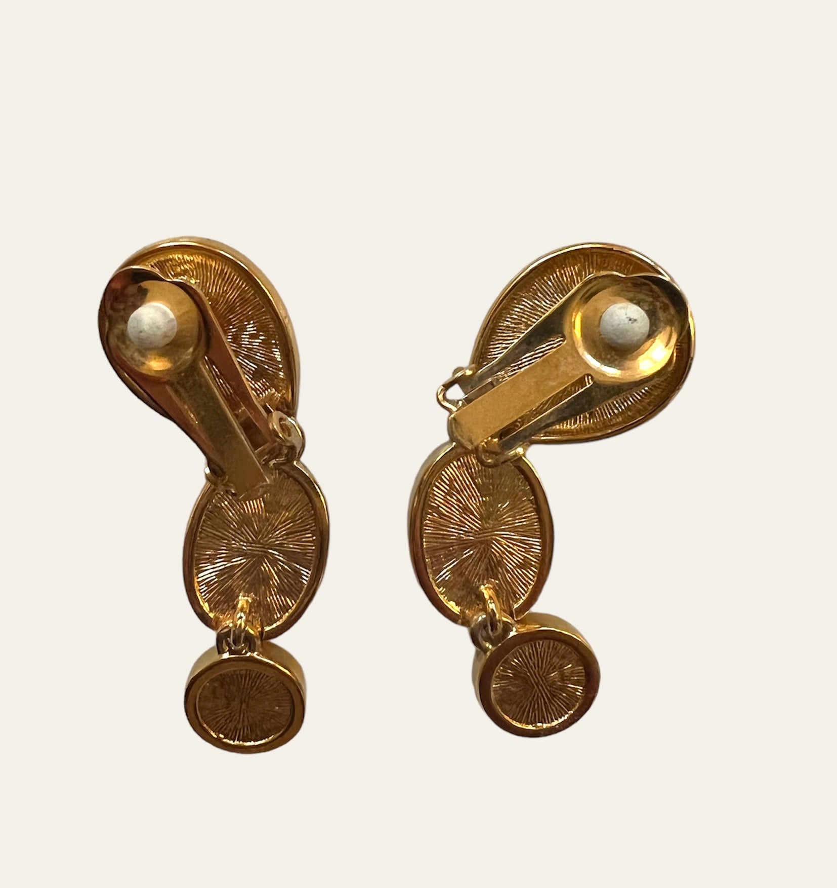 Gold Tone Black Clip On Drop Earrings with Faux Pearls