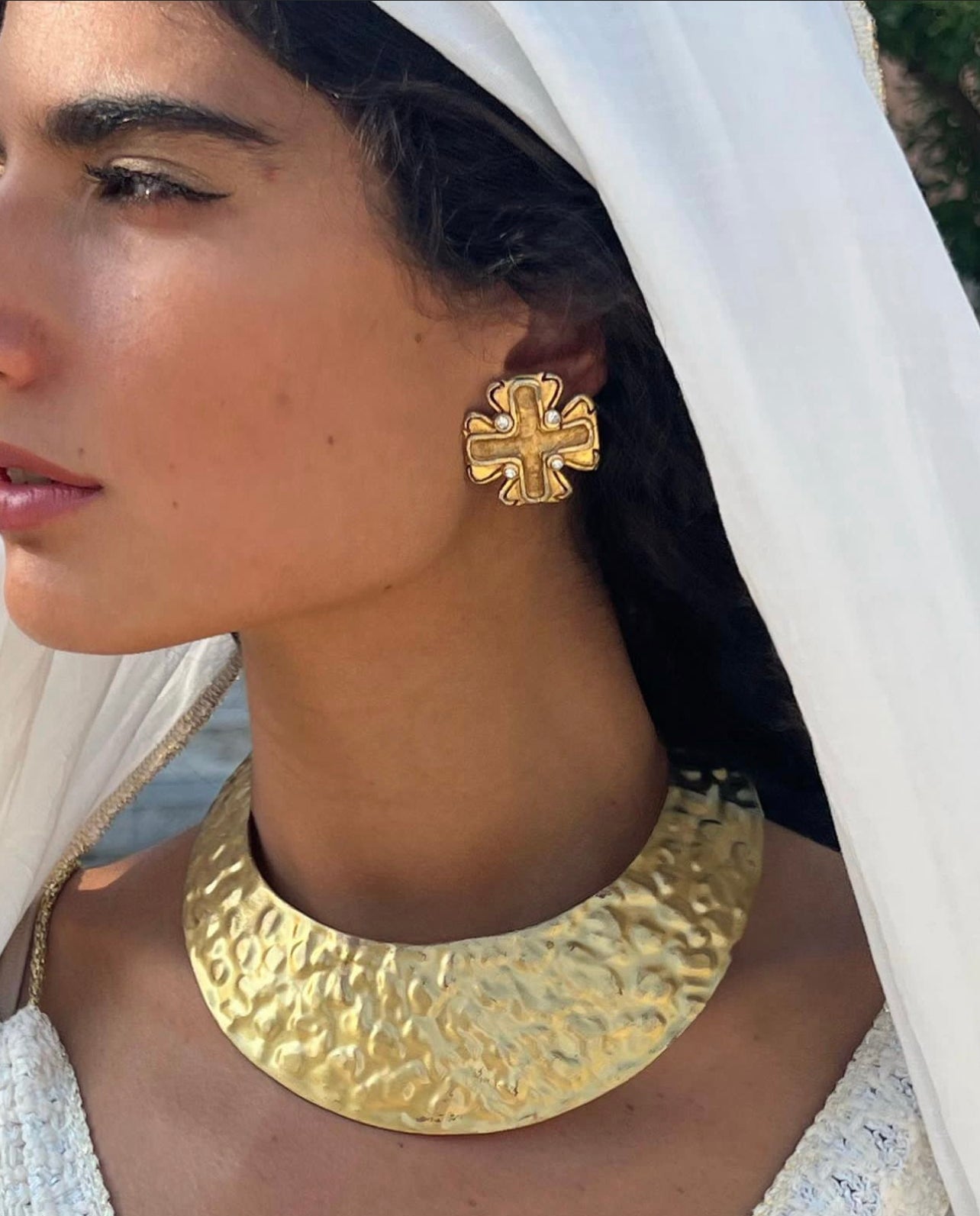 Statement Hammered Brass Collar