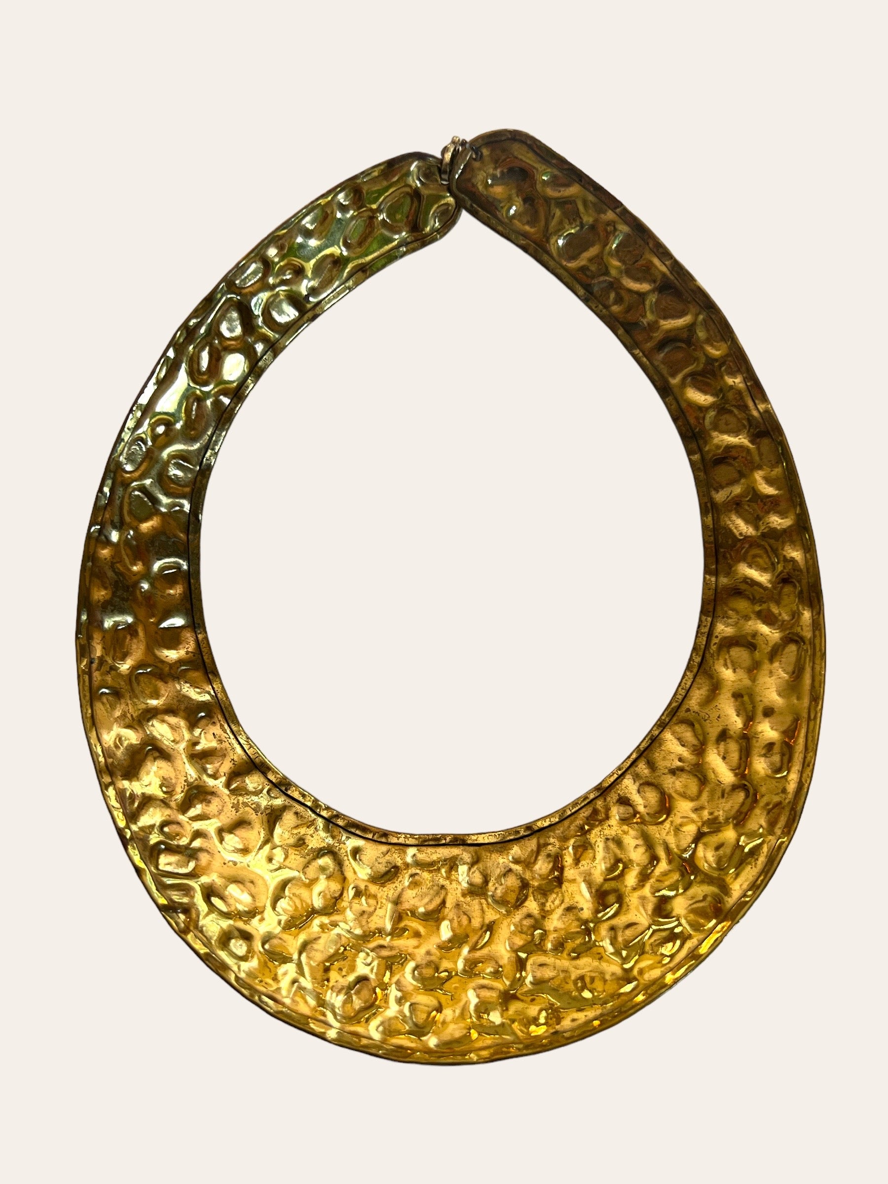 Fabulous unsigned vintage gold tone hammered brass collar choker.