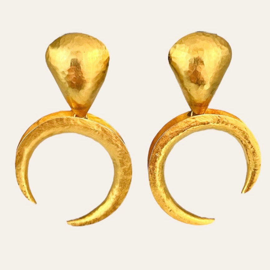 Massive Hammered Gold Tone Drop Pierced Earrings