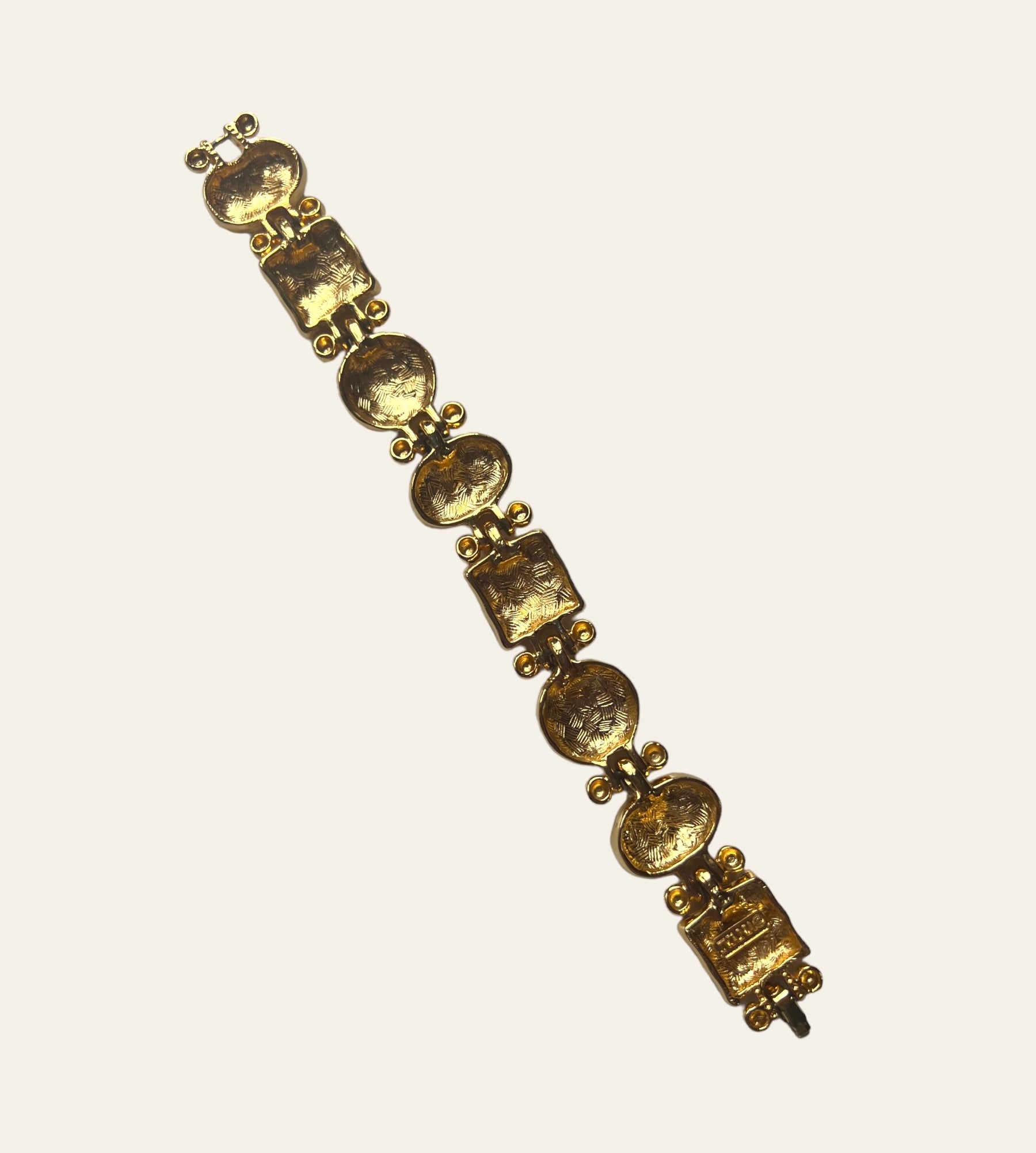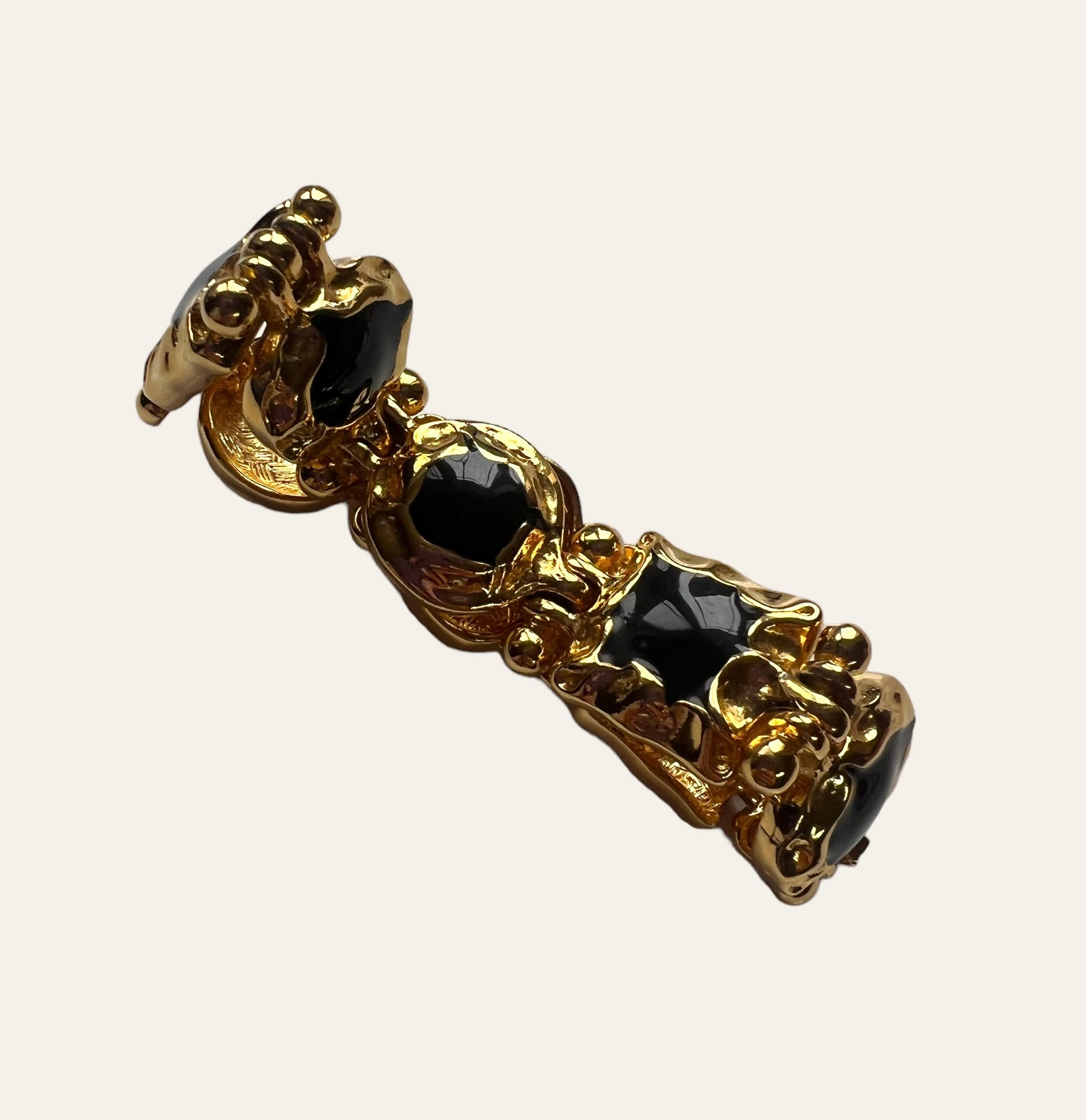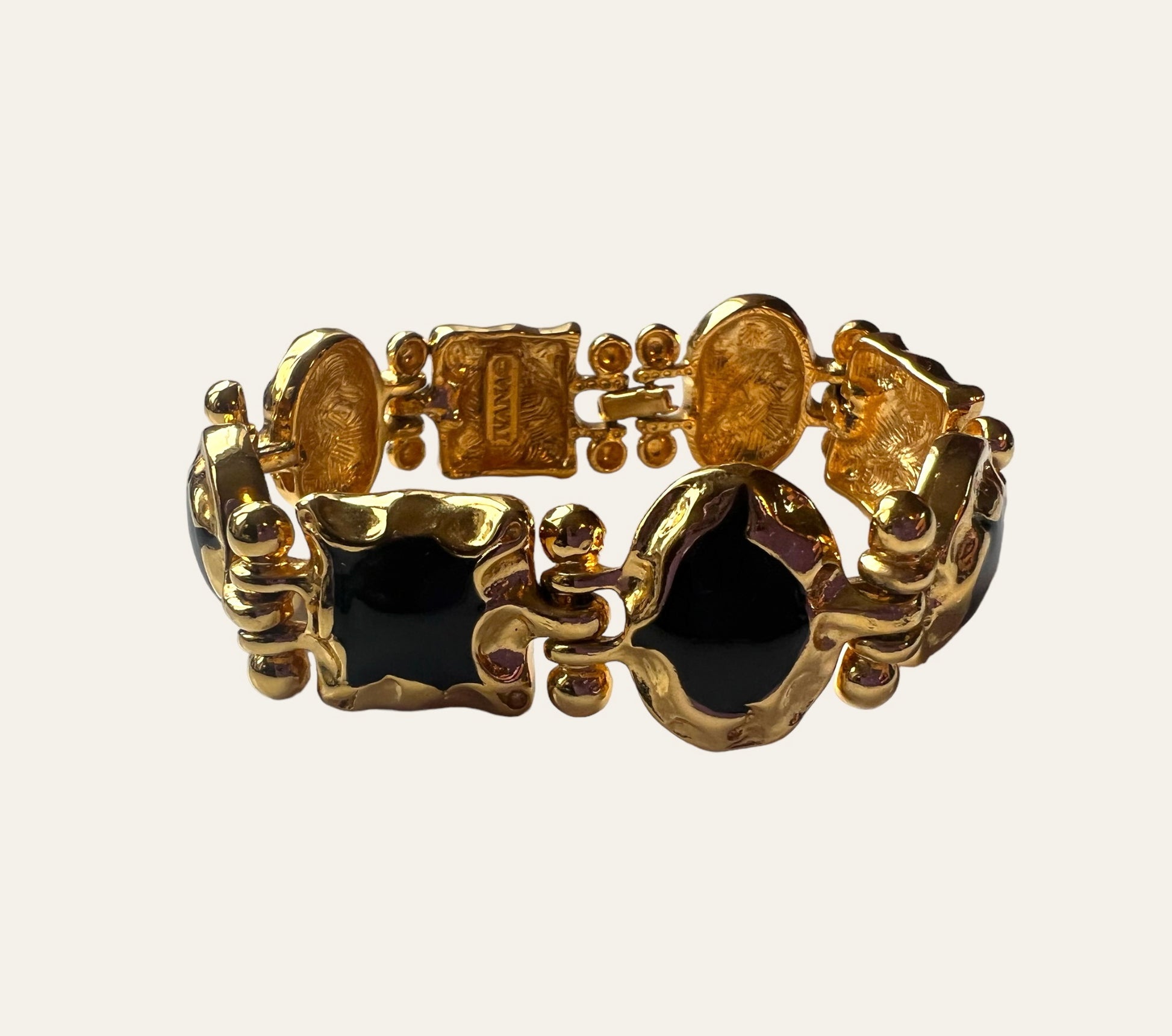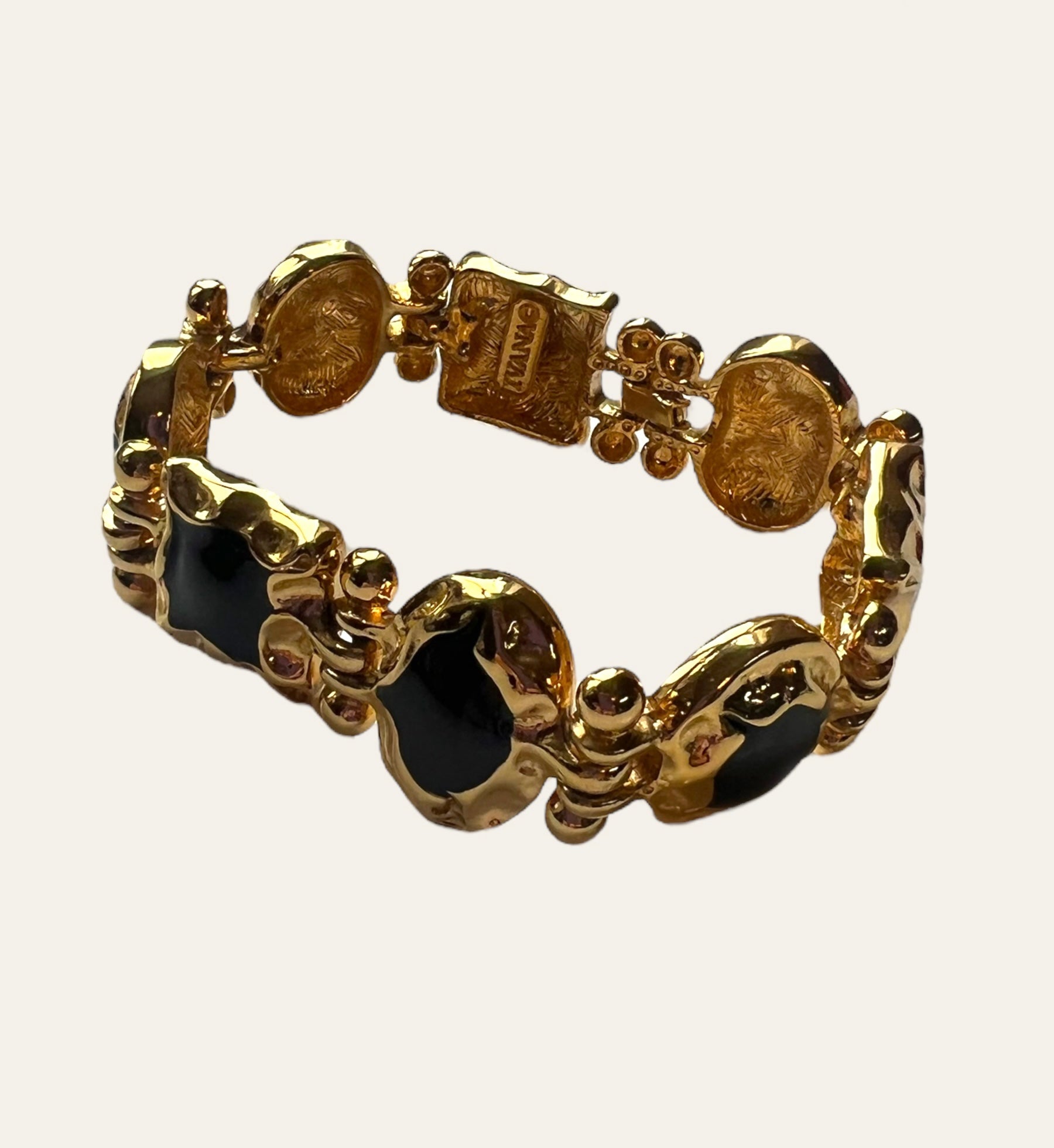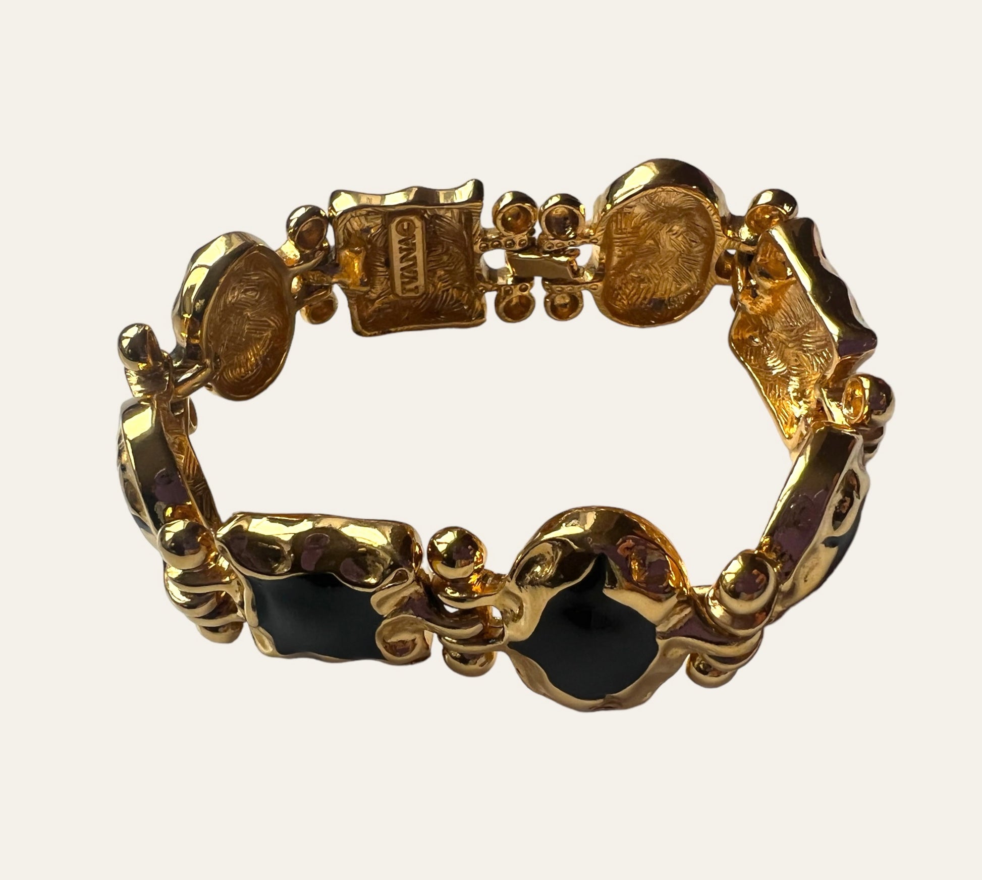 Signed Ivana black onyx glass oval and square link bracelet with a shiny gold tone base. So beautiful and classy. It is a timeless piece.
