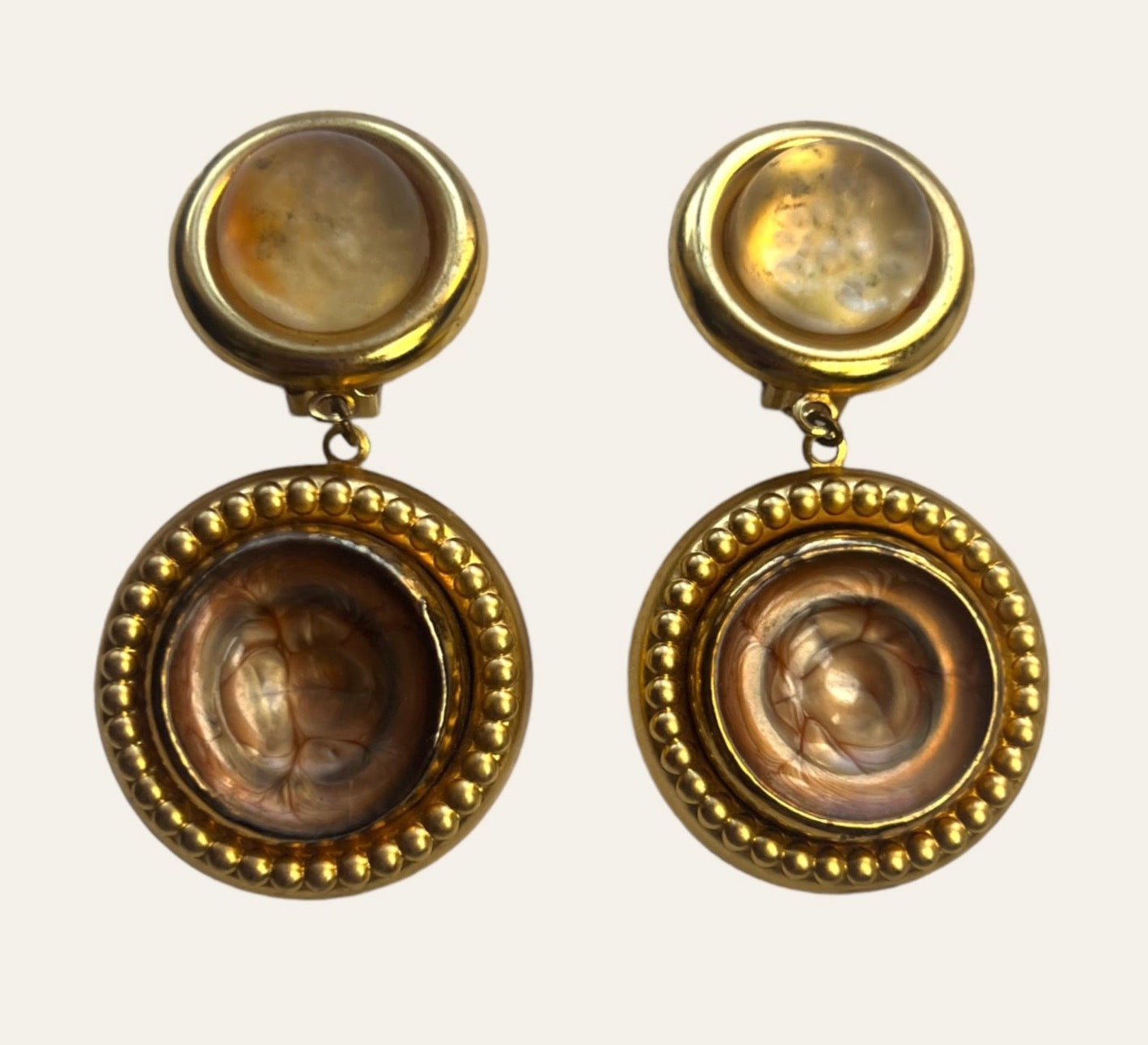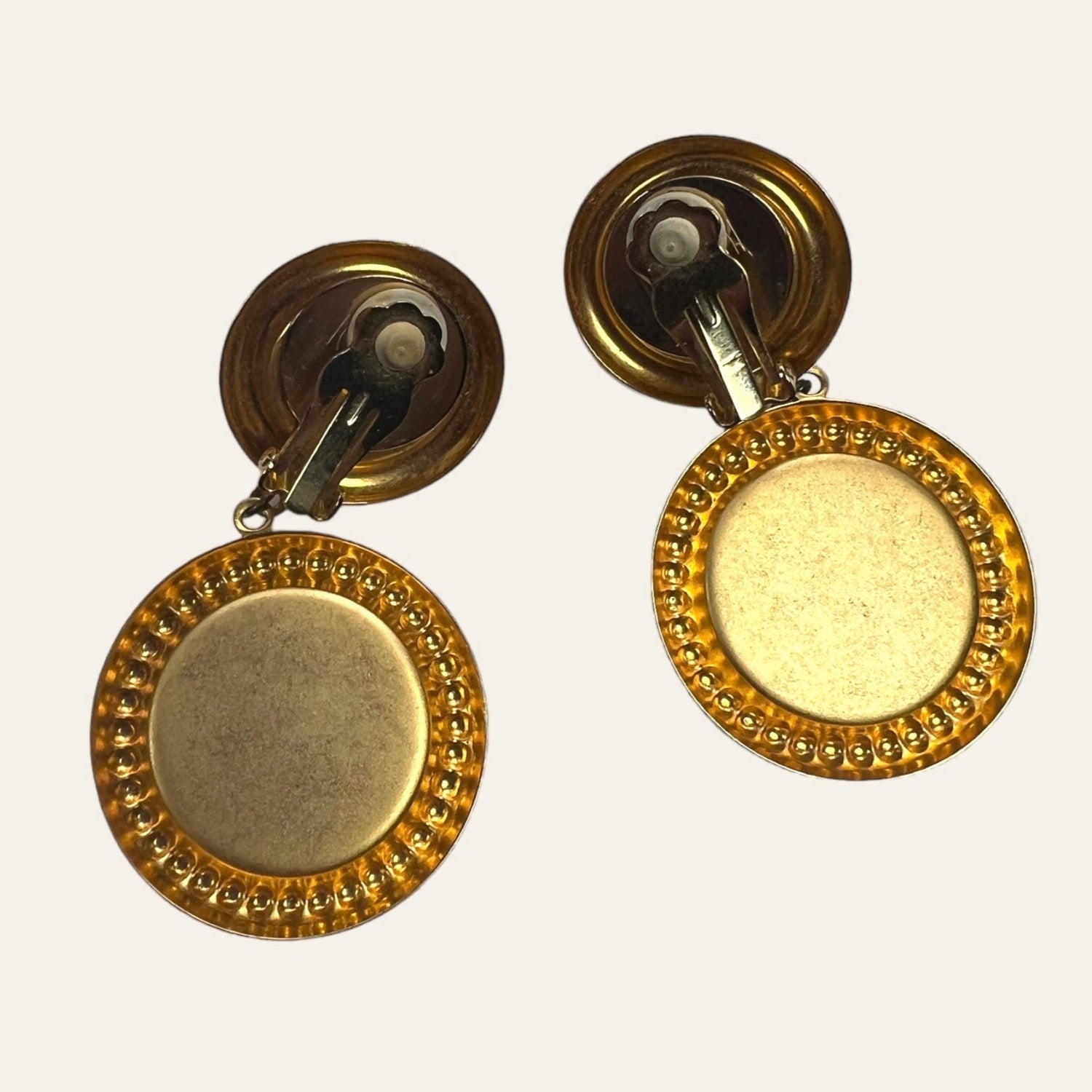 Gorgeous rich gold tone statement couture style clip on earrings. Pictures are part of the description. Those earrings are loud, classy and so worth the stare.