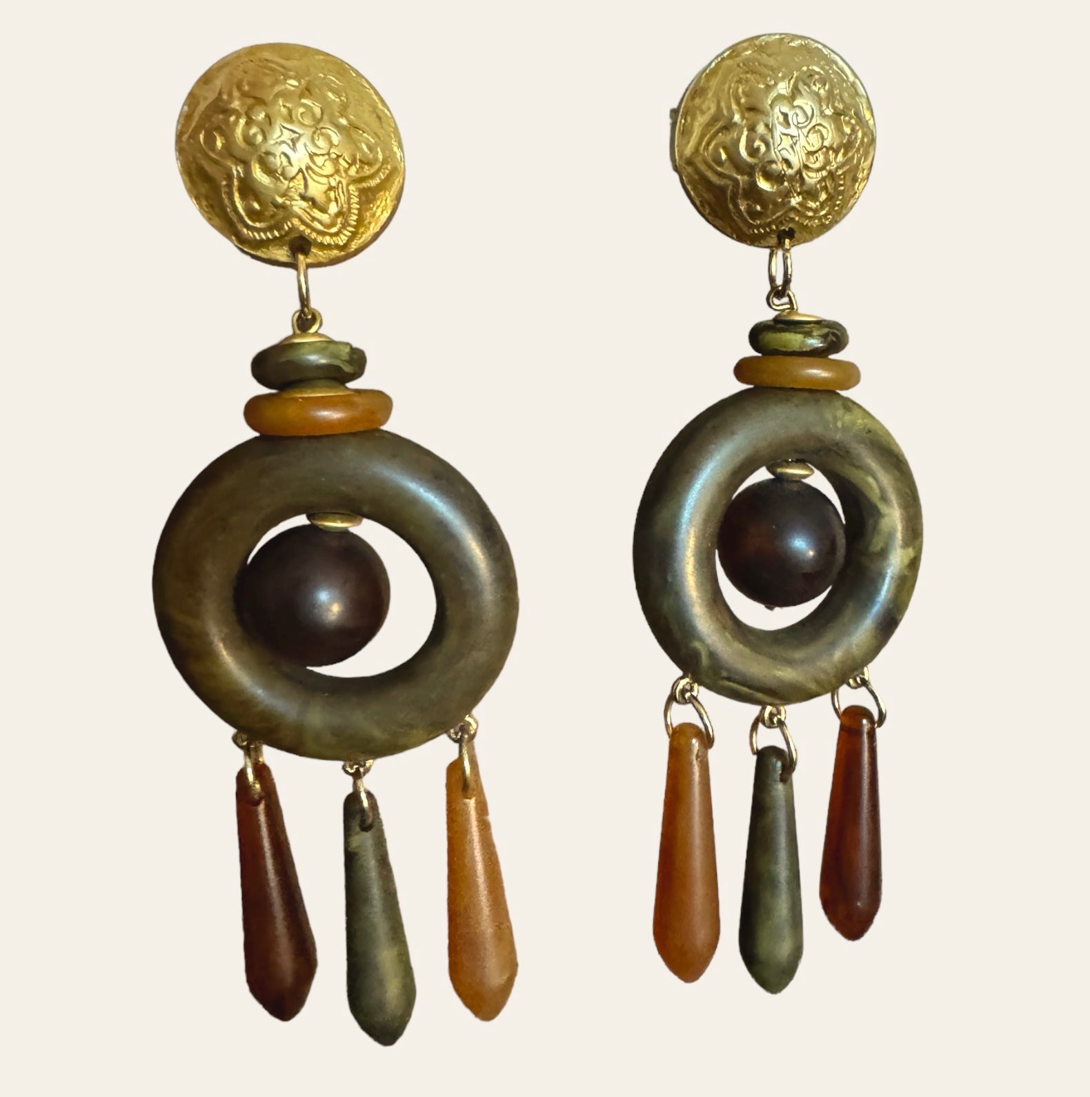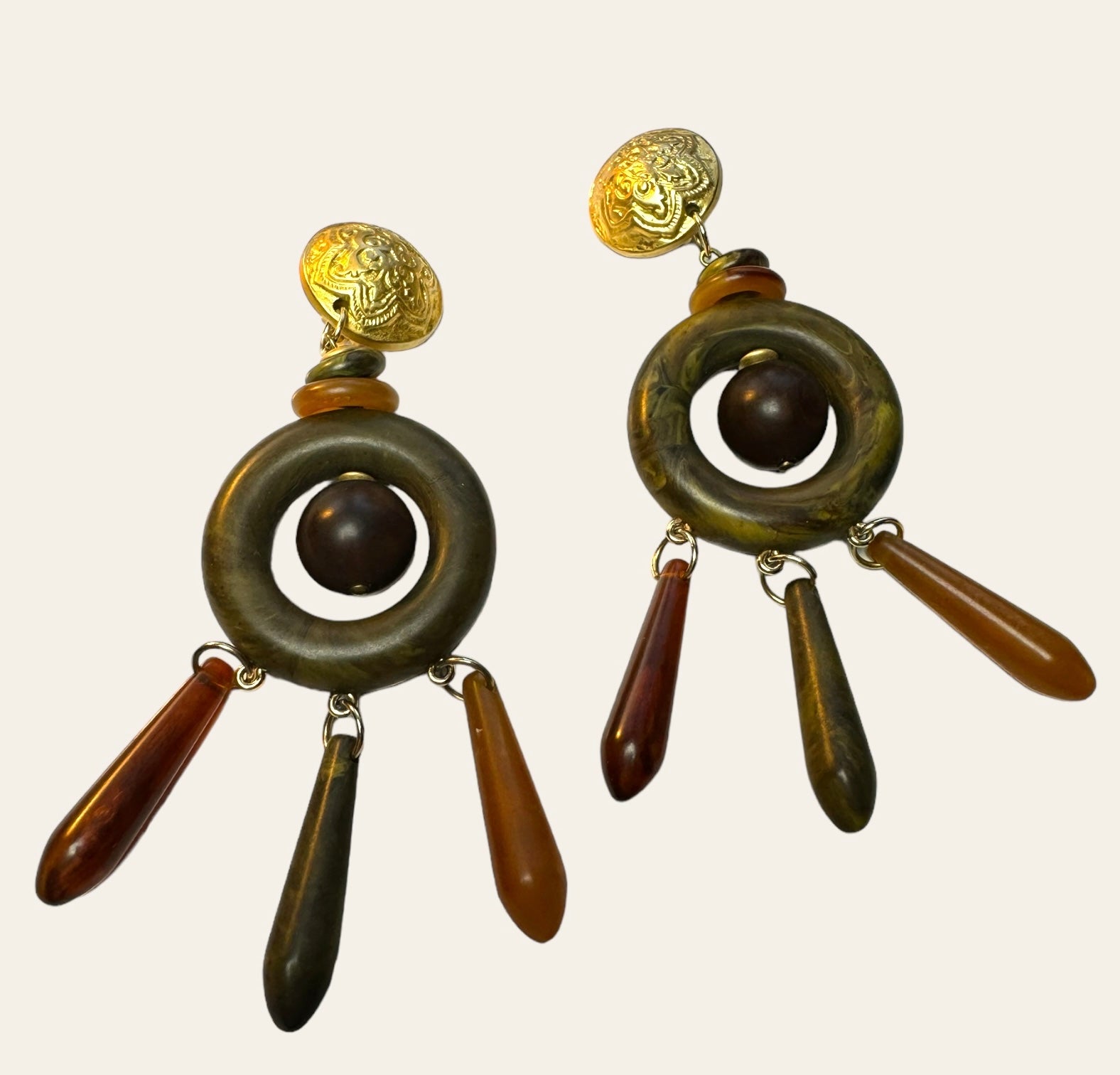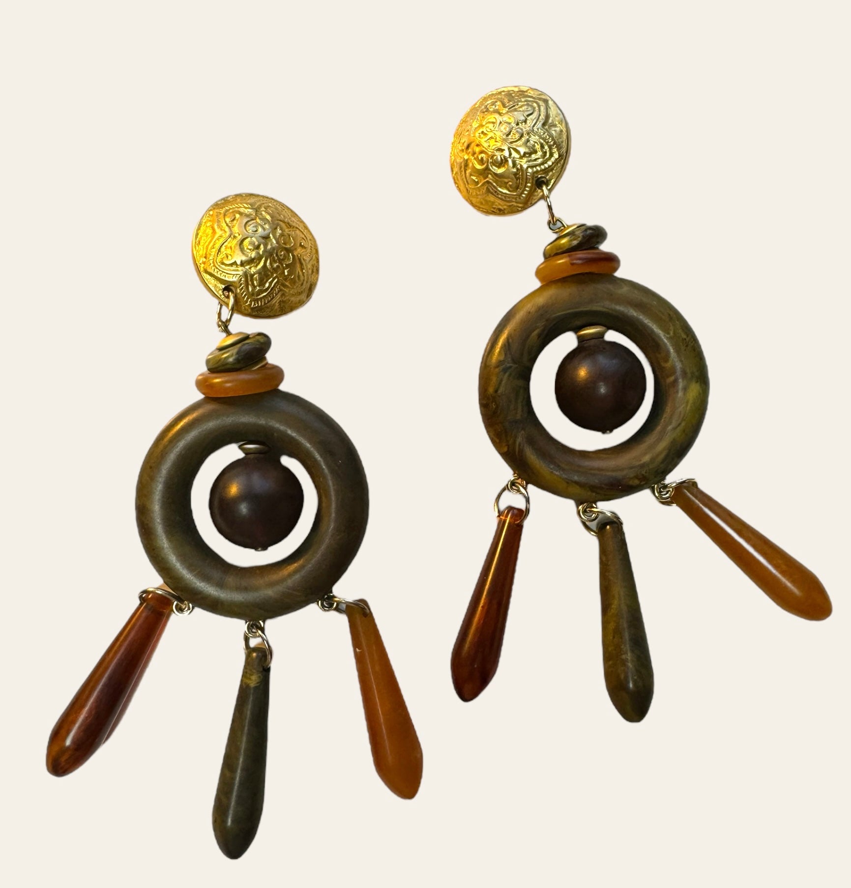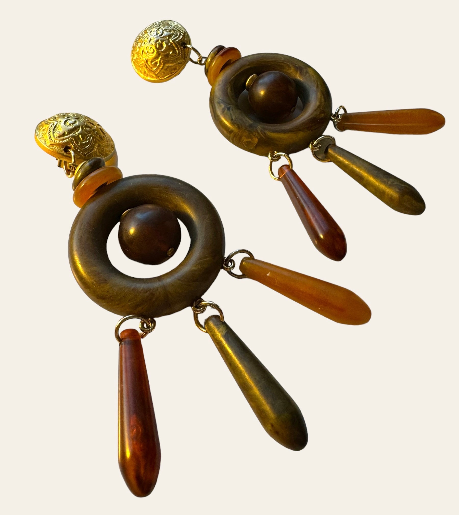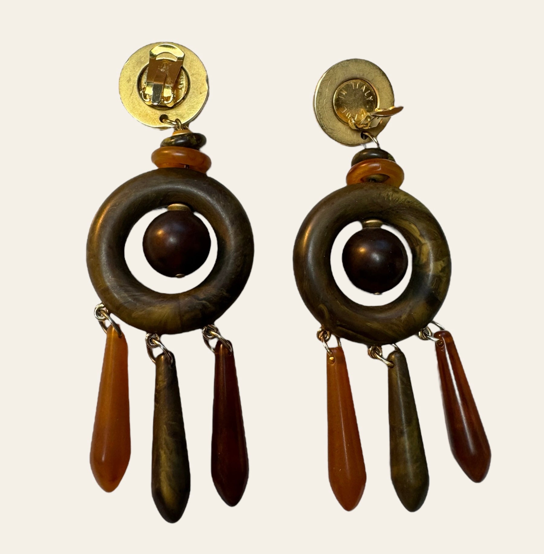 Made In Italy Massive Bakelite Drop Clip On Earrings