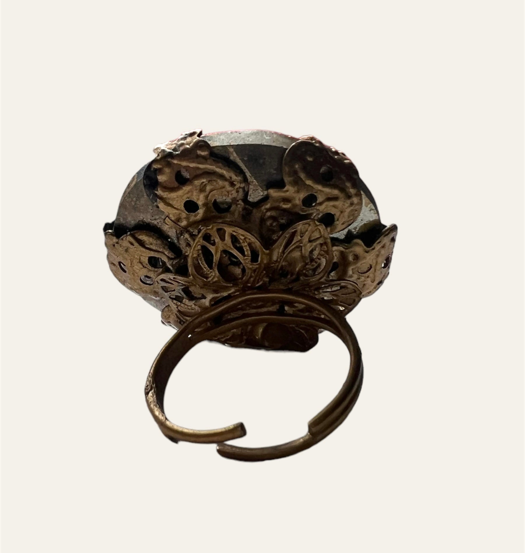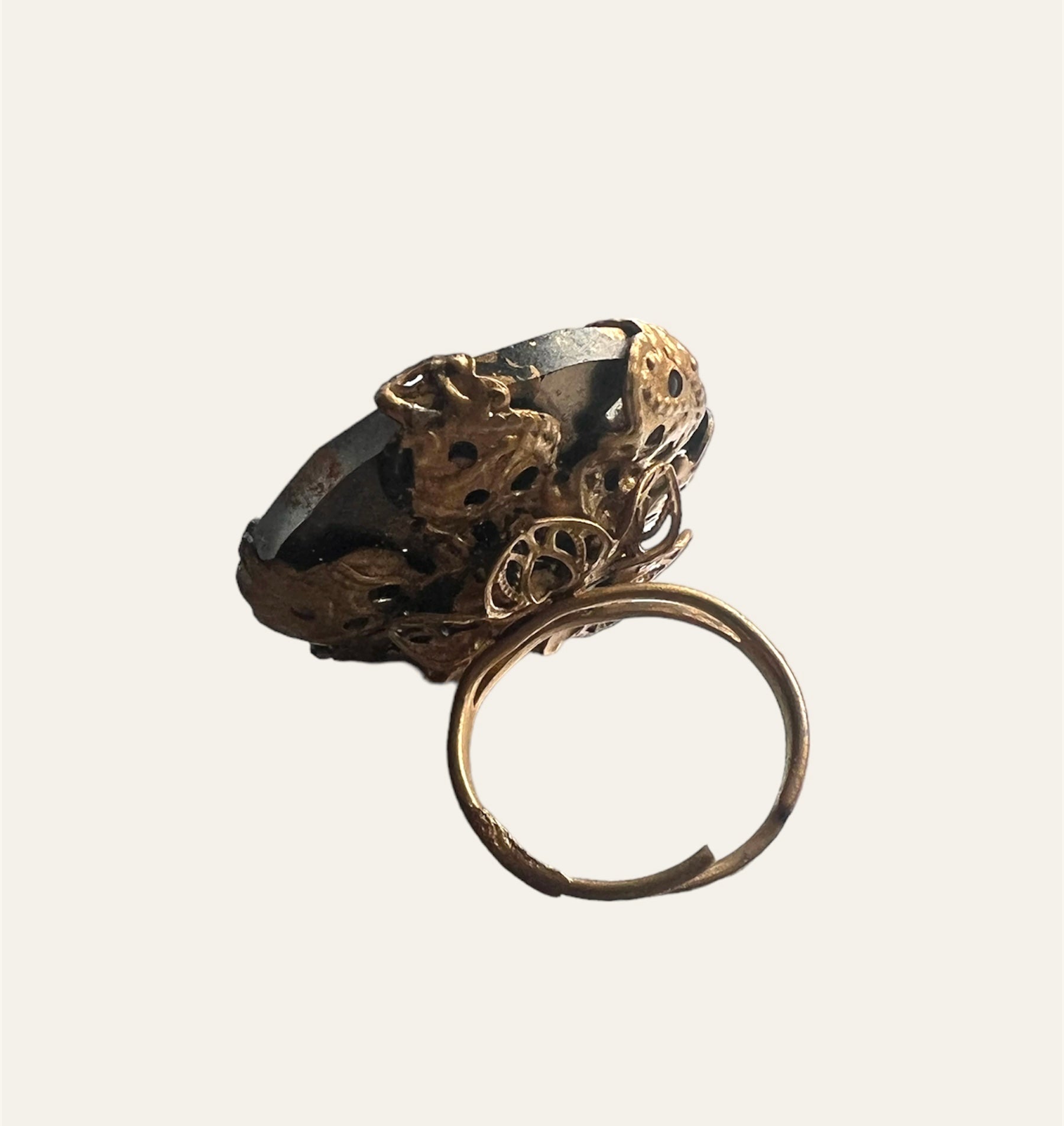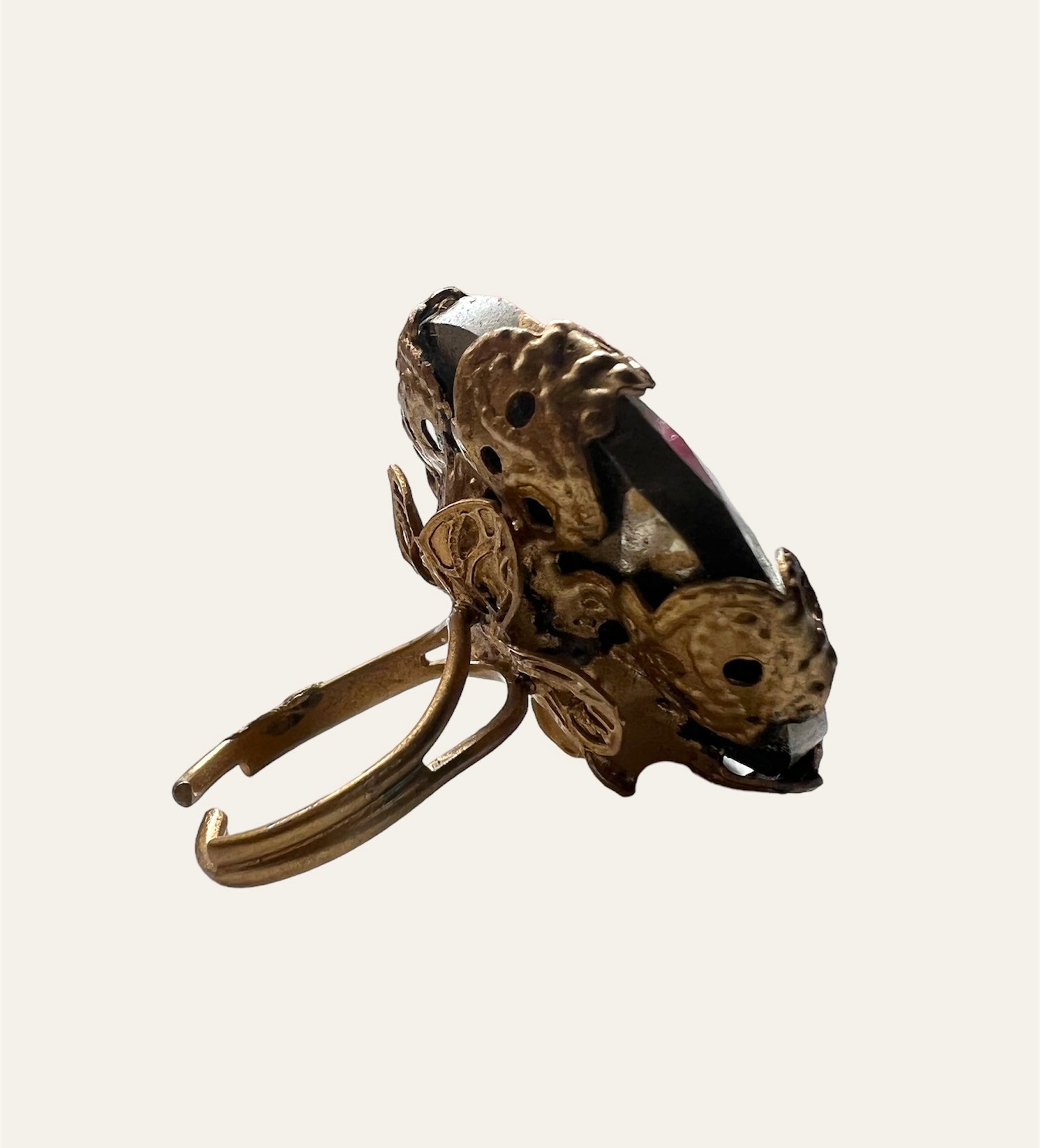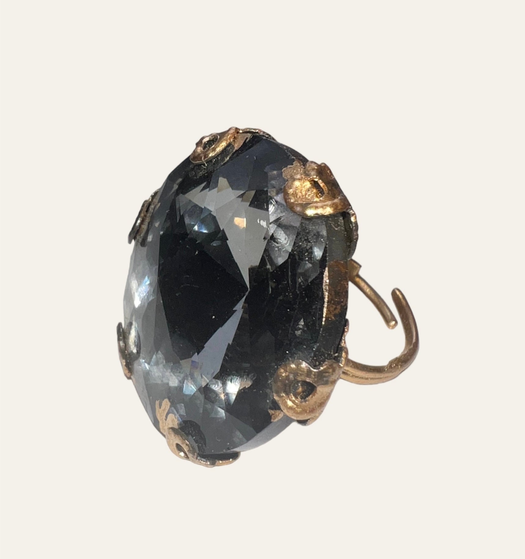 In Good vintage condition. The Rhinestone is really clean. The backwork is amazing and gold plated by me.
