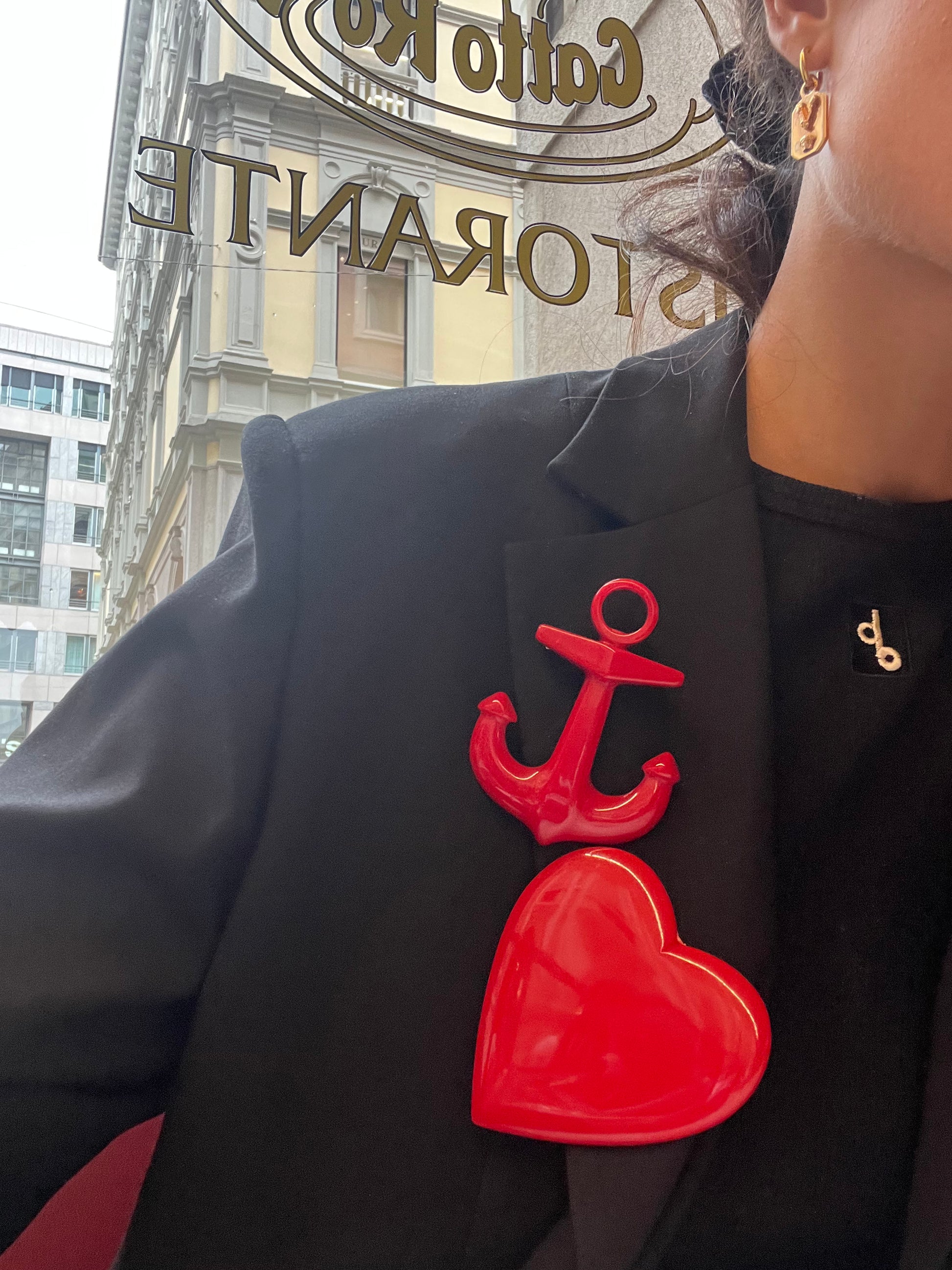 Massive Red Heart & Sea Anchor Brooches