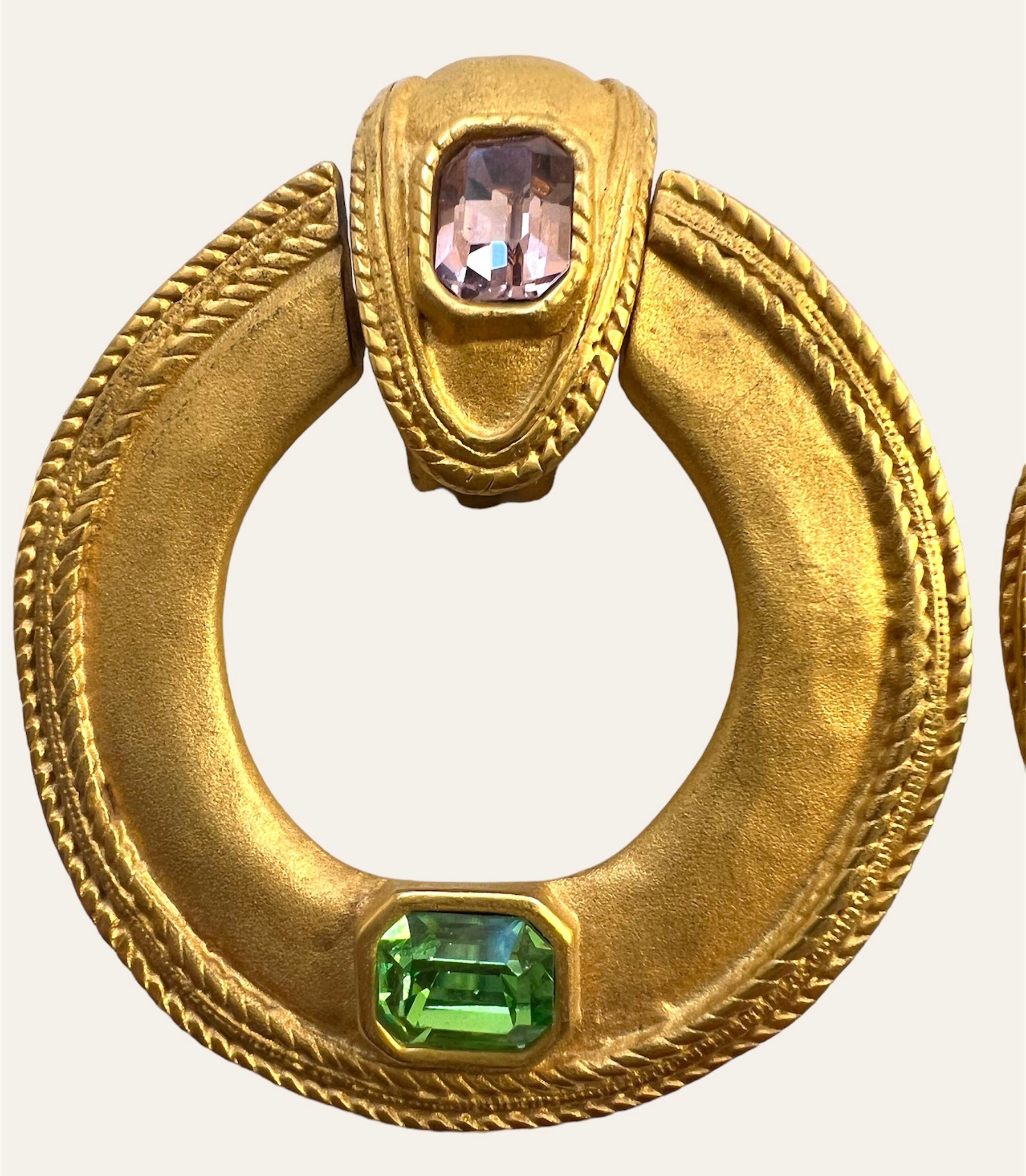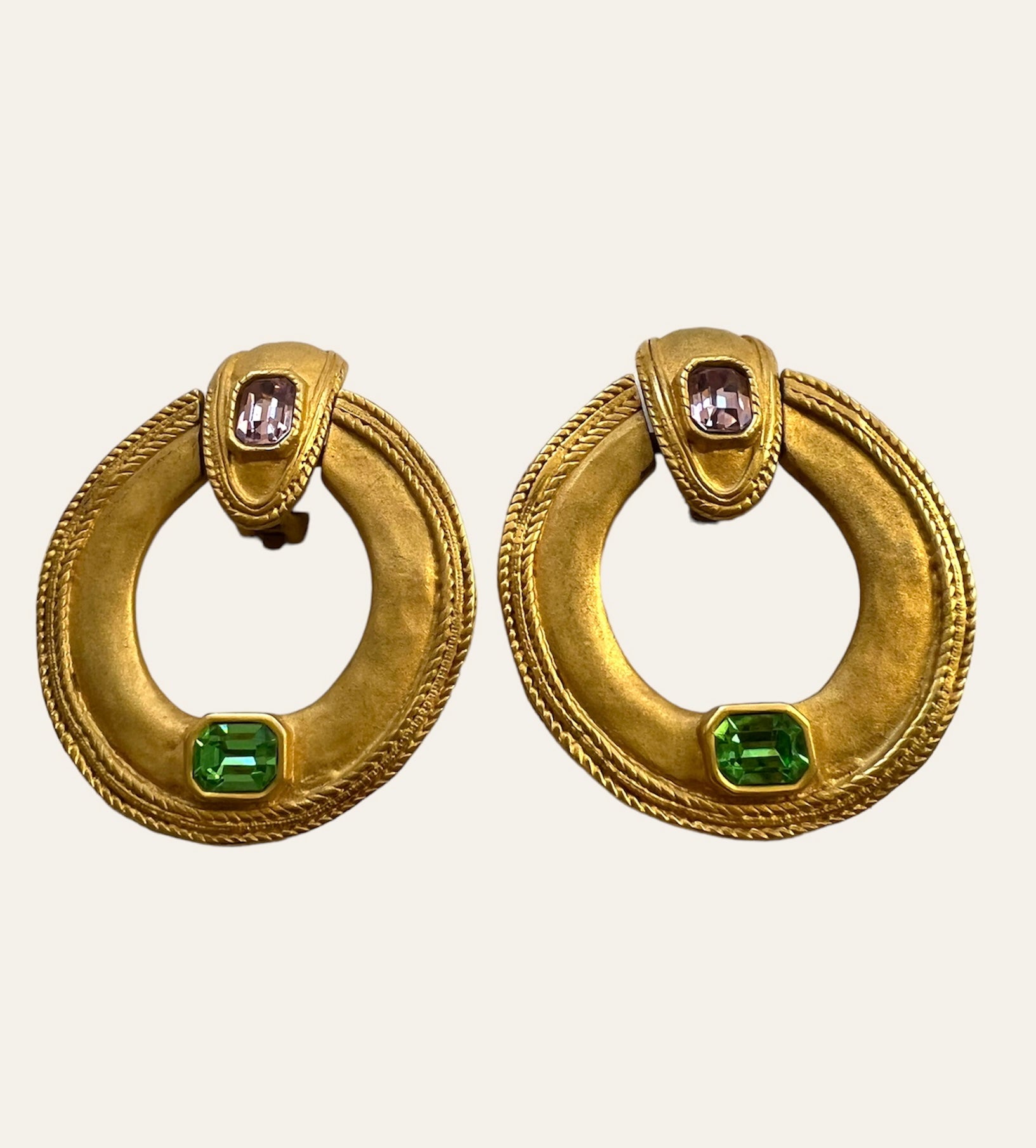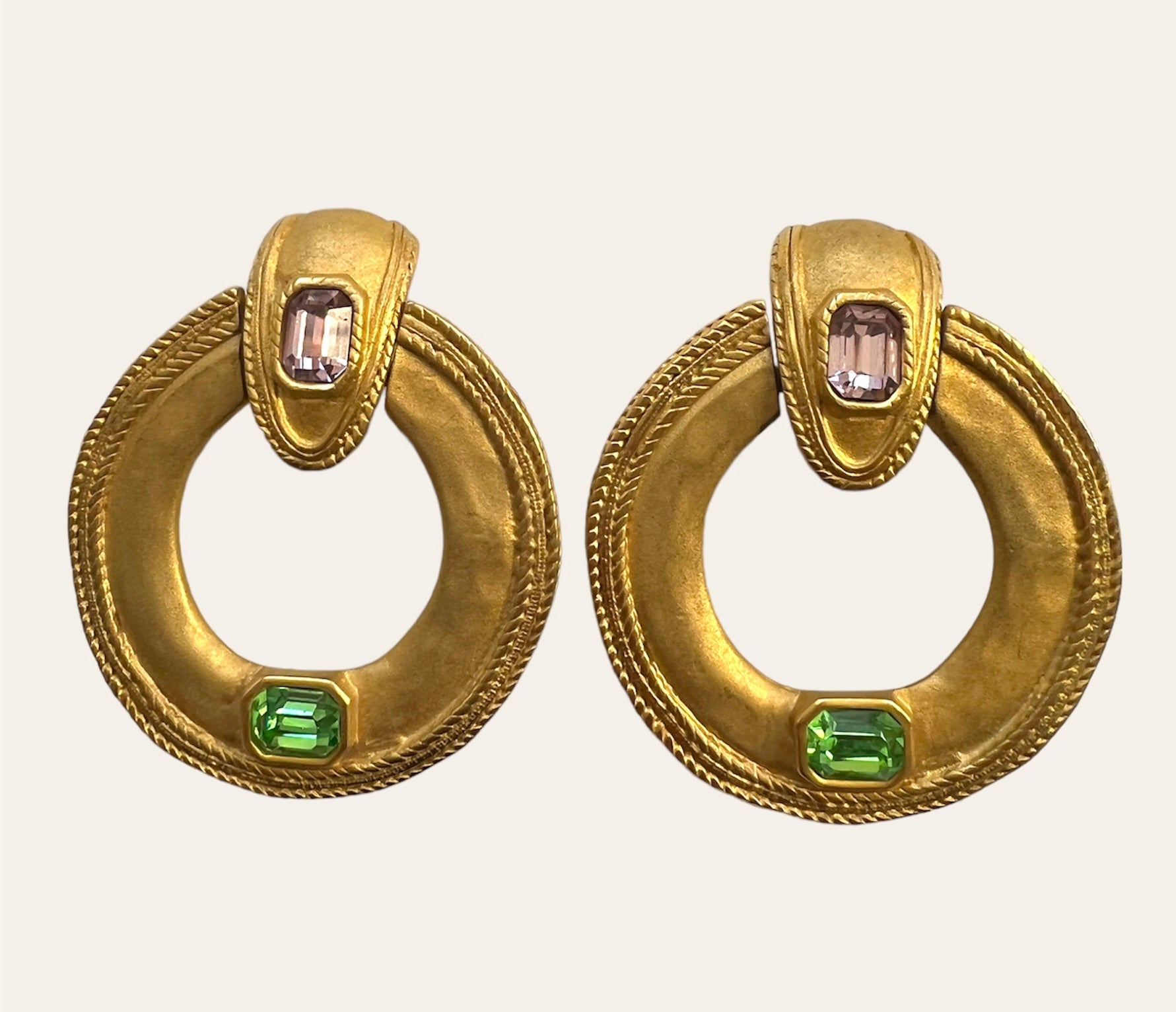 Perfect earrings for the summer. They need a nice tan! Or a nice summer vacation in Greece. They have green and nice cyclamen rectangular rhinestones.