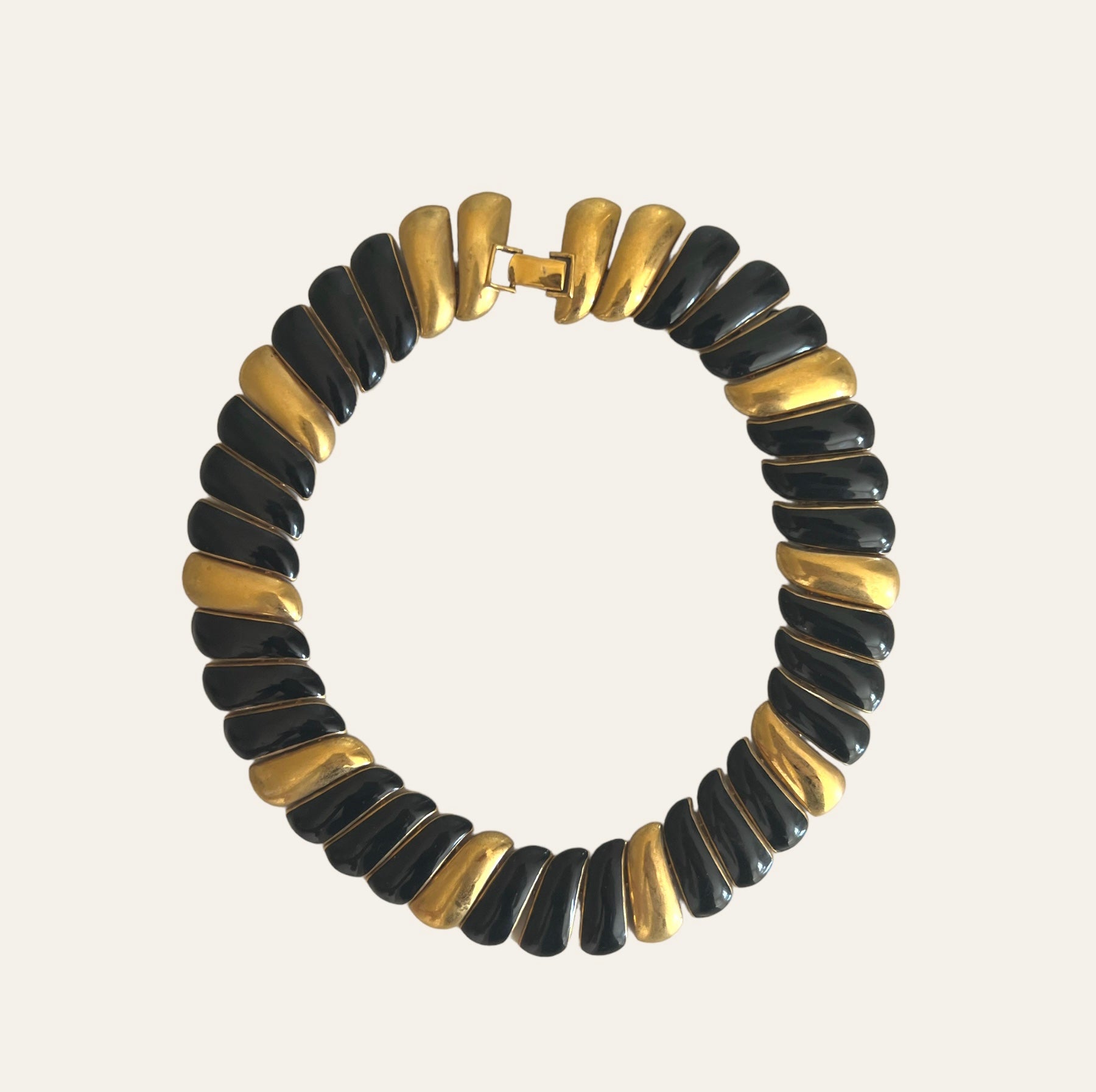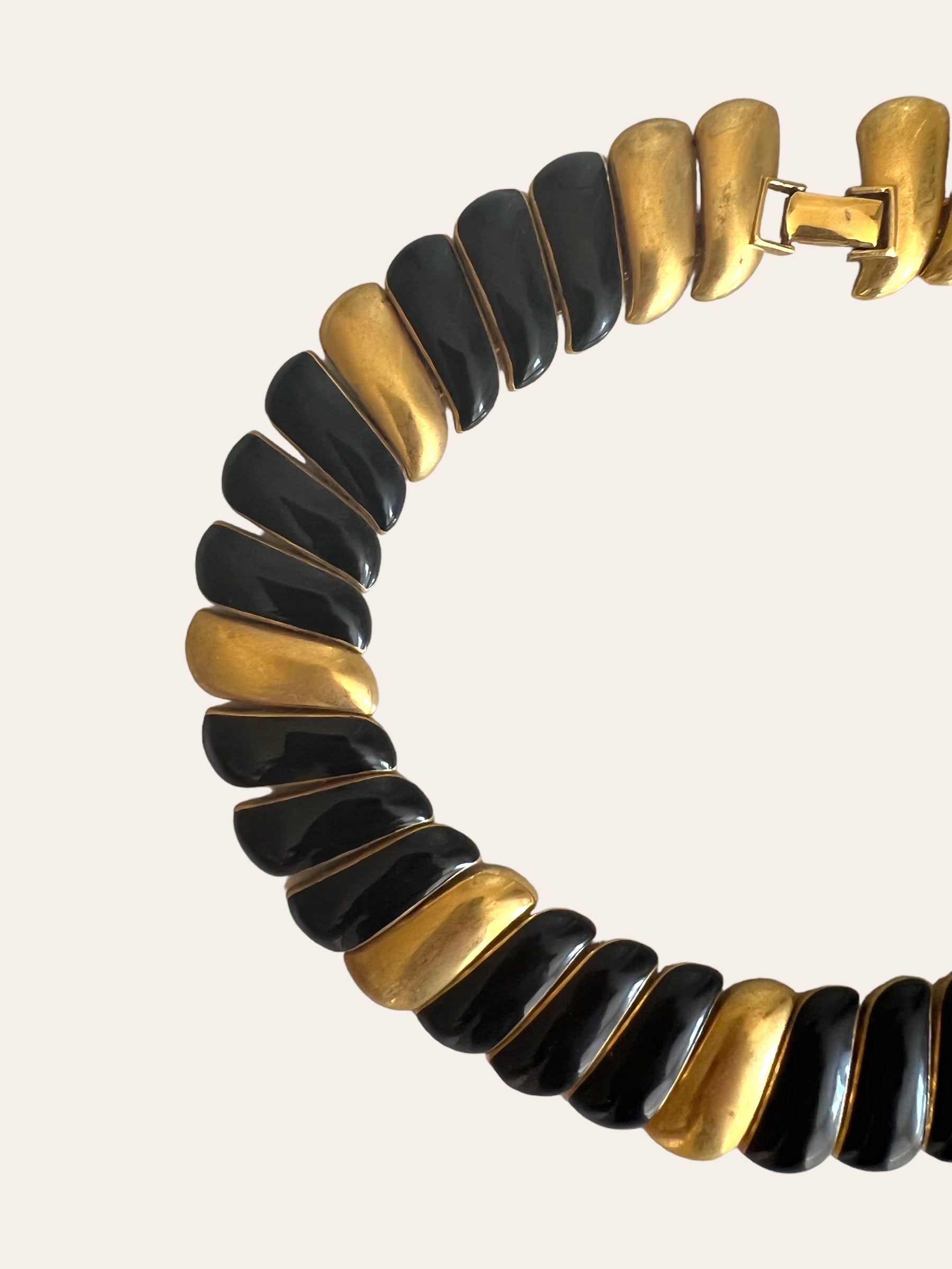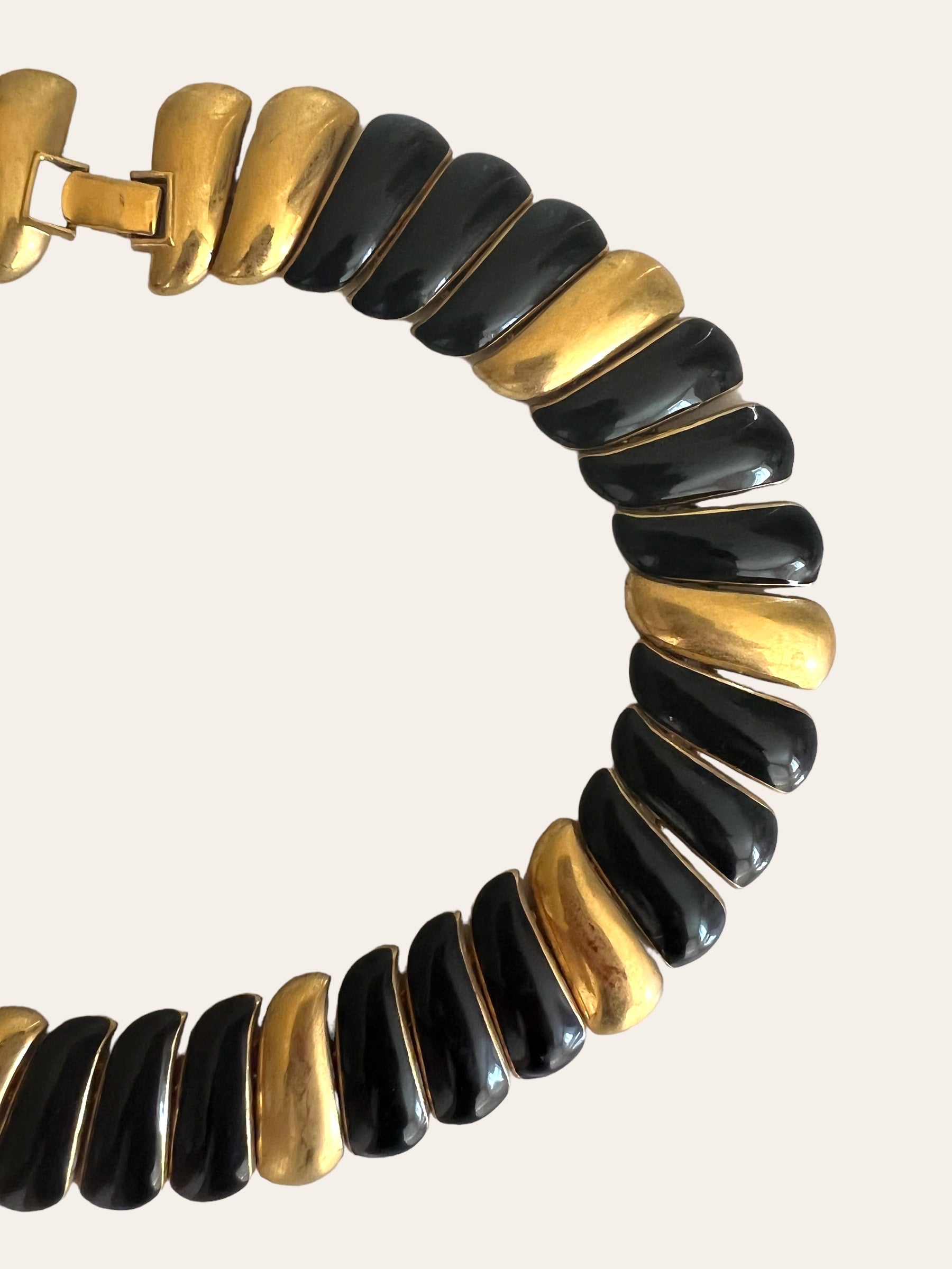Signed gold tone Monet swirl link collar with black enamel. The necklace is a statement piece and is gorgeous.