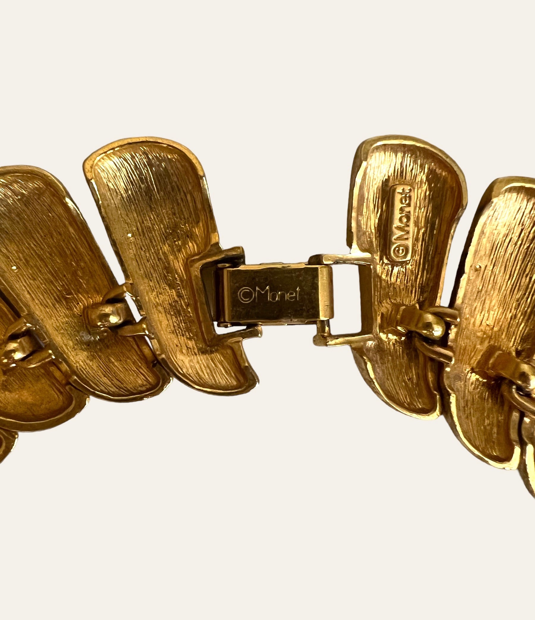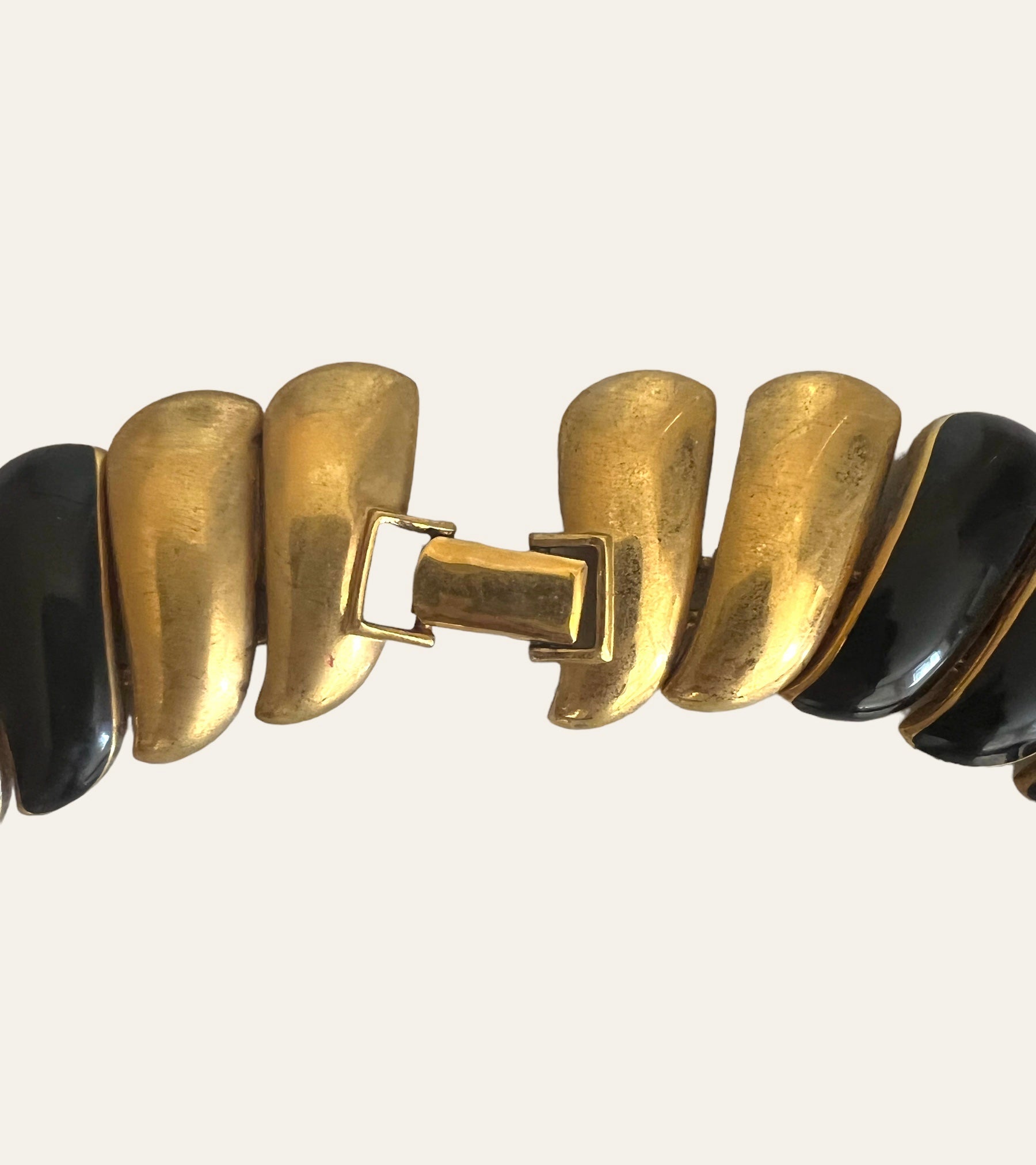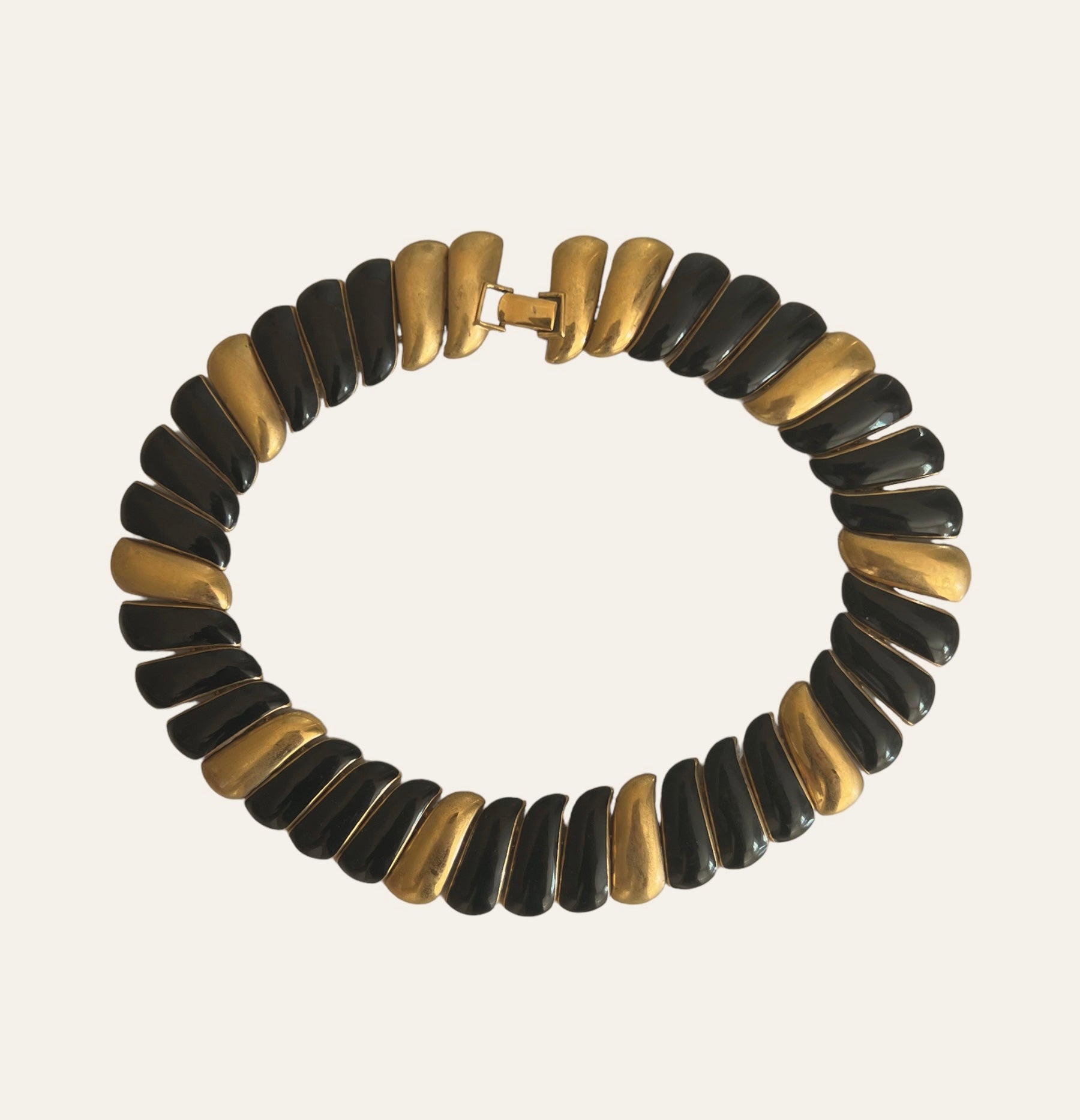 Signed gold tone Monet swirl link collar with black enamel. The necklace is a statement piece and is gorgeous.