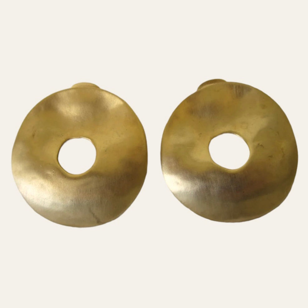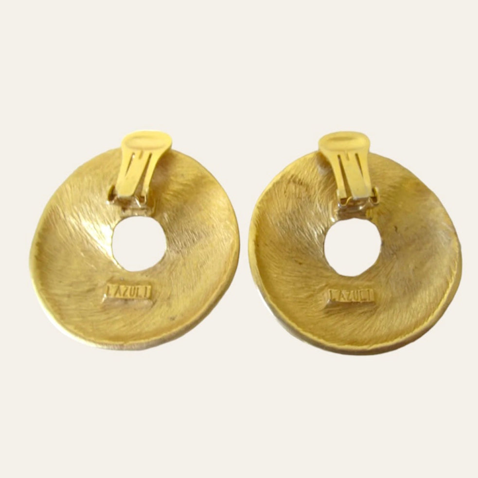 Oversized Lazuli Gold Tone O Clip On Earrings
