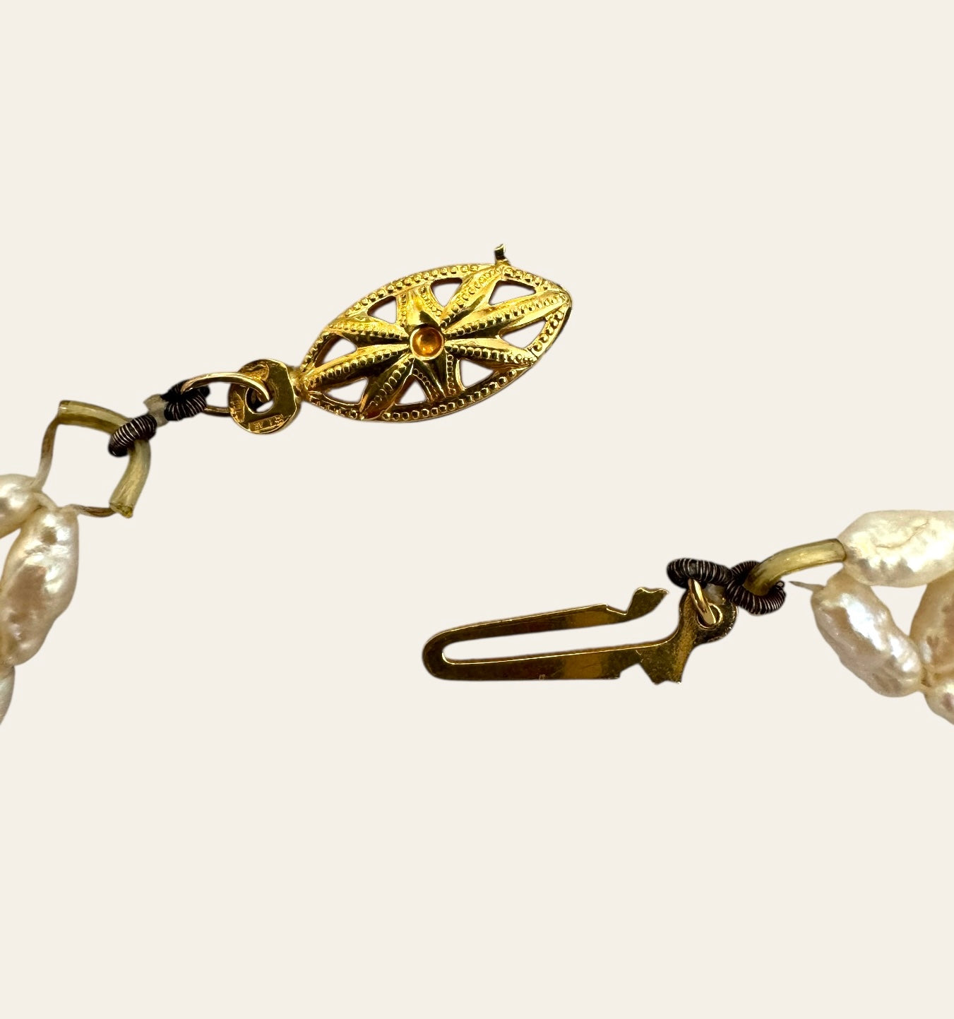 Please note the material value and main d'oeuvre: These are real baroque freshwater pearls, specifically rice-shaped pearls (not resin or faux). Add to that the labor: hand-weaving pearls in open lattice form (without visible knots or thread tension breaks) is an art form. Modern workshops rarely do this level of meticulous handwork anymore, especially in Italy.