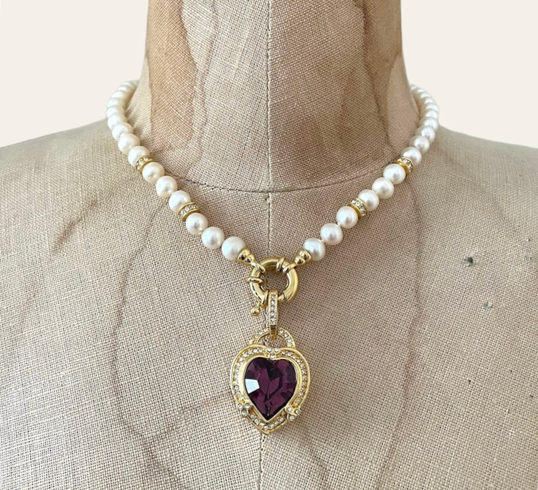 Purple Vintage Heart Pearl Baroque Necklace