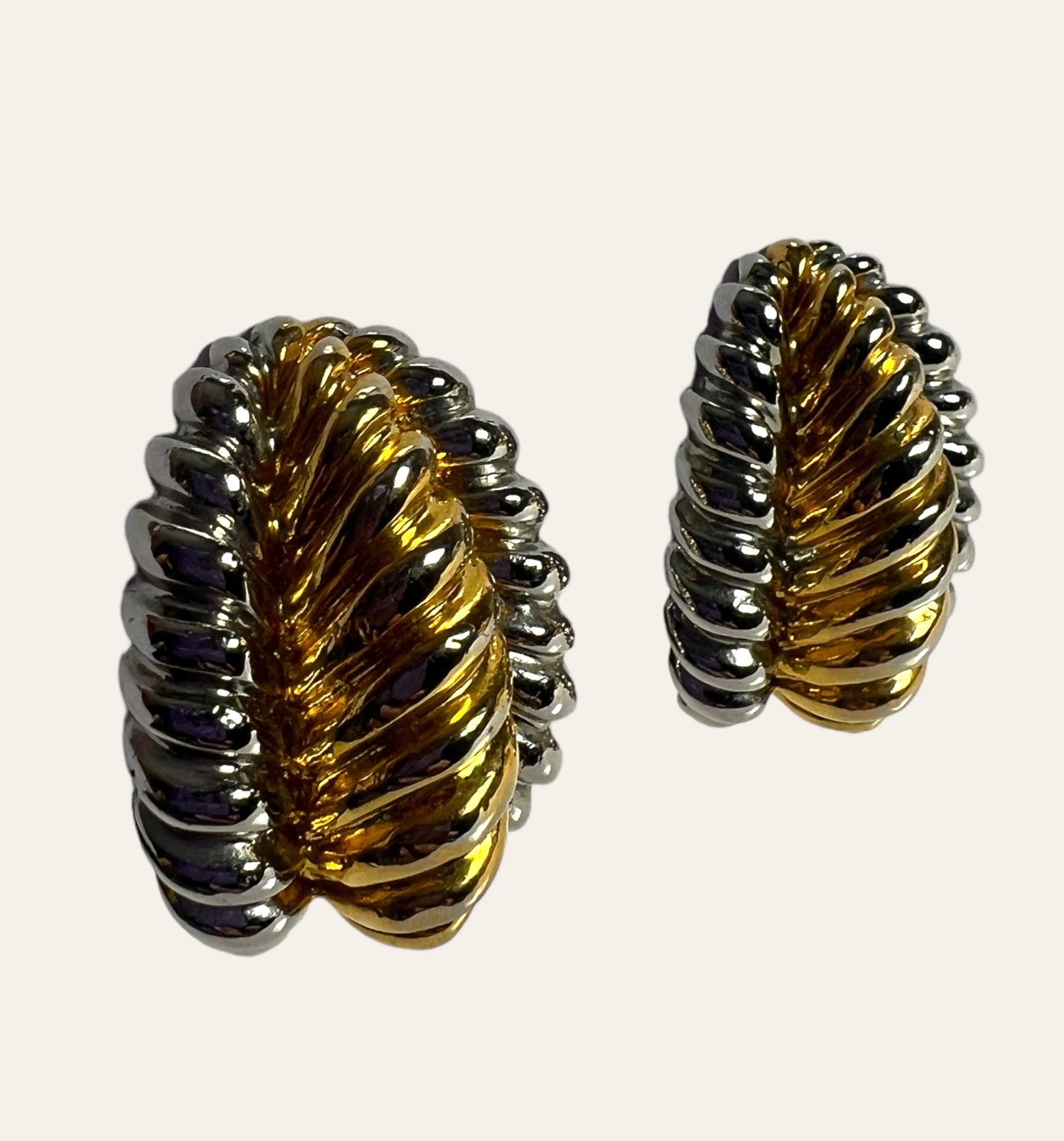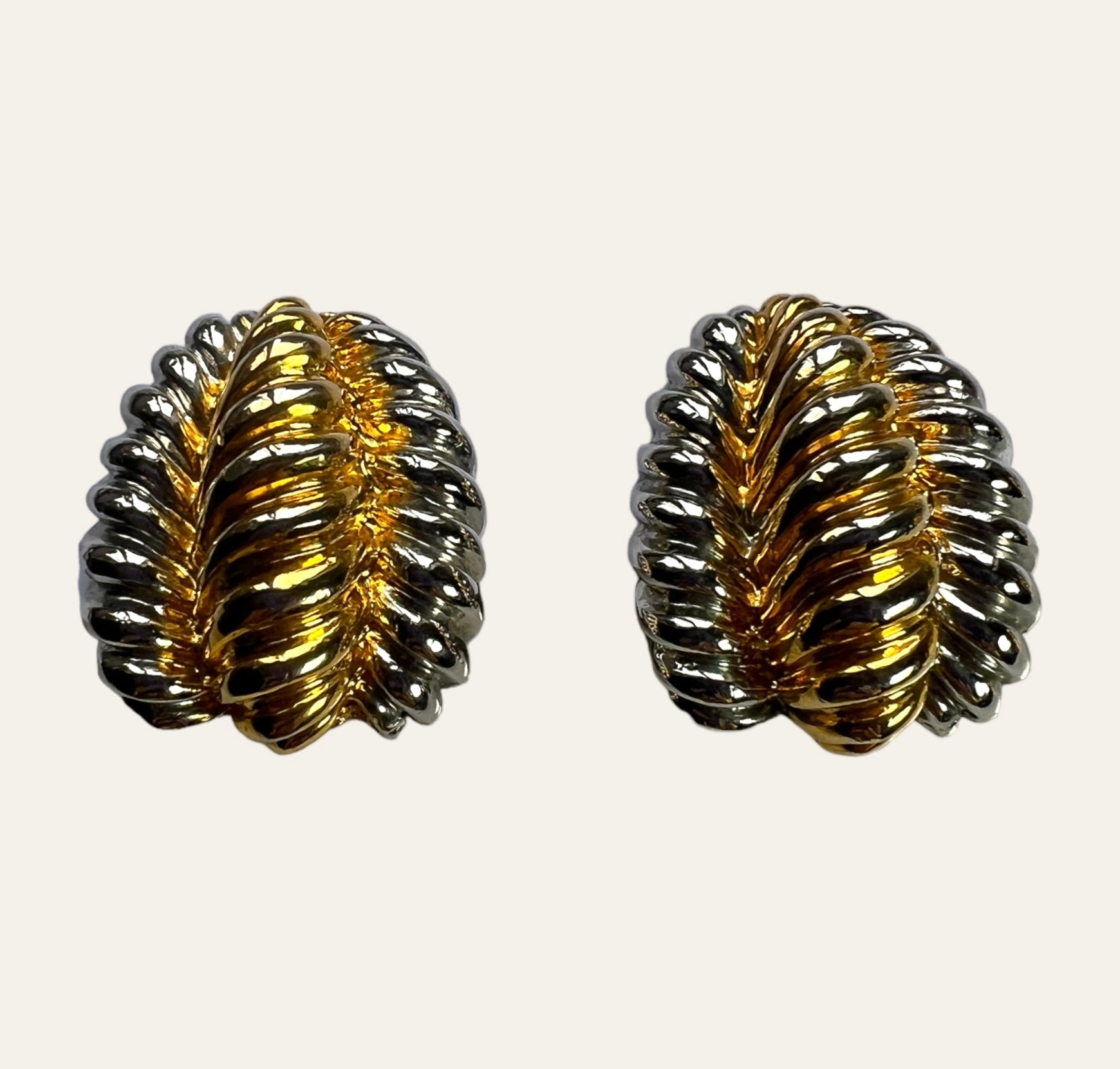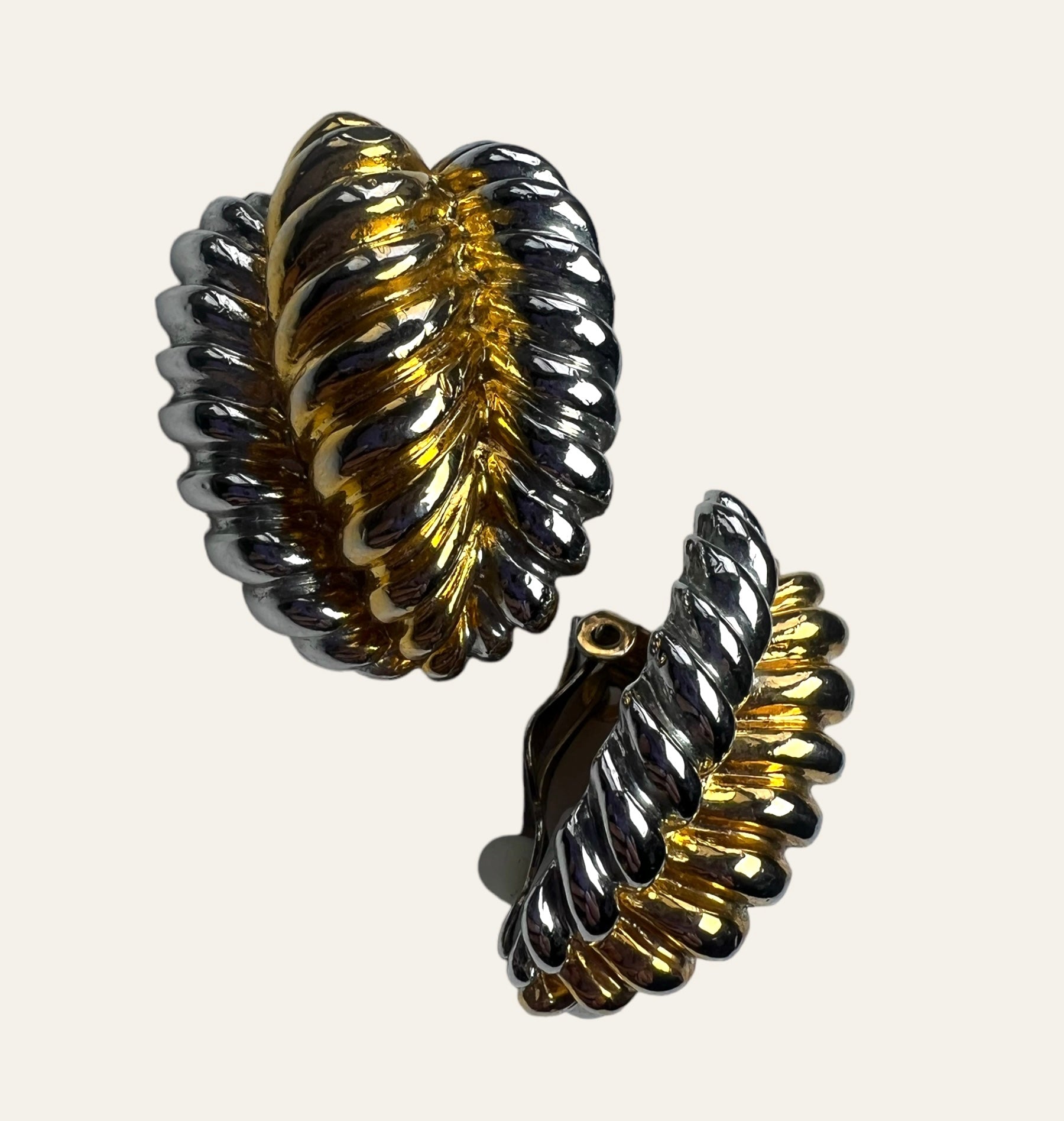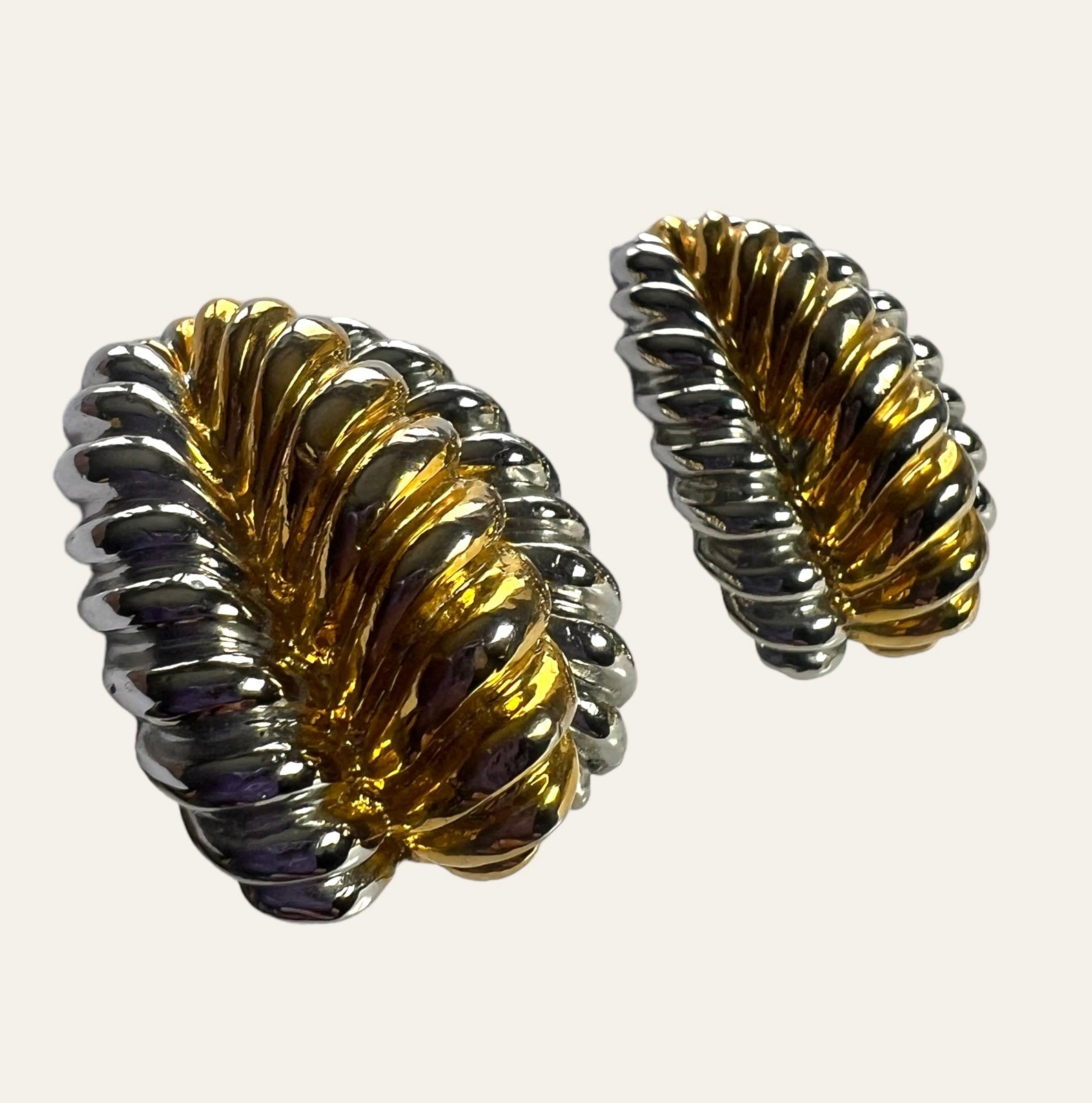 Gorgeous sophisticated pair of bi-colour shell style clip ons made in such a classic style that they will never go out of fashion. They are well made, heavy and substantial.