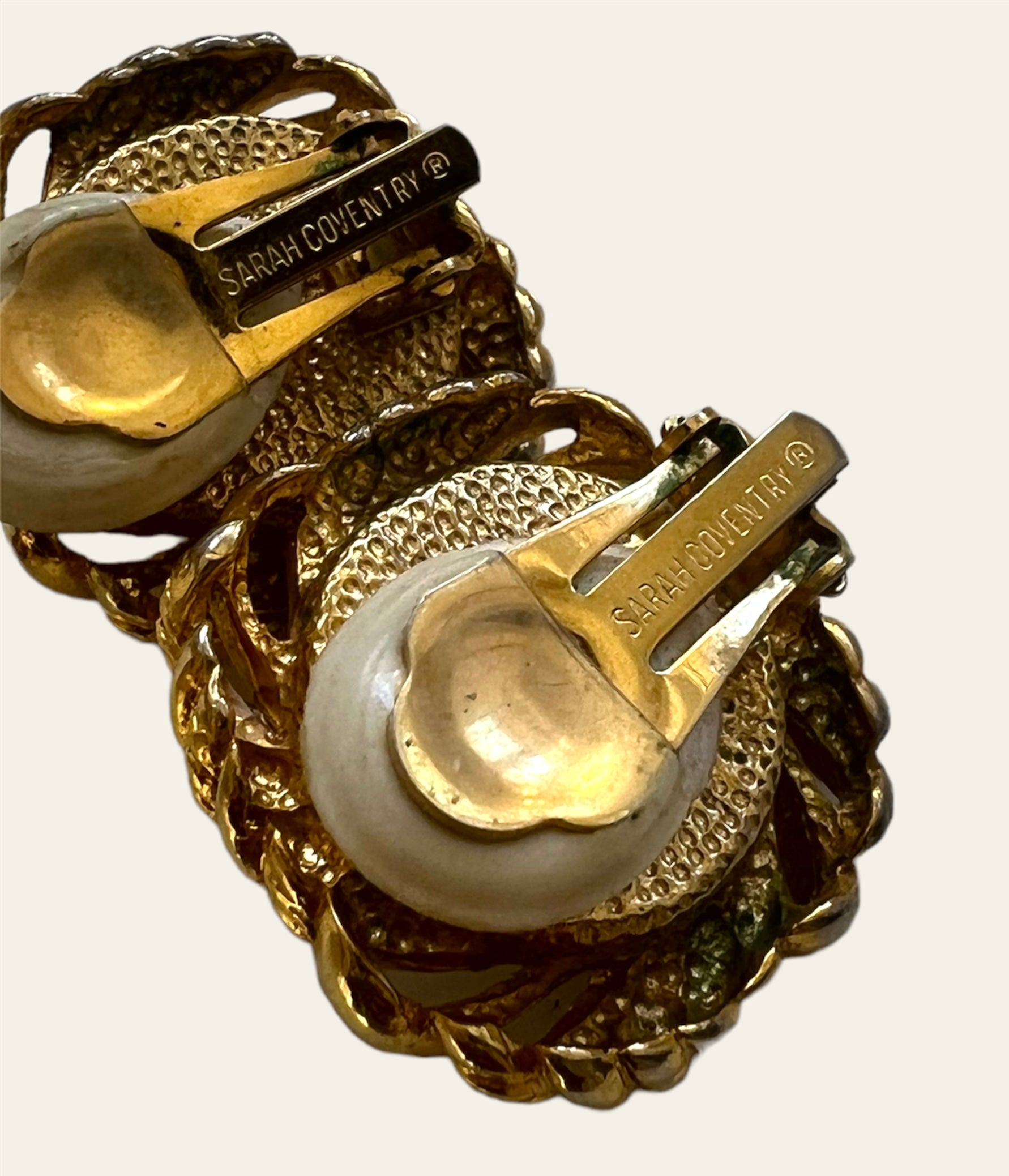 Sarah Coventry Gold Tone Faux Pearls Clip On Earrings