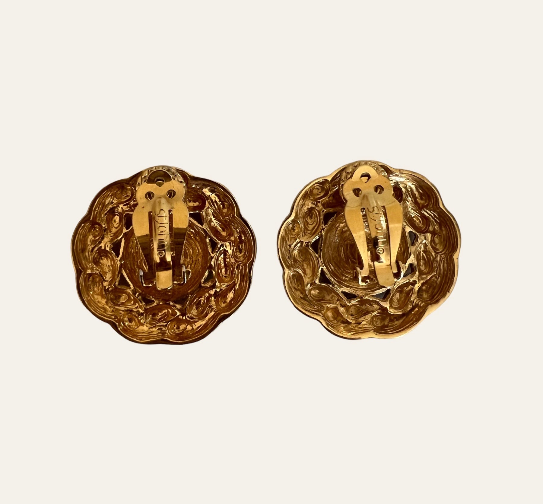 St John Black & Gold Tone Clip On Earrings