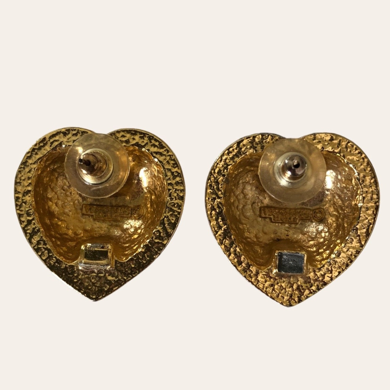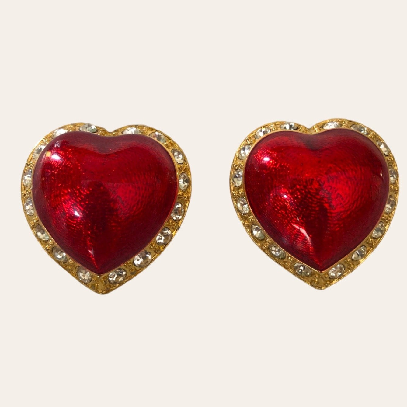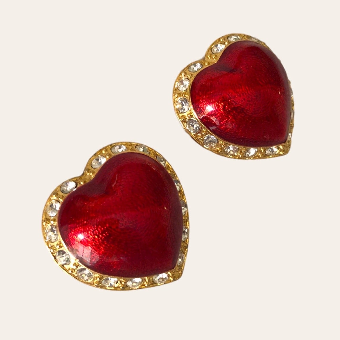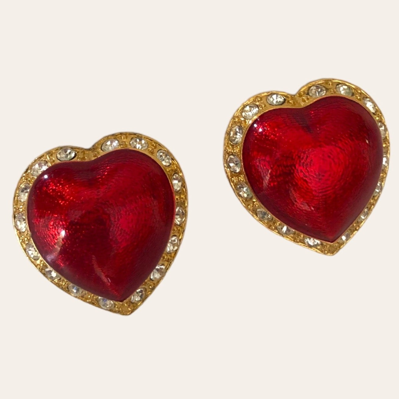 I LOVEEEE Them! They are so cheeky and pretty. Large red glitter bubble heart glam with a halo of pave rhinestones set in gold tone pierced earrings.
