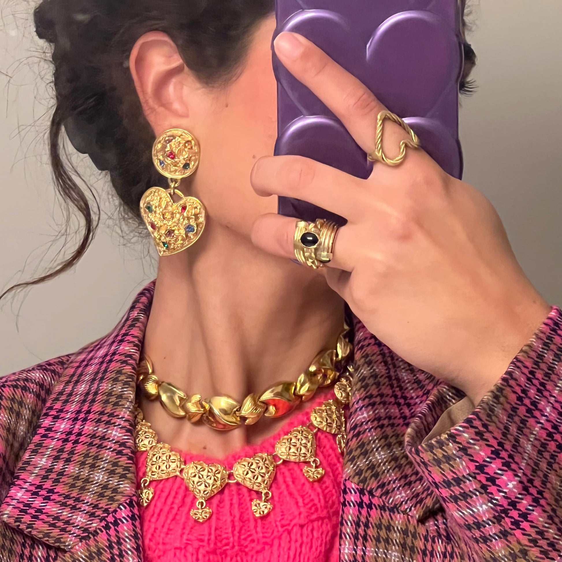 Vintage Heart Charms Collar Necklace