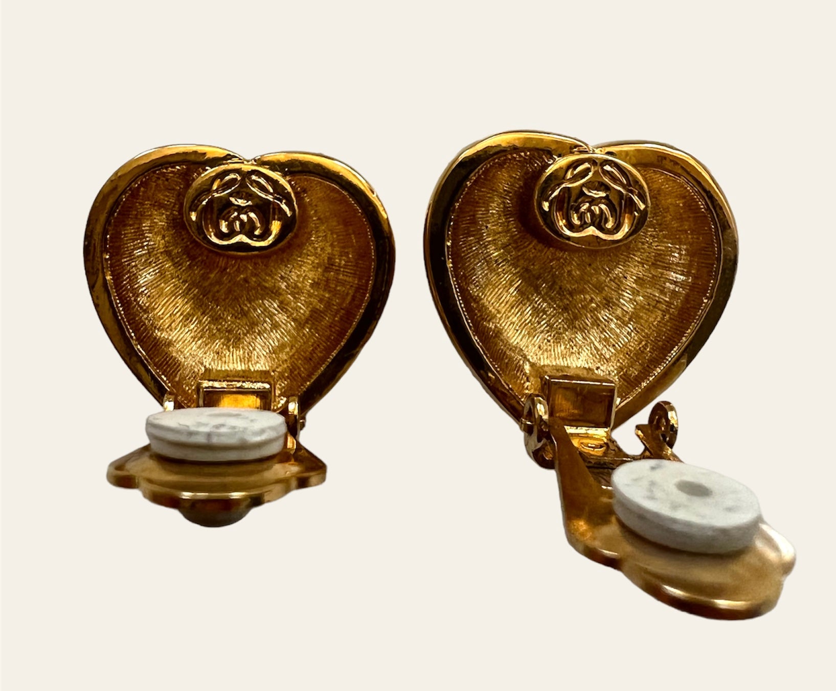 Vintage Heart Shaped Diamanté Clip On Earrings