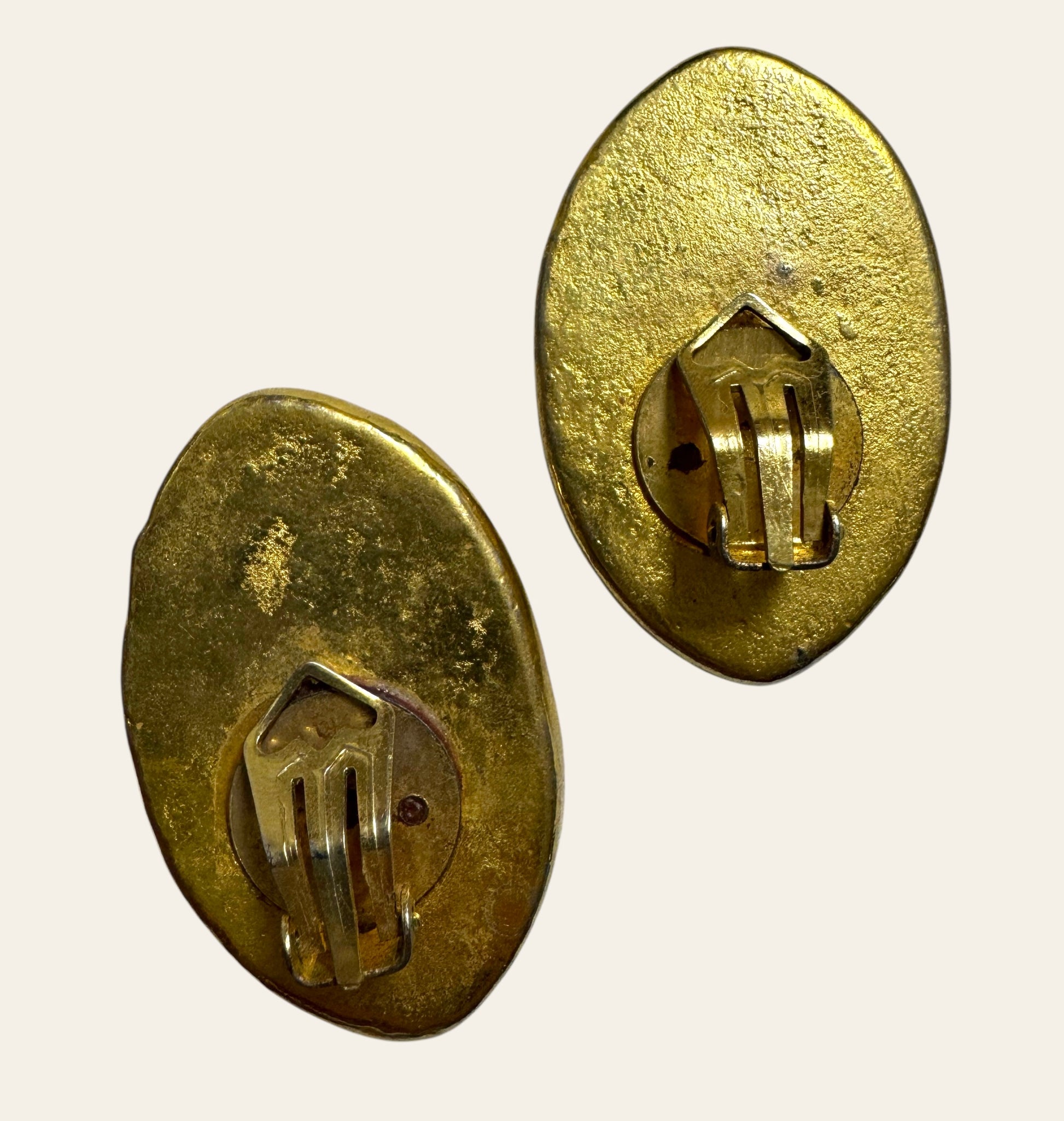 Vintage Large Gold Tone Oval Shaped Clip On Earrings