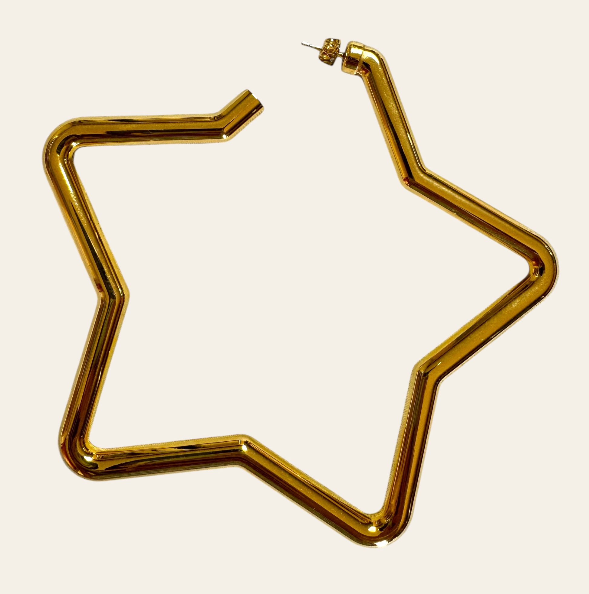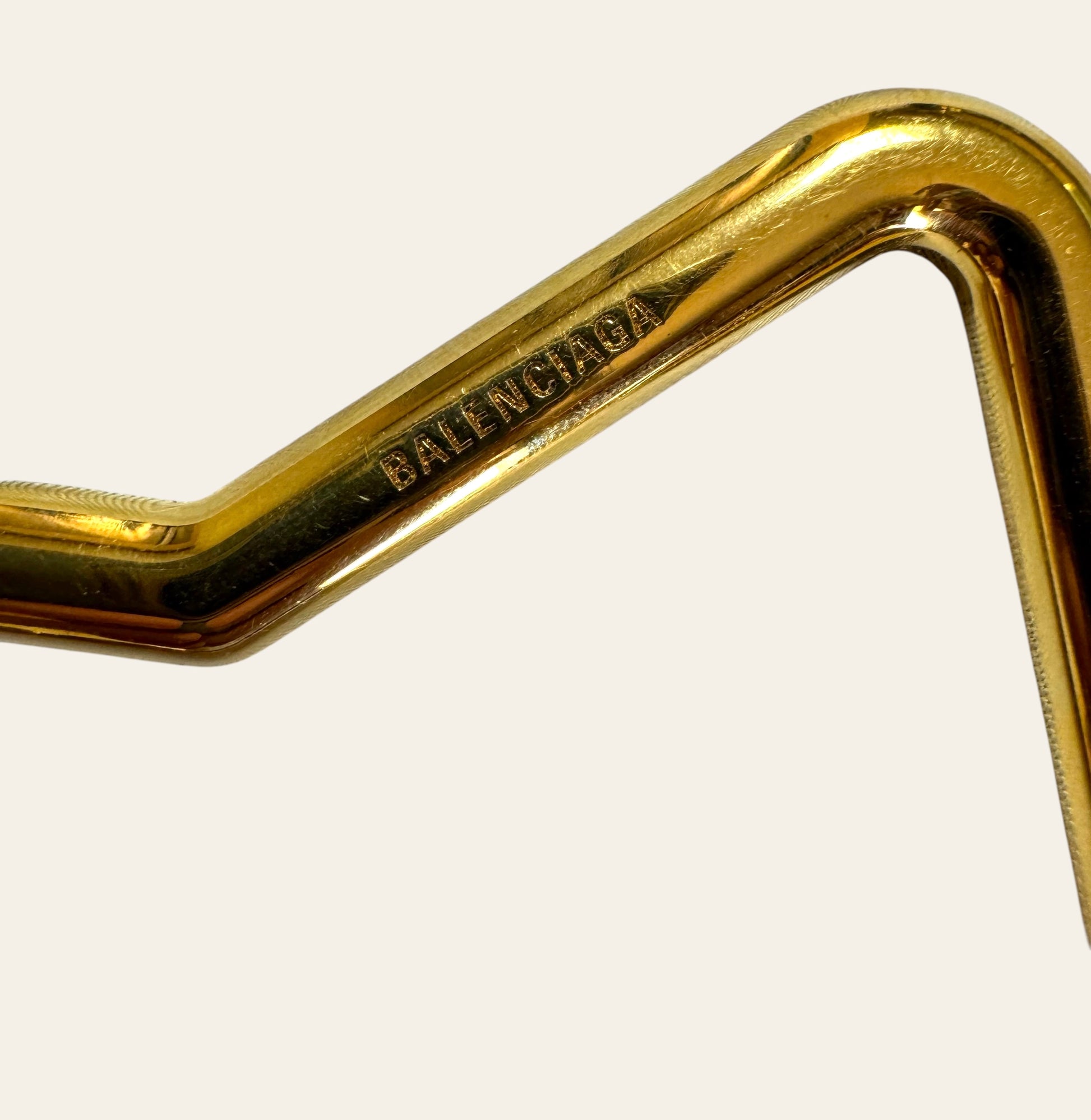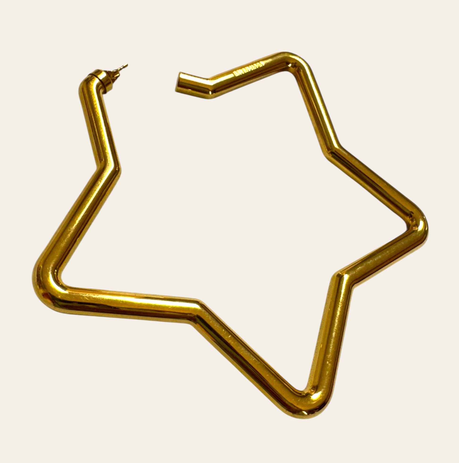Single oversized signed Balenciaga pierced earring in the shape of a star featuring a shiny gold-tone metal with a smooth finish. Purchased around nine years ago and originally sold as a single piece, not a pair. Lightweight yet bold, designed to make a statement on its own. It comes with its original pouch.