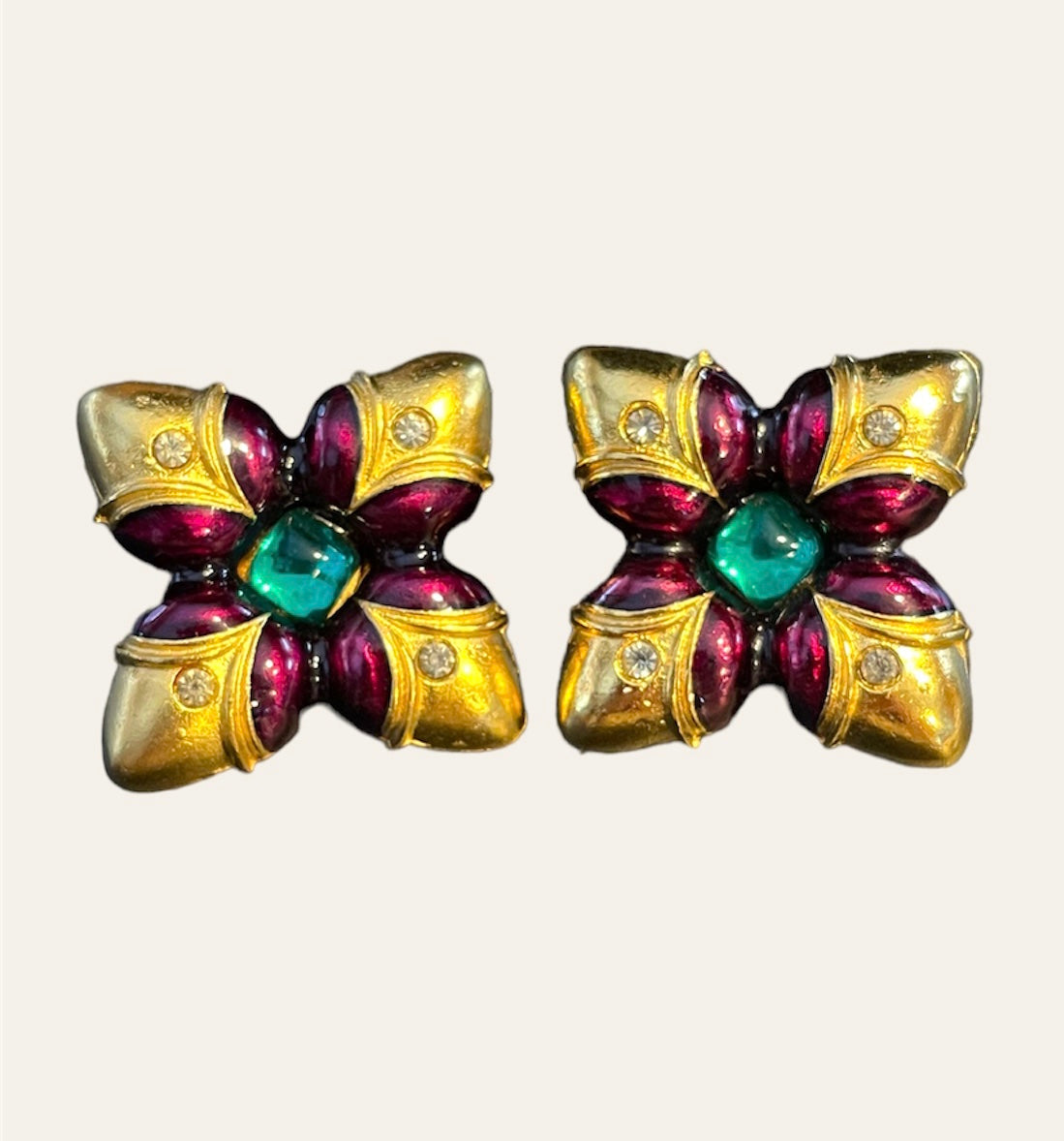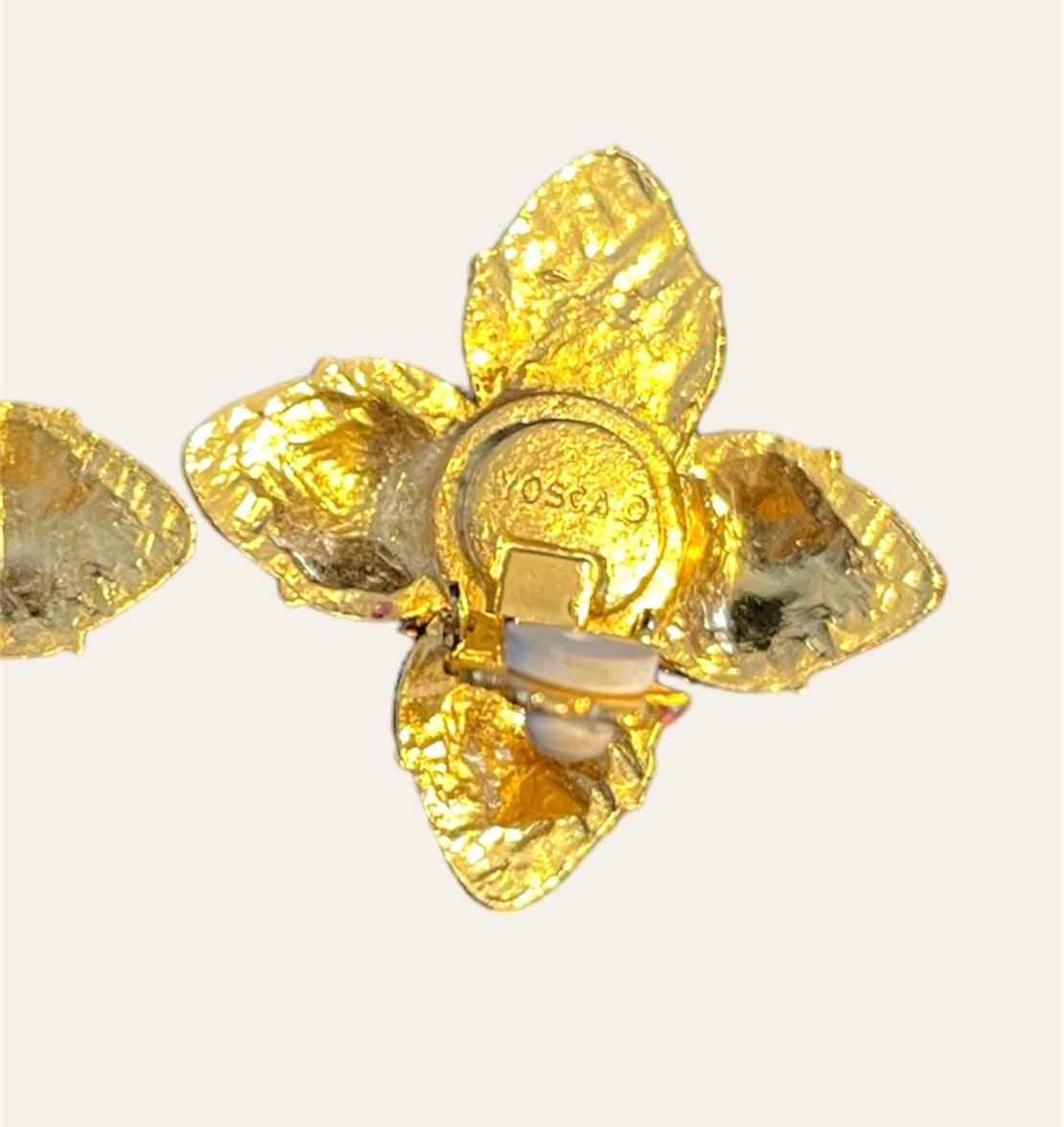 Signed Yosca in a beautiful gold tone with purple enamel and rhinestones.