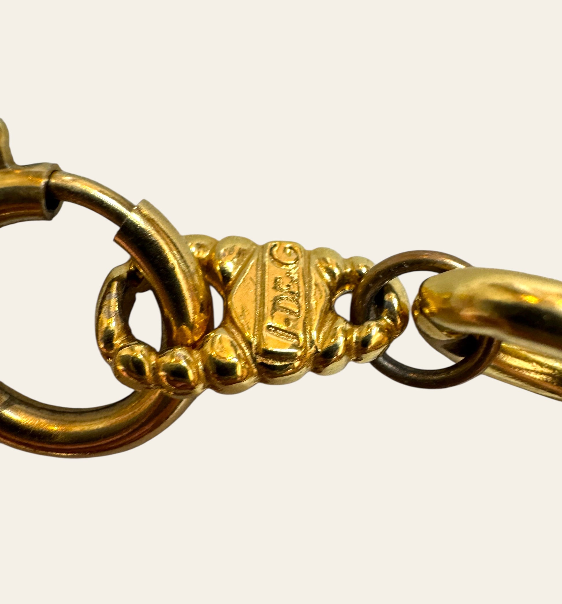 Gold-plated chain with large sunburst medallions and oversized faux pearls in shimmering amber and golden tones. Each pendant glows with coloured rhinestones, capturing Jacky de G.’s signature maximalist glamour and artistic hand-finished detailing. Signed on clasp. Made in France, 1980s. A Romy's fav! This is a Parisian piece of art - it is lightweight statement piece that is rare and absolutely stunning!