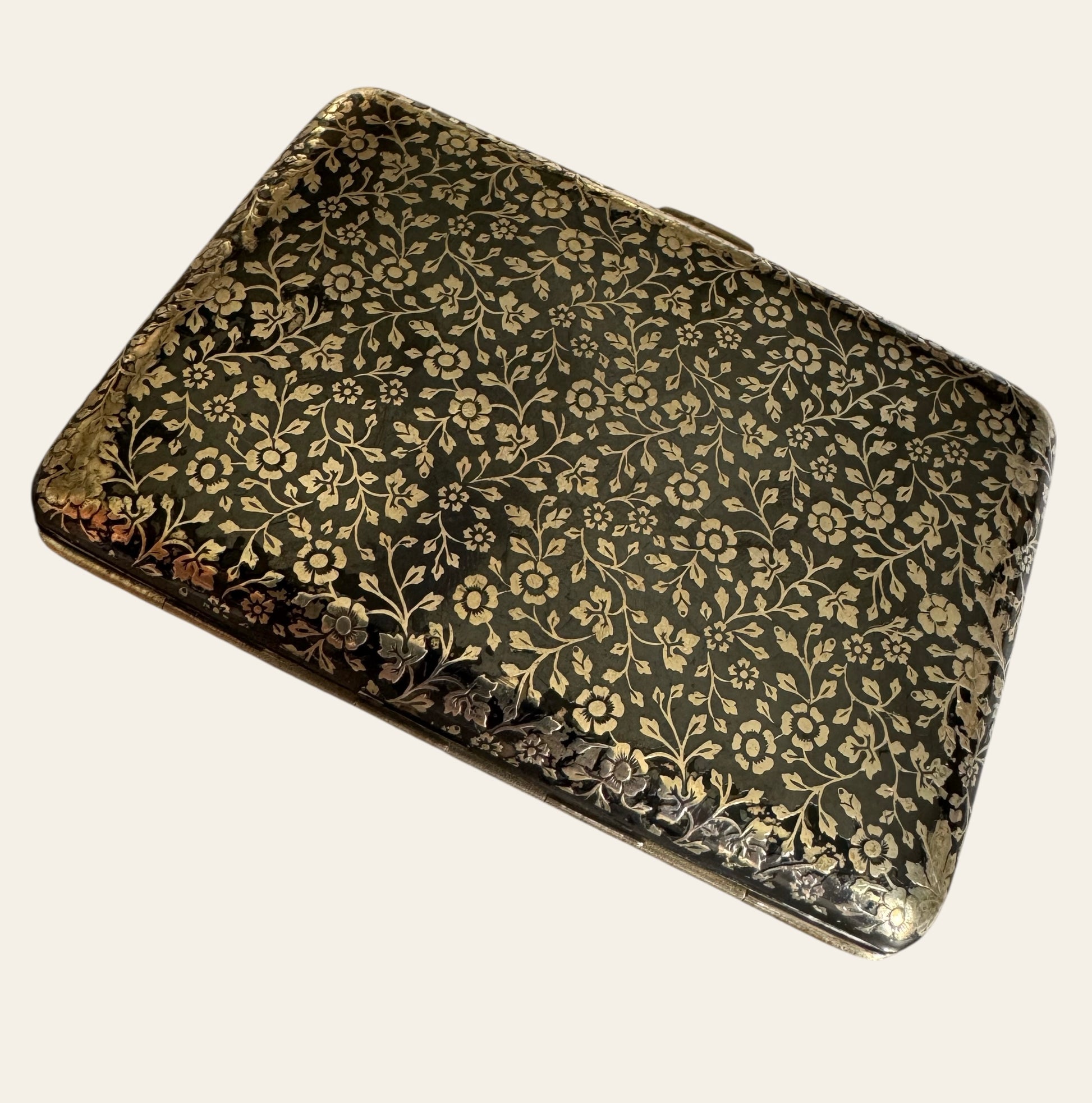 Antique Russian Silver & Niello Floral Cigarette Case (Marked 84, c.1900)
